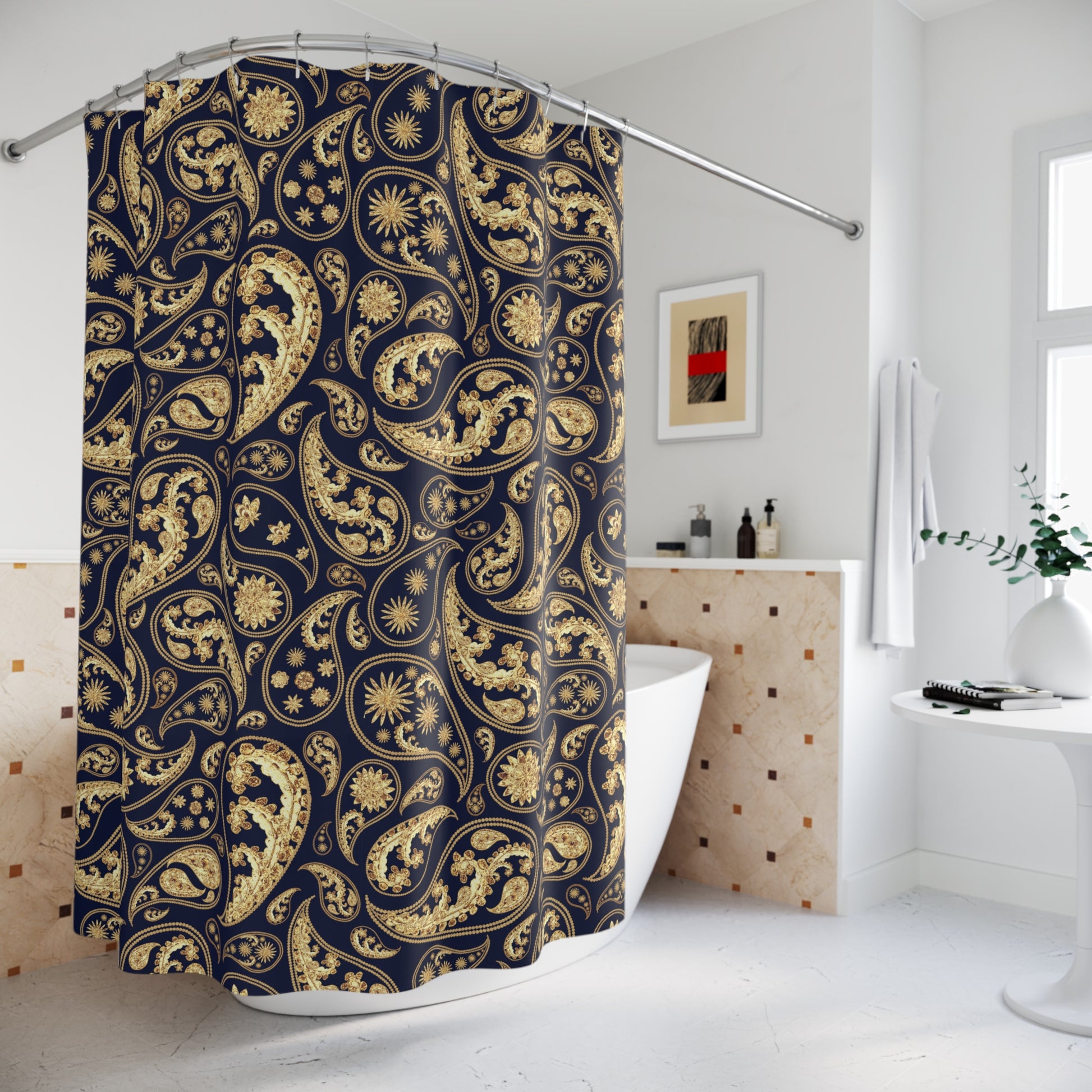 PAISLEY MUSTER GELBGOLD • Hochwertiger, Schöner Duschvorhang 180x200 cm
