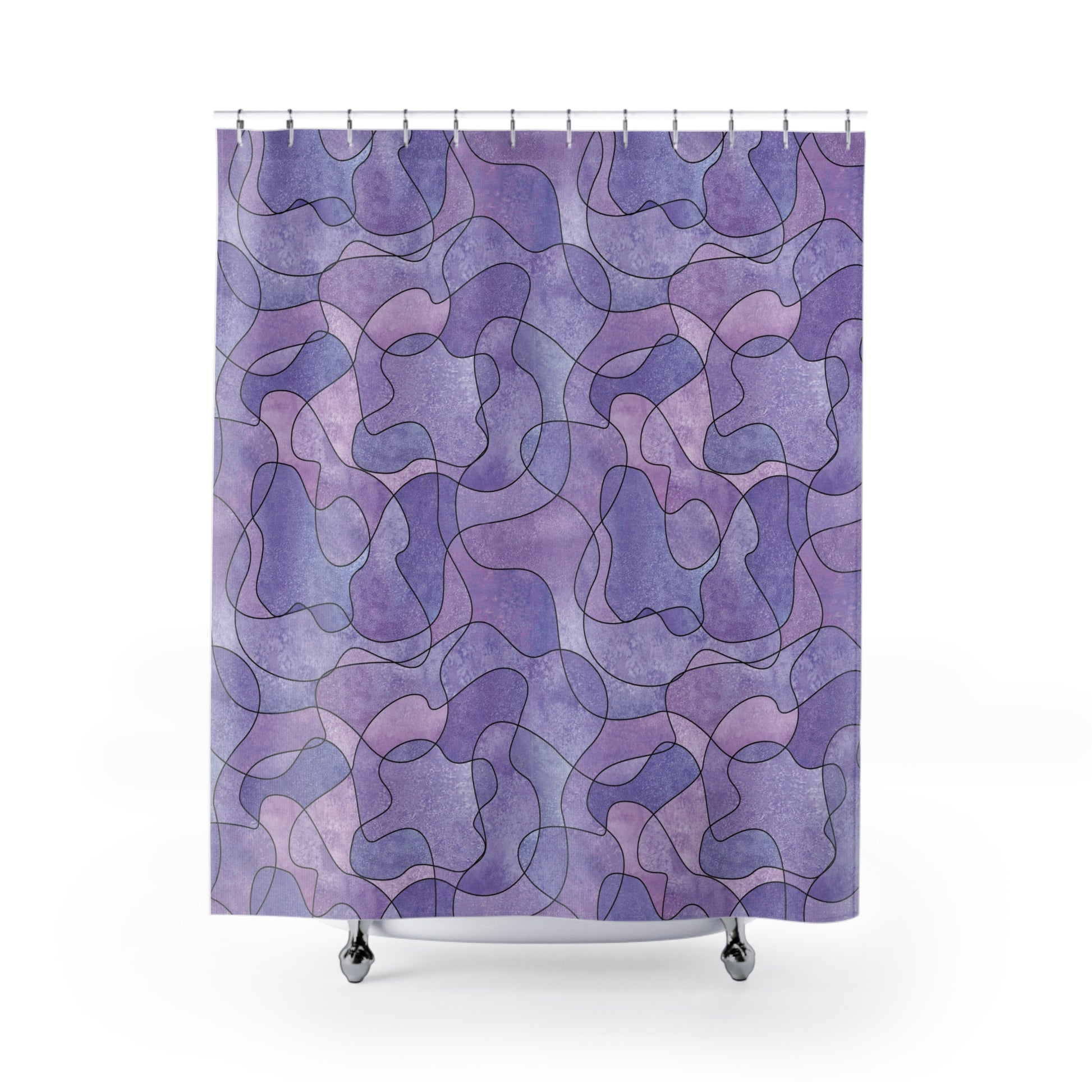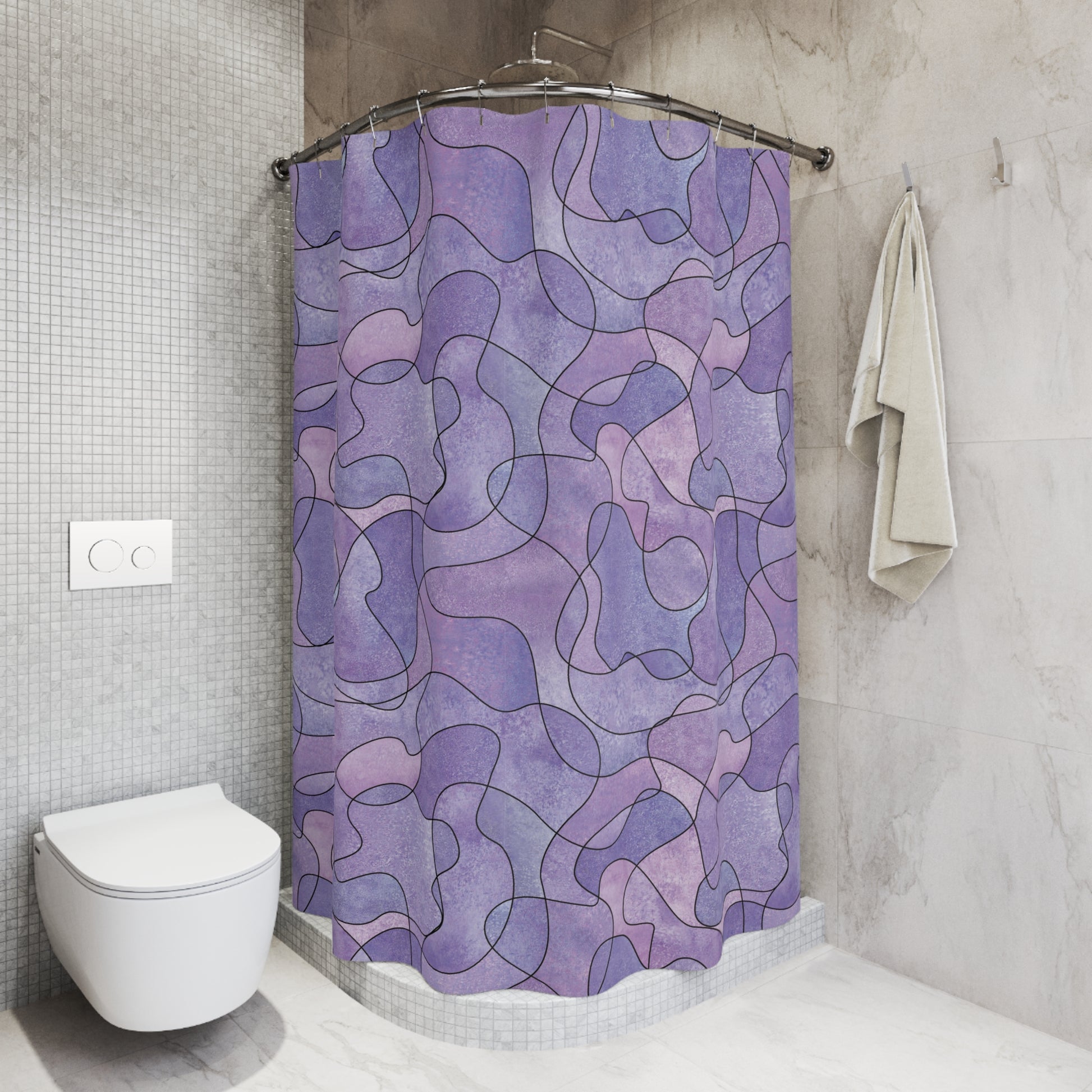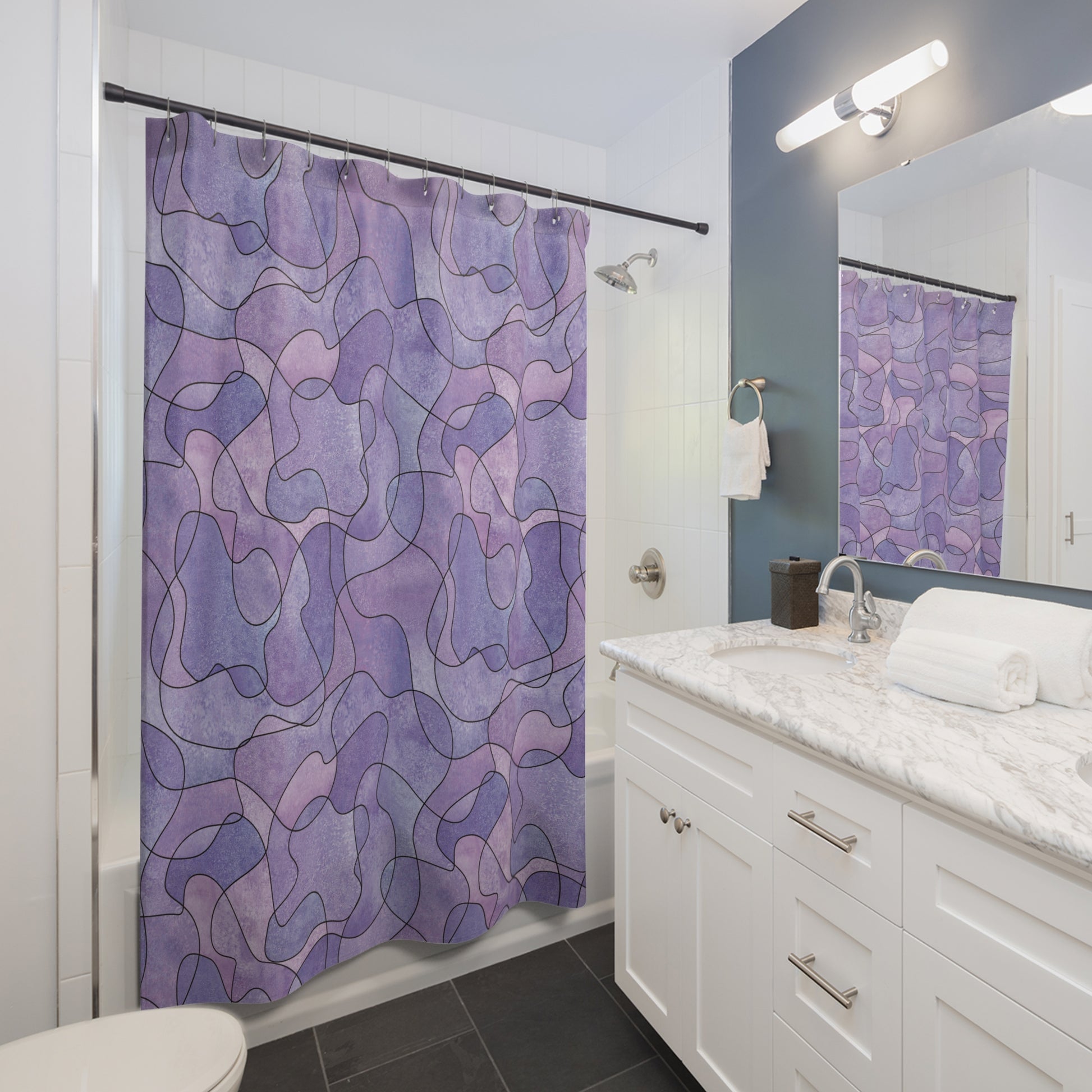LILA VIOLET IN ZARTEN LINIEN • Schöner Duschvorhang 180x200 cm Weiss