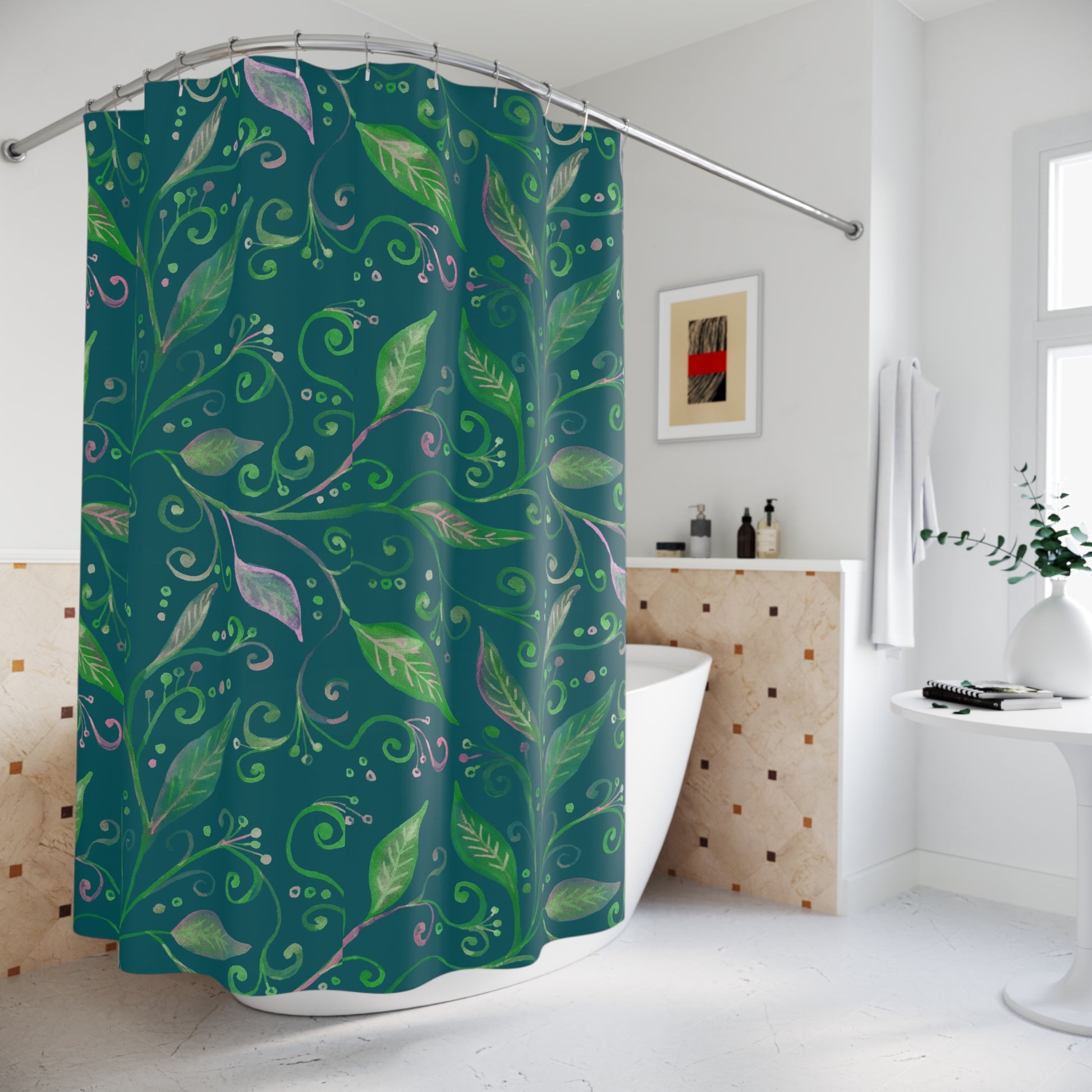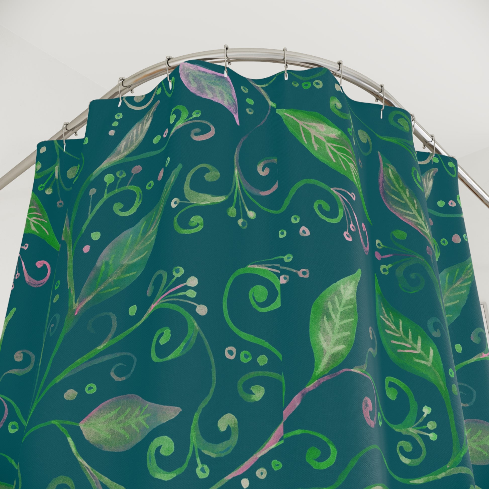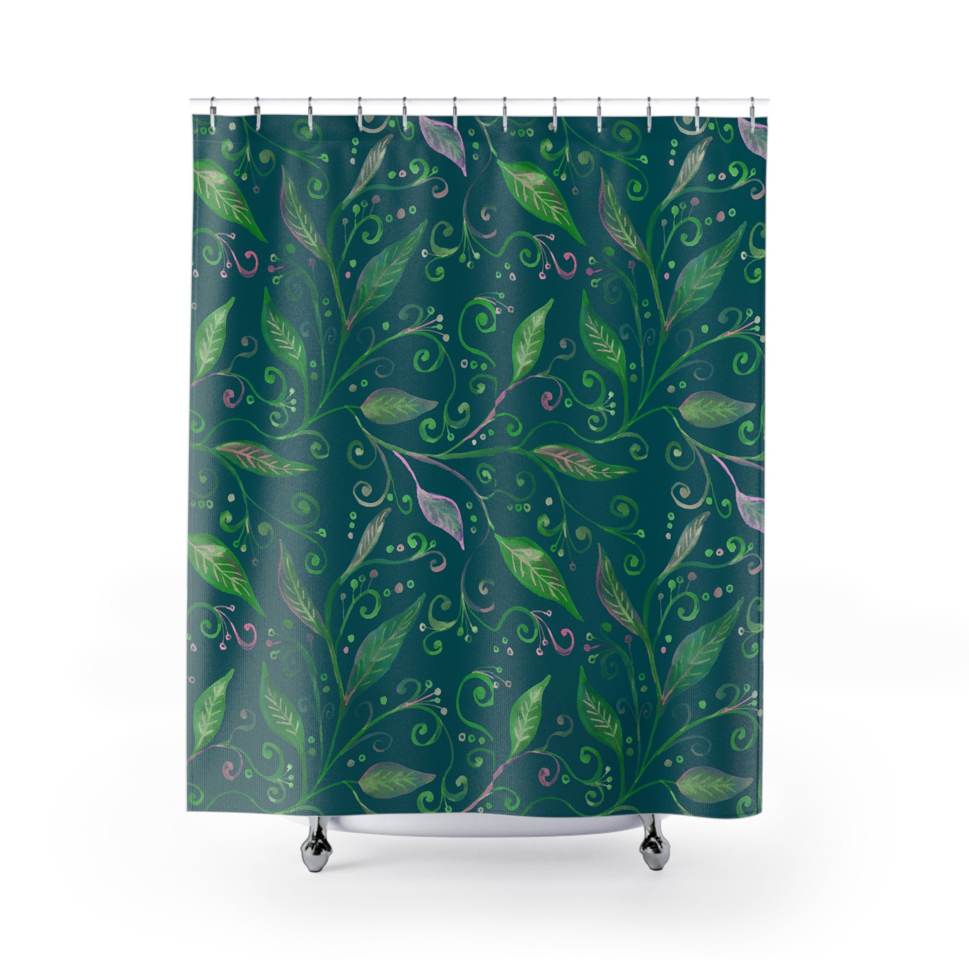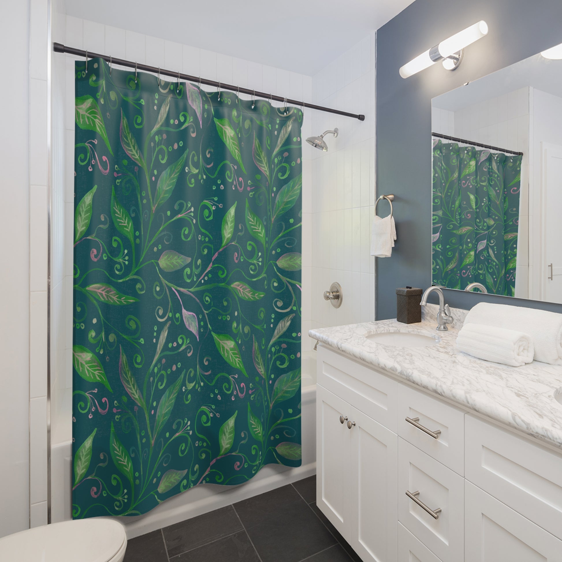 GRÜNE BLÄTTER NIEDLICH • Hochwertiger, Schöner Duschvorhang 180x200 cm Weiss