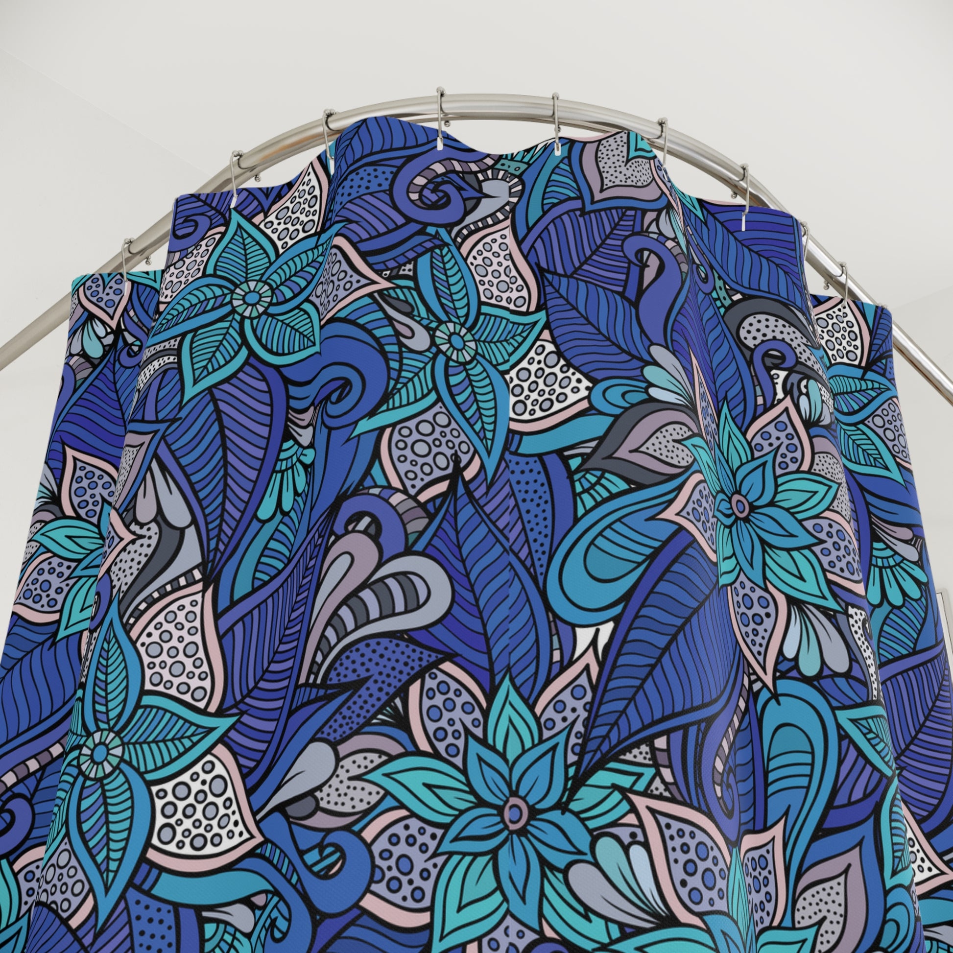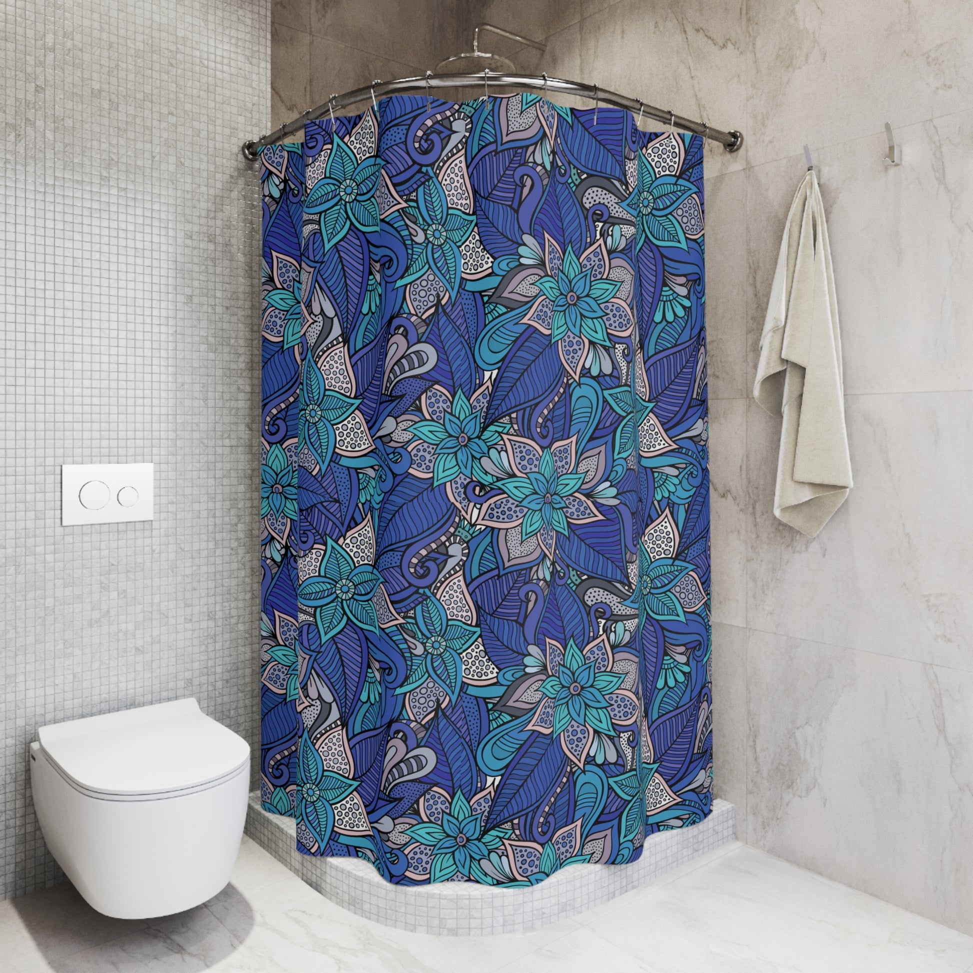 BLUMENMUSTER TÜRKIS BLAU • Hochwertiger, Schöner Duschvorhang 180x200 cm