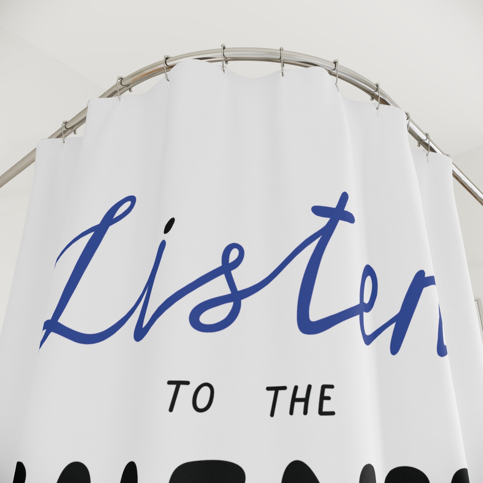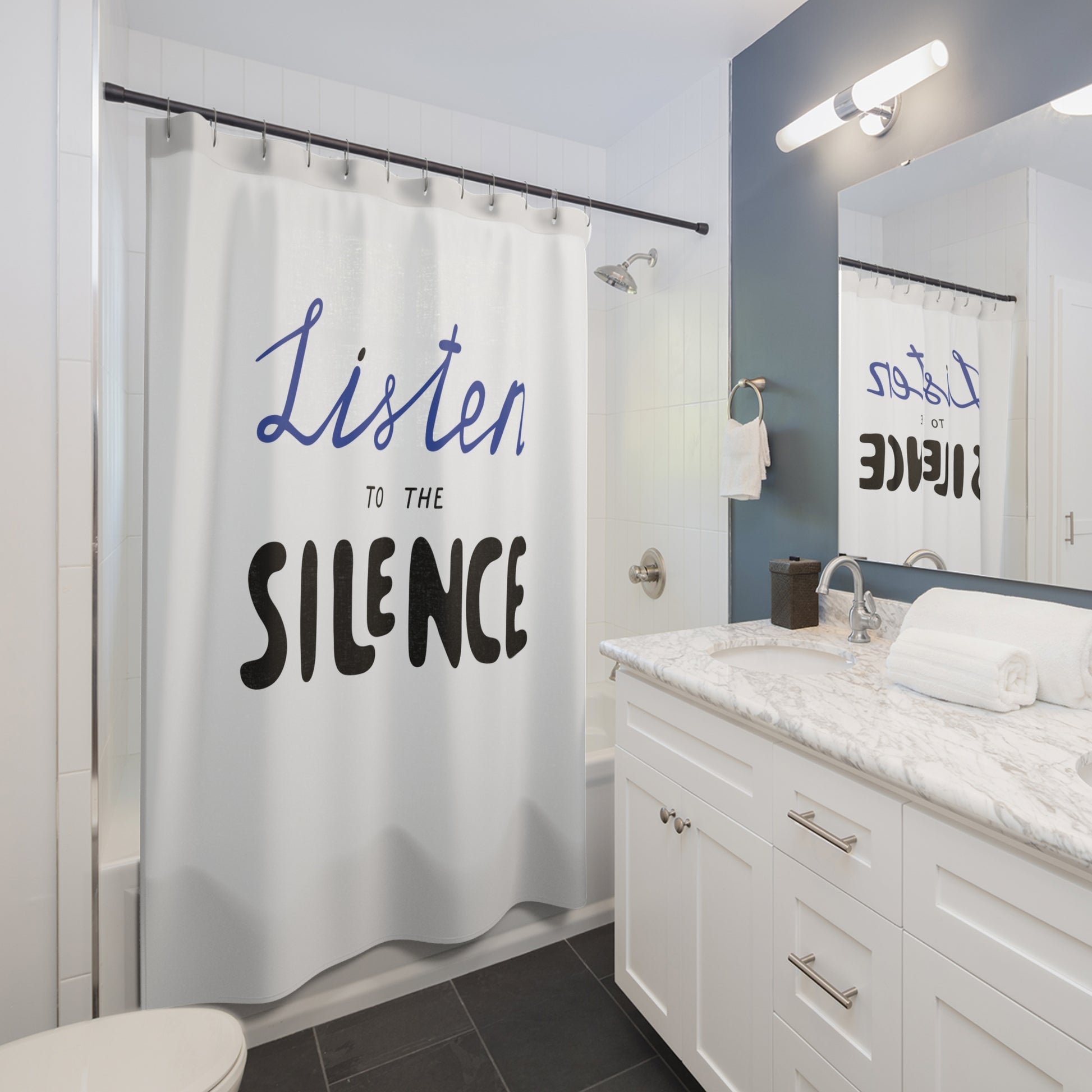LISTEN TO THE SILENCE • Schöner Spruch Duschvorhang 180x200 cm Weiss