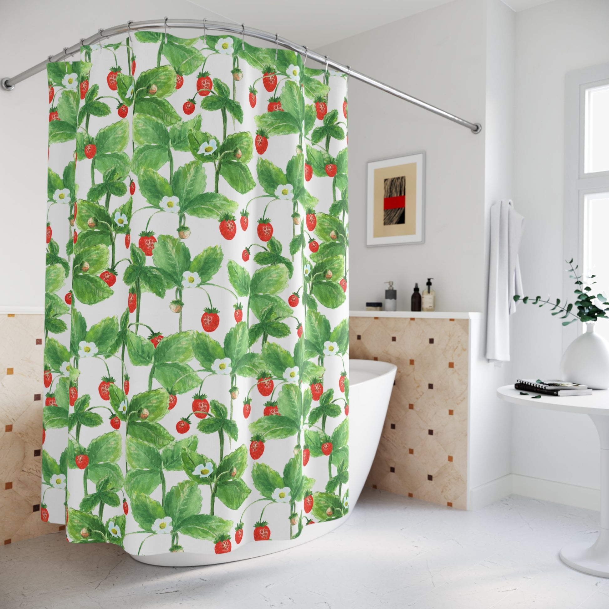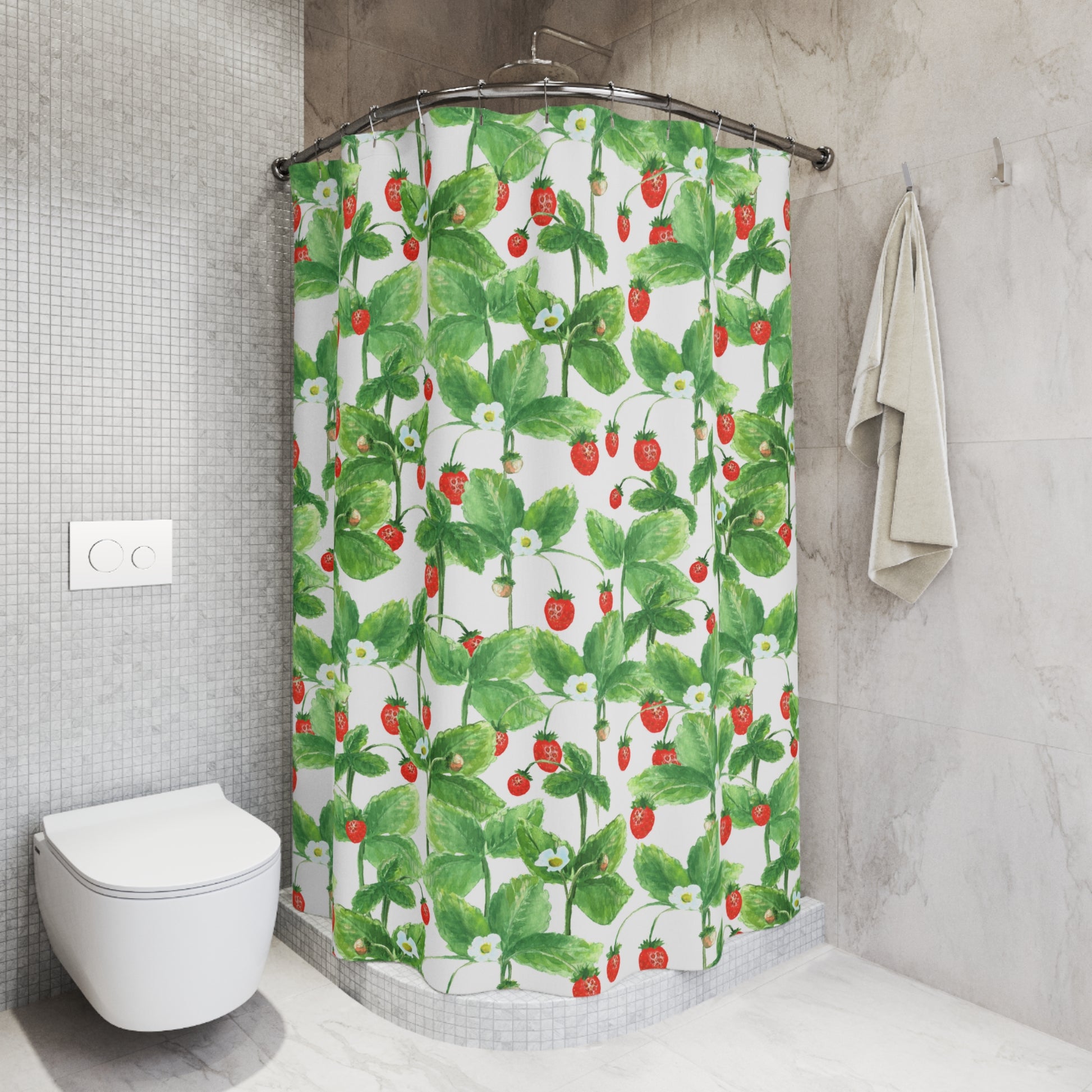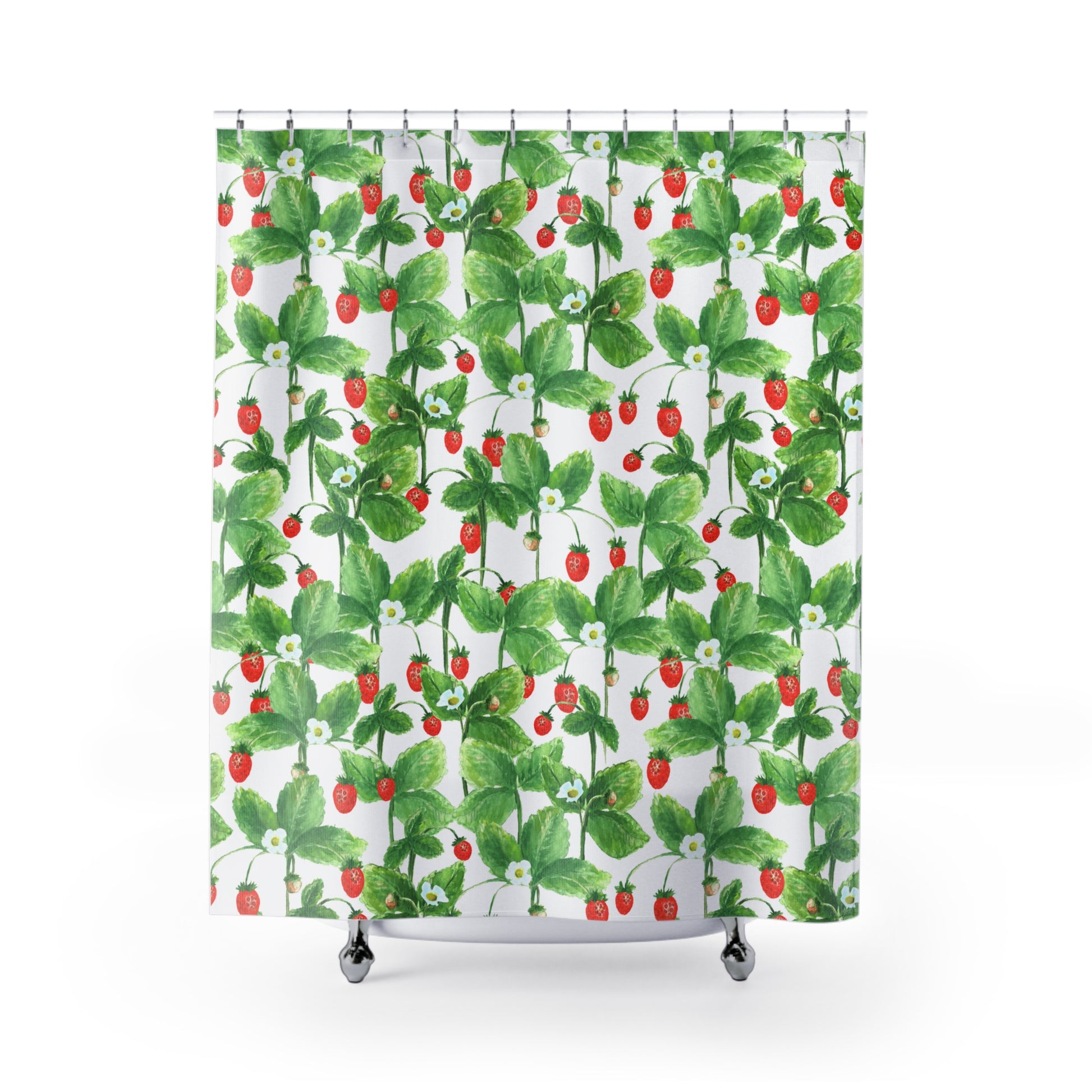 ERDBEER PFLANZEN • GRÜNE BLÄTTER • Hochwertiger, Schöner Duschvorhang 180x200 cm Grün