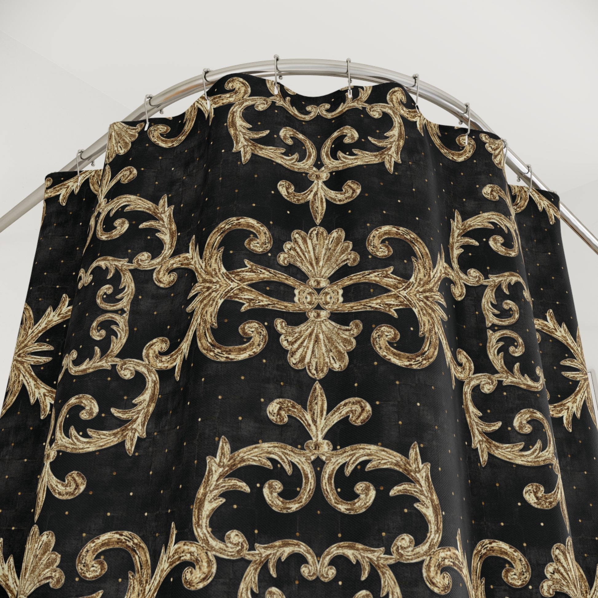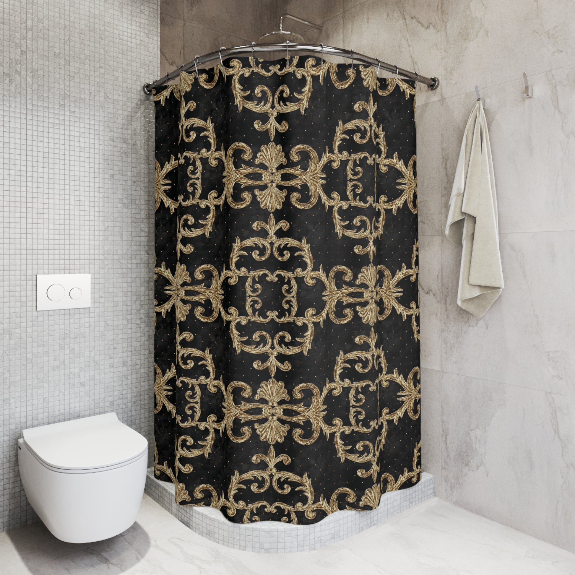 BAROCKES BLUMENMUSTER SYMMETRISCH • Luxus Duschvorhang 180x200 cm Weiss