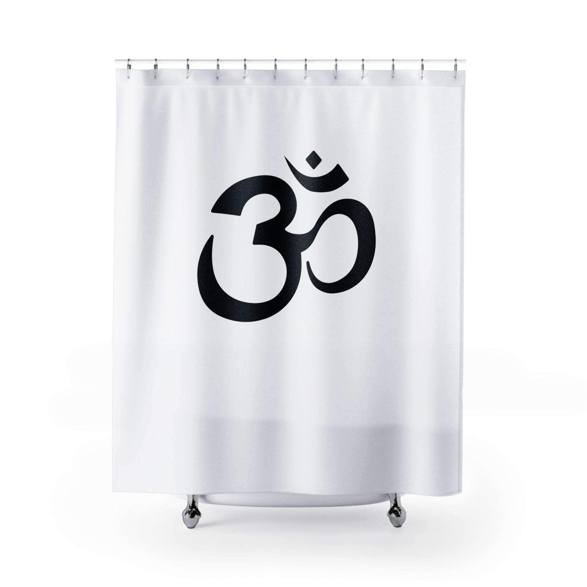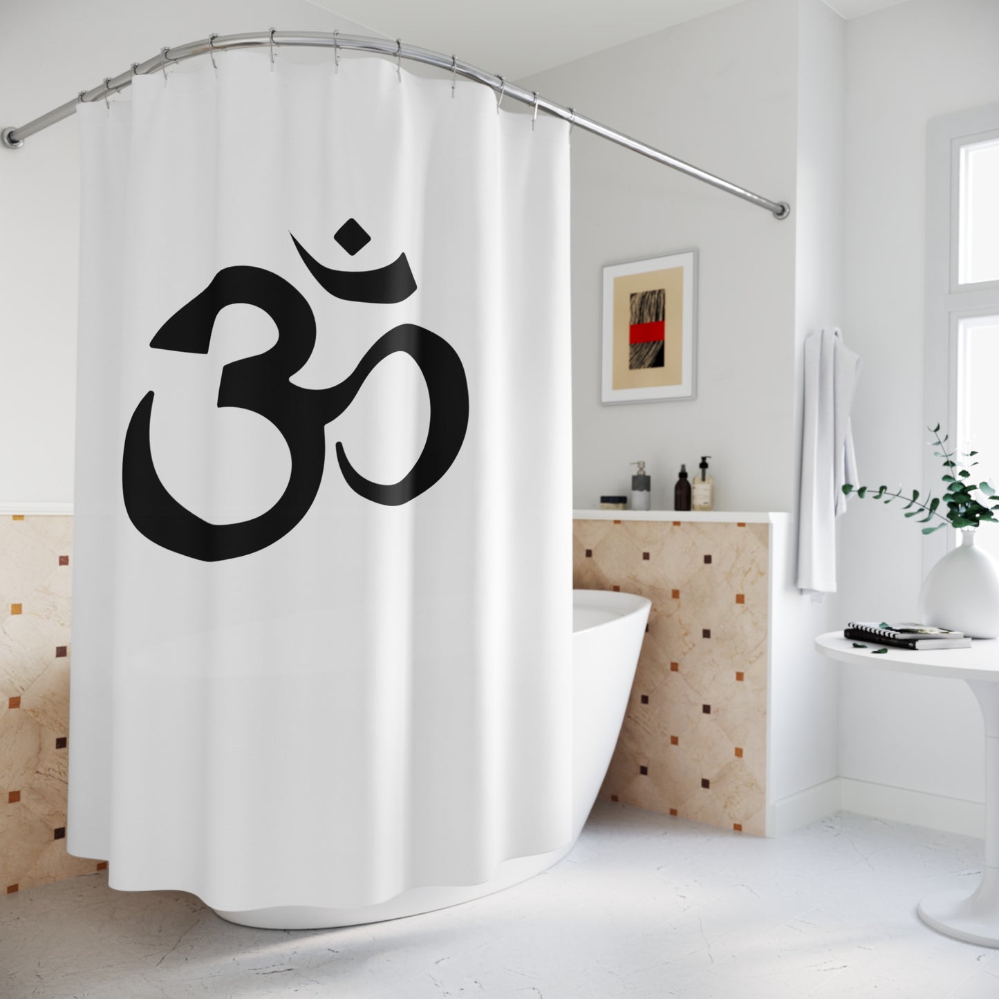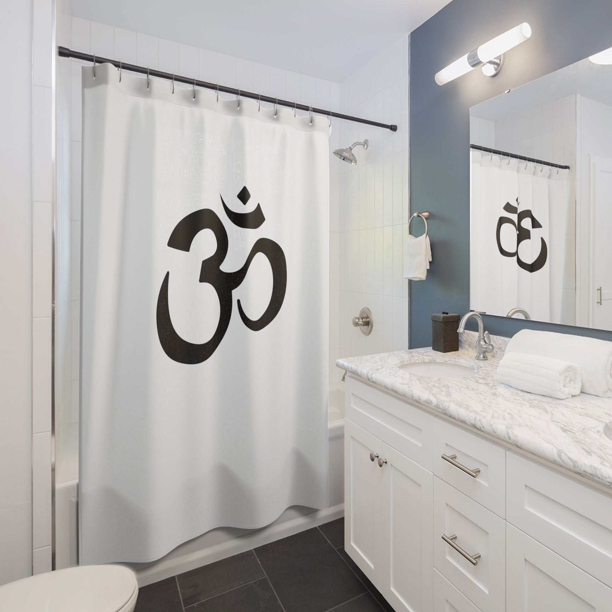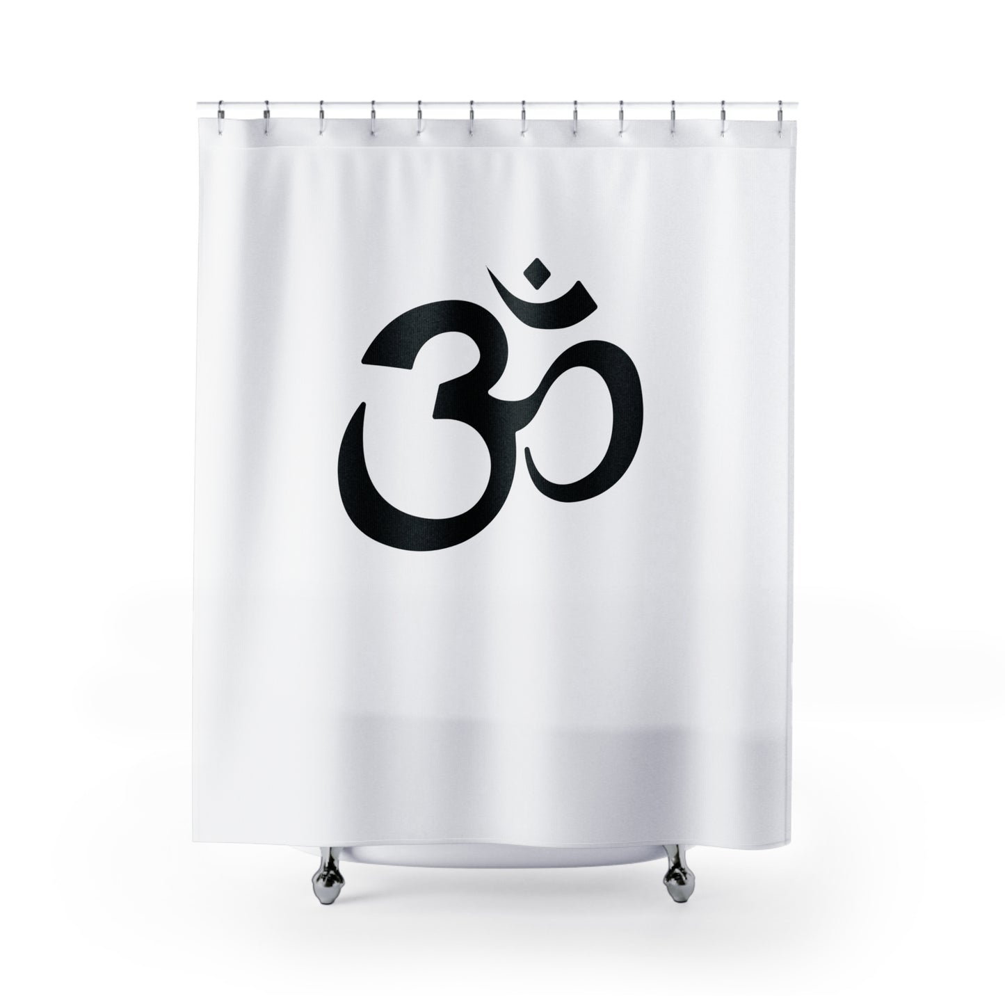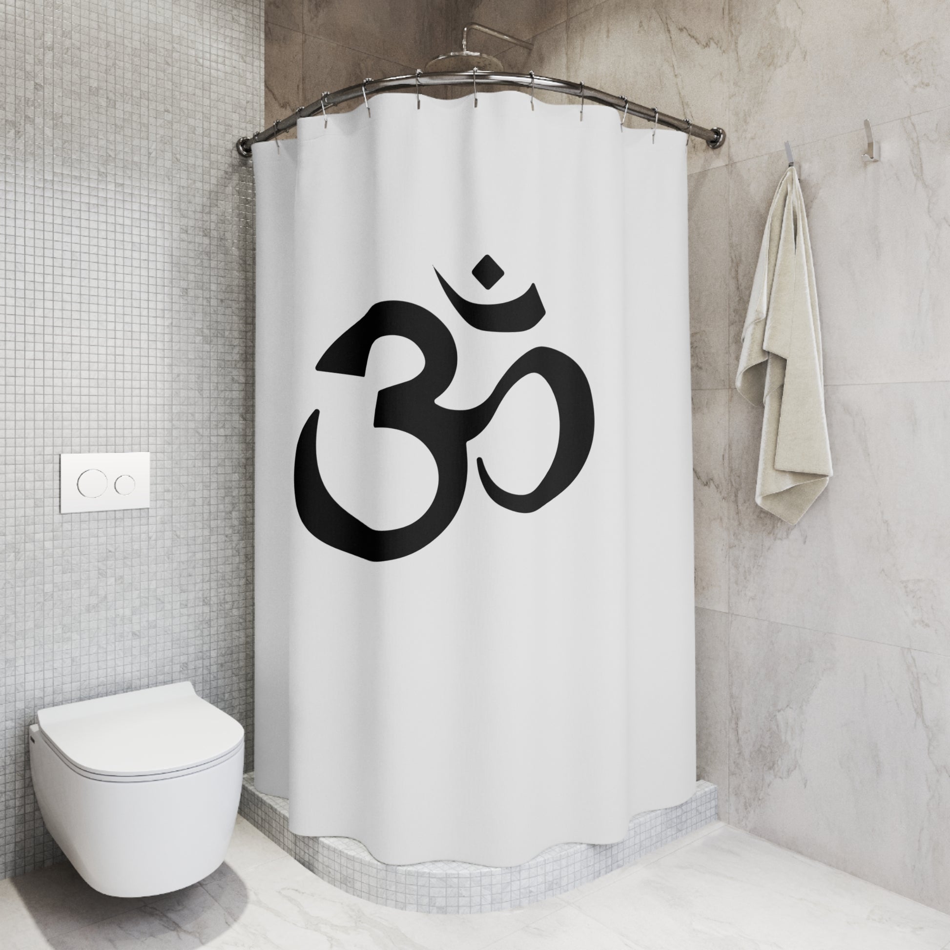 OM ZEICHEN OHM • SPIRITUELLES MOTIV • Hochwertiger Duschvorhang 180x200 cm Weiss