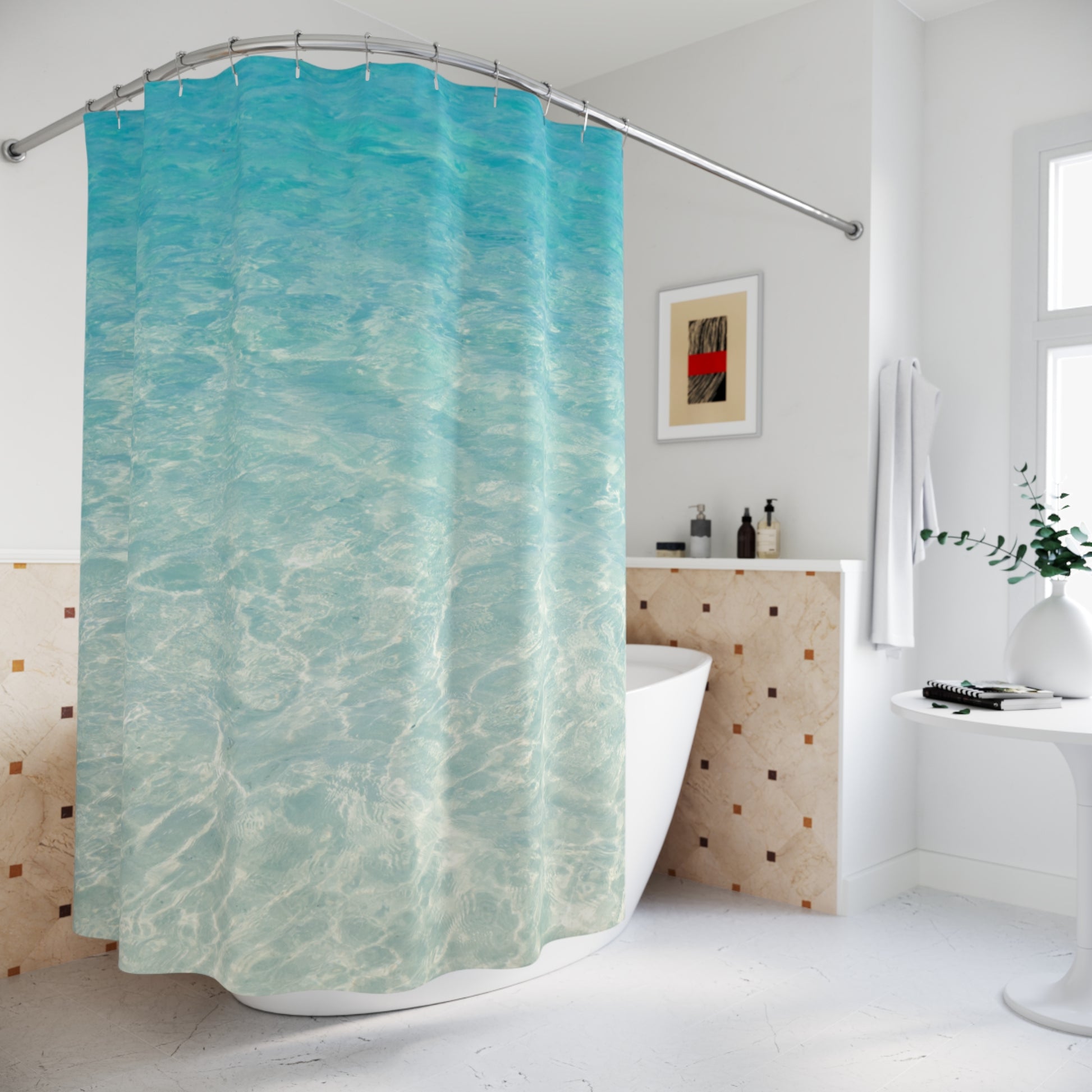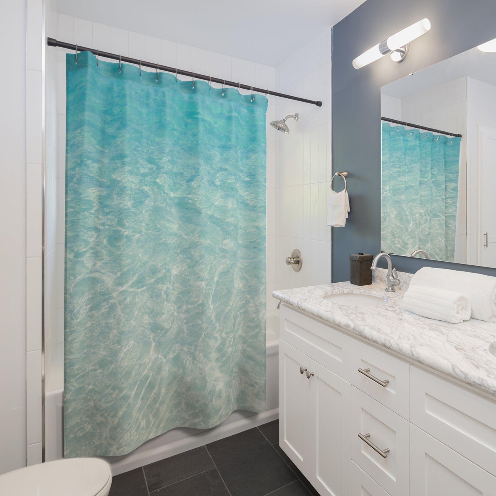 MEER STRAND • Hochwertiger, Schöner Duschvorhang 180x200 cm Weiss