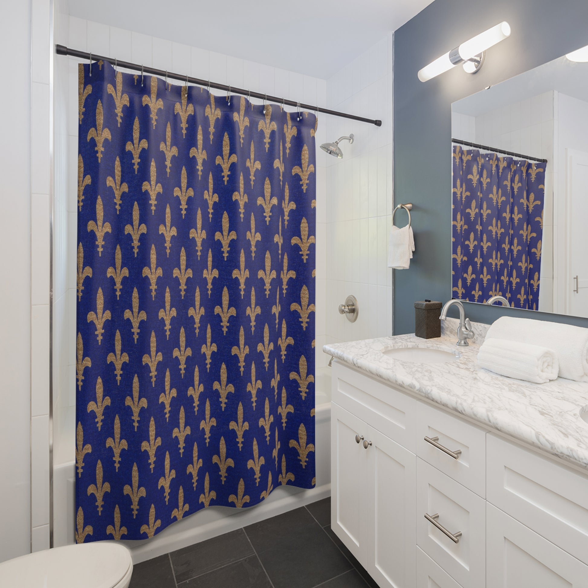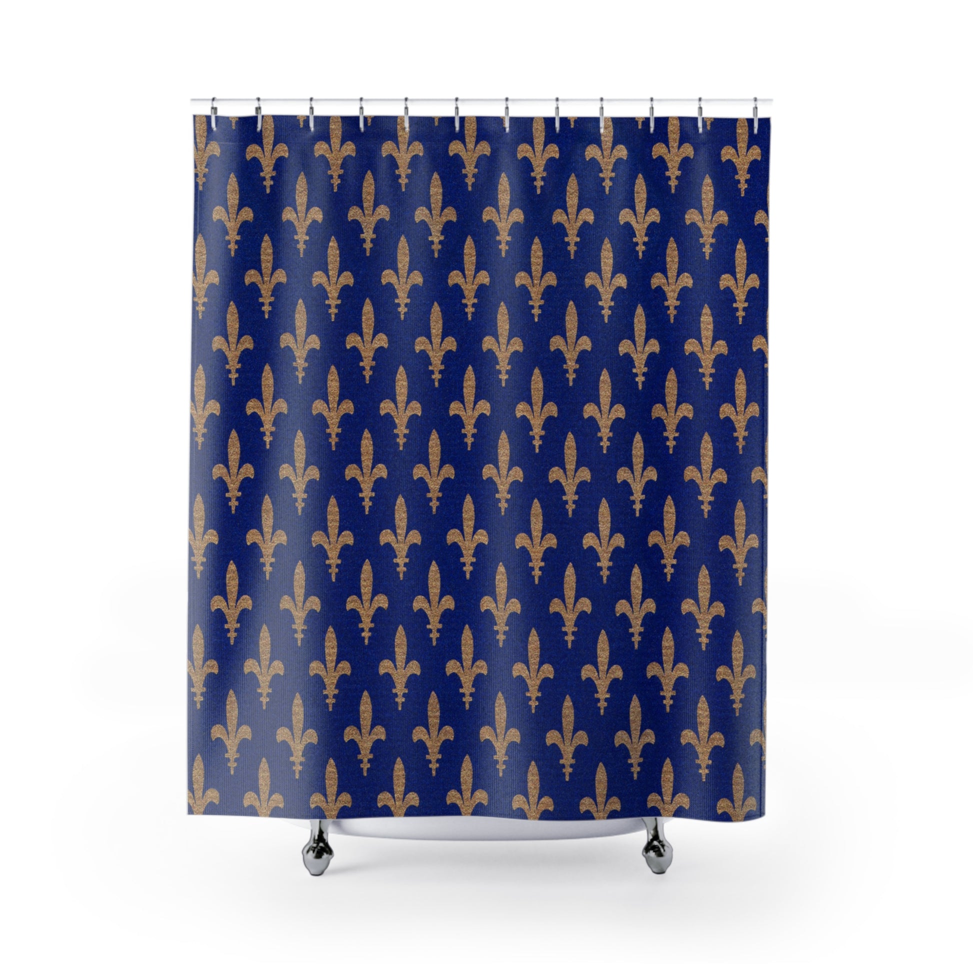 FLEUR-DE-LIS - FRANZÖSISCHES BLUMENMUSTER • Hochwertiger, Schöner Duschvorhang 180x200 cm Weiss