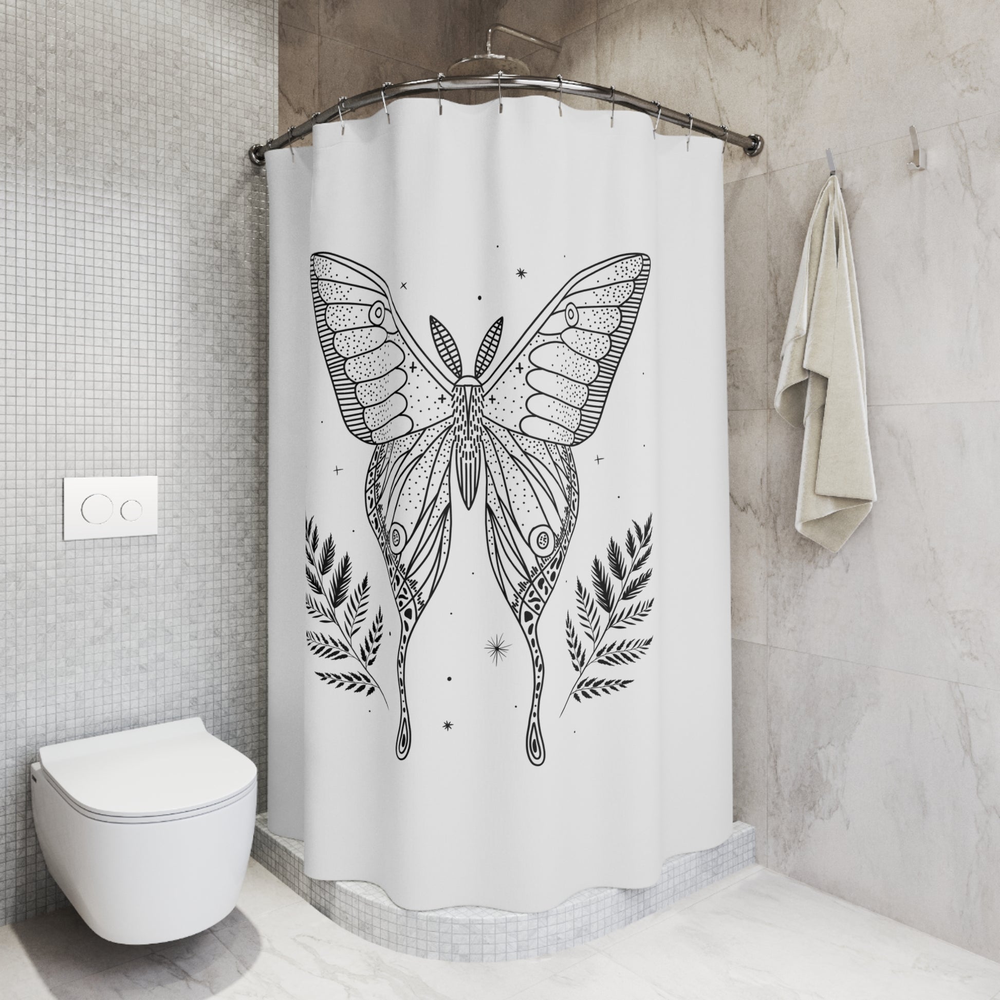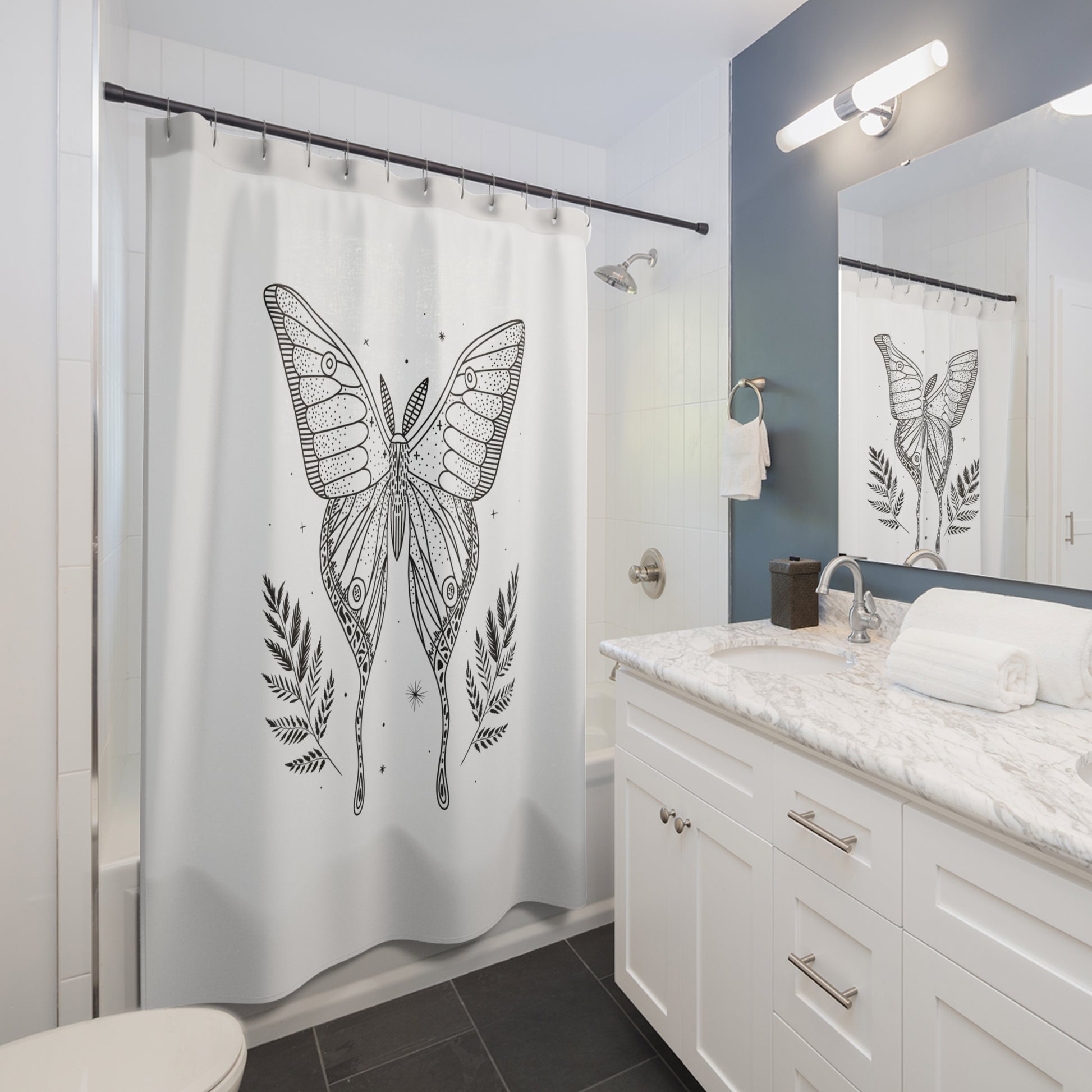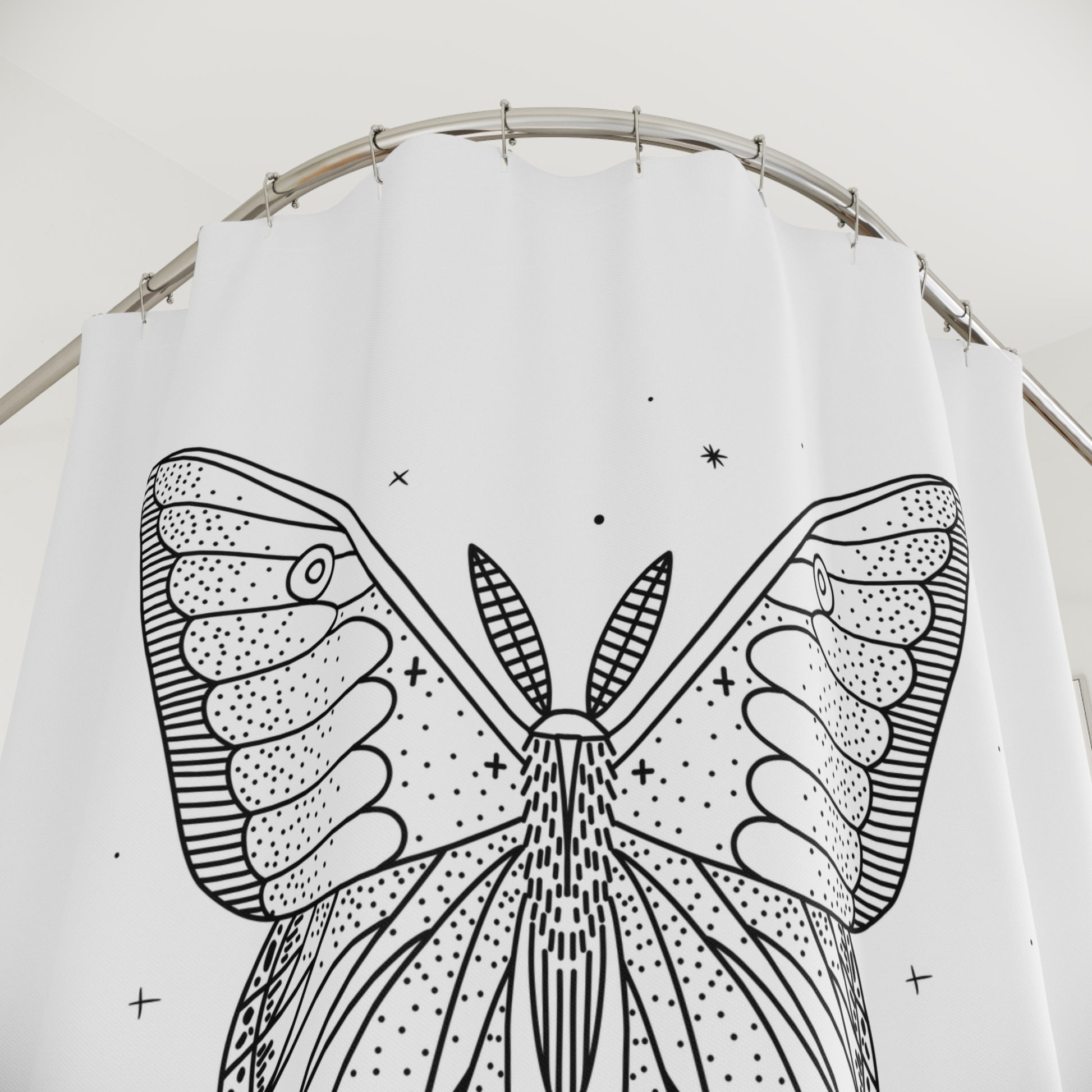 SCHMETTERLING ZEICHNUNG ELEGANT • Hochwertiger, Schöner Duschvorhang 180x200 cm Weiss