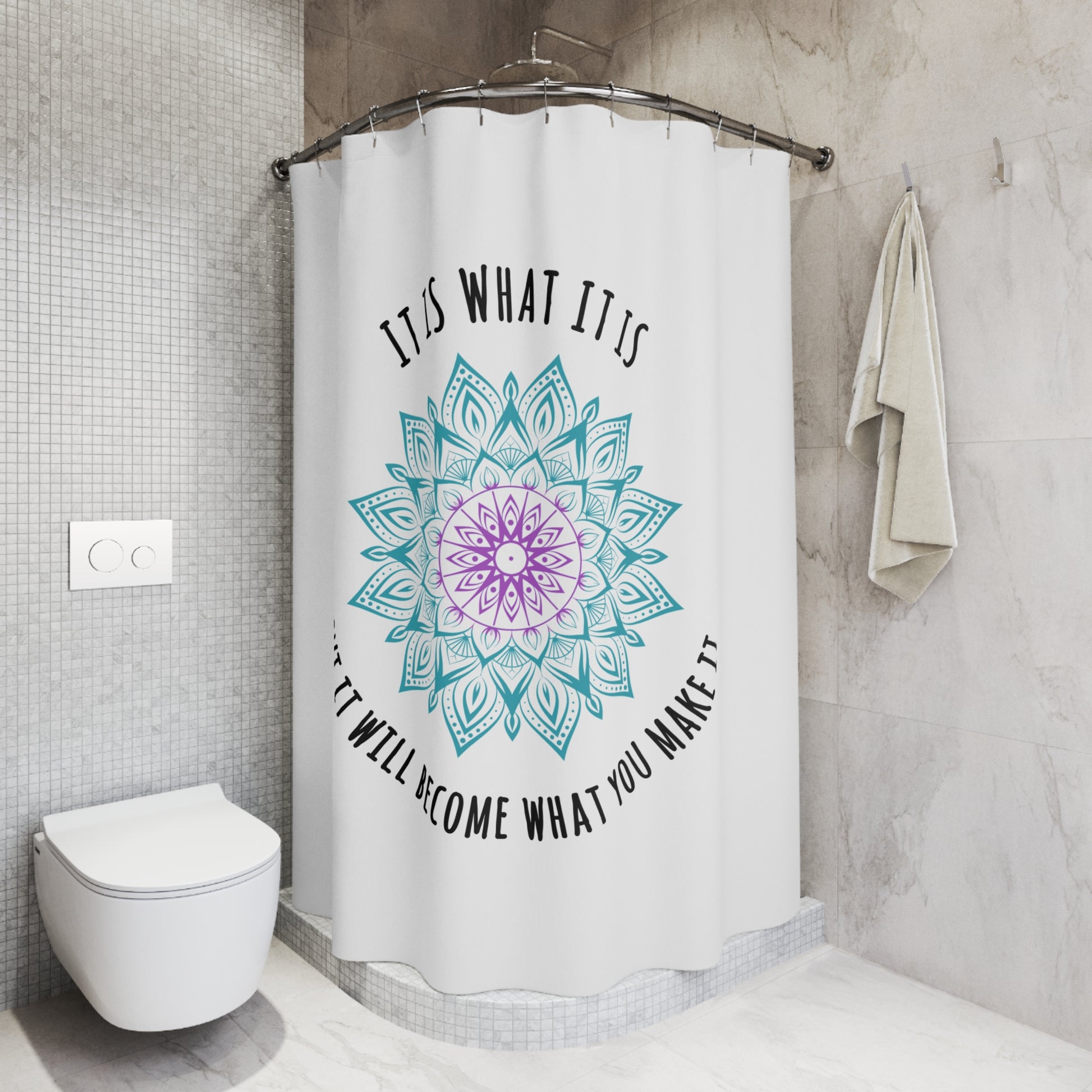 IT IS WHAT IT IS - MANDALA BLUME • Hochwertiger, Schöner Duschvorhang 180x200 cm Weiss