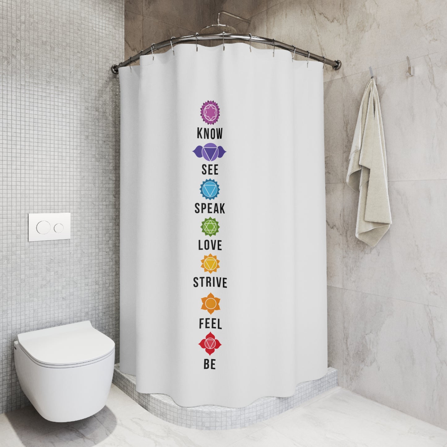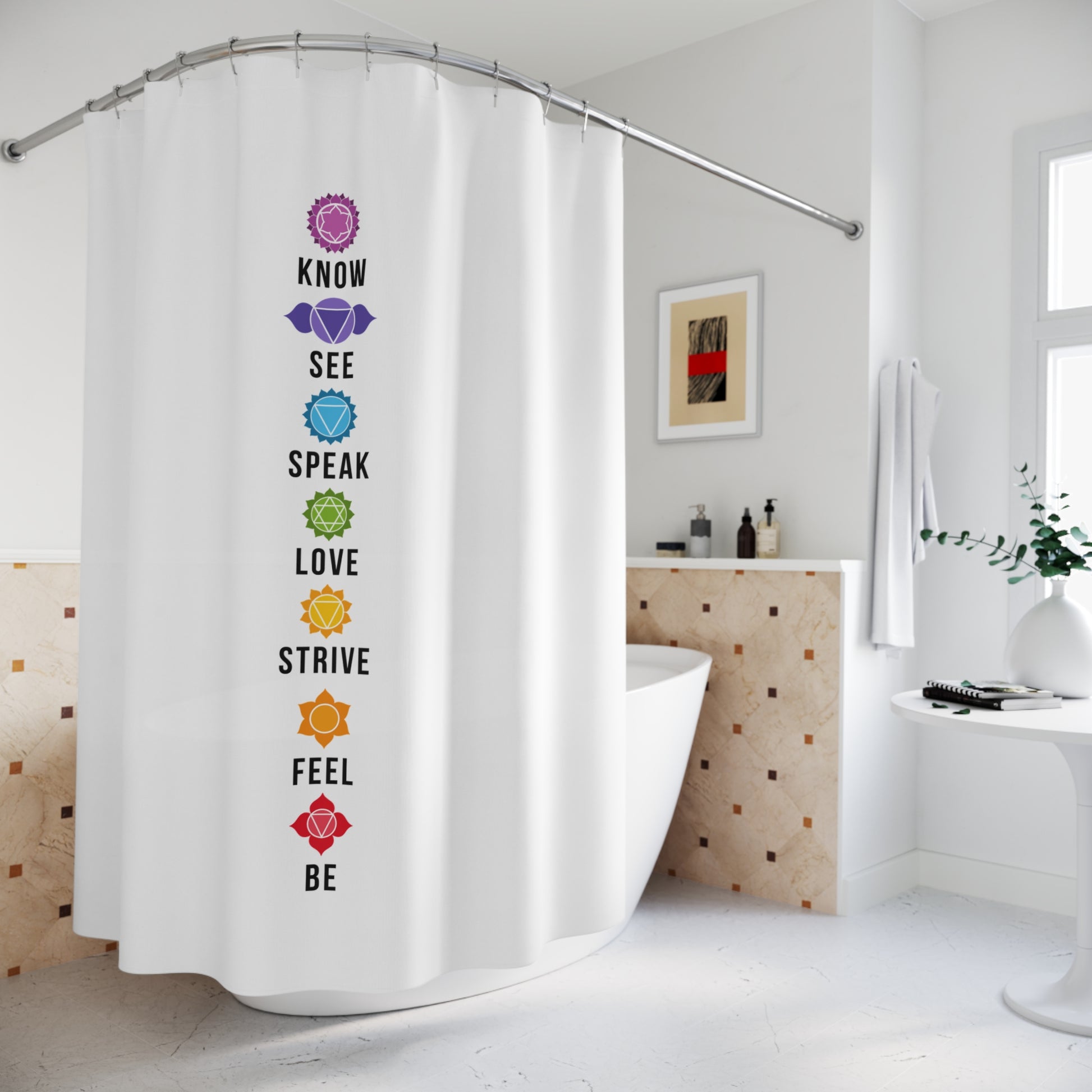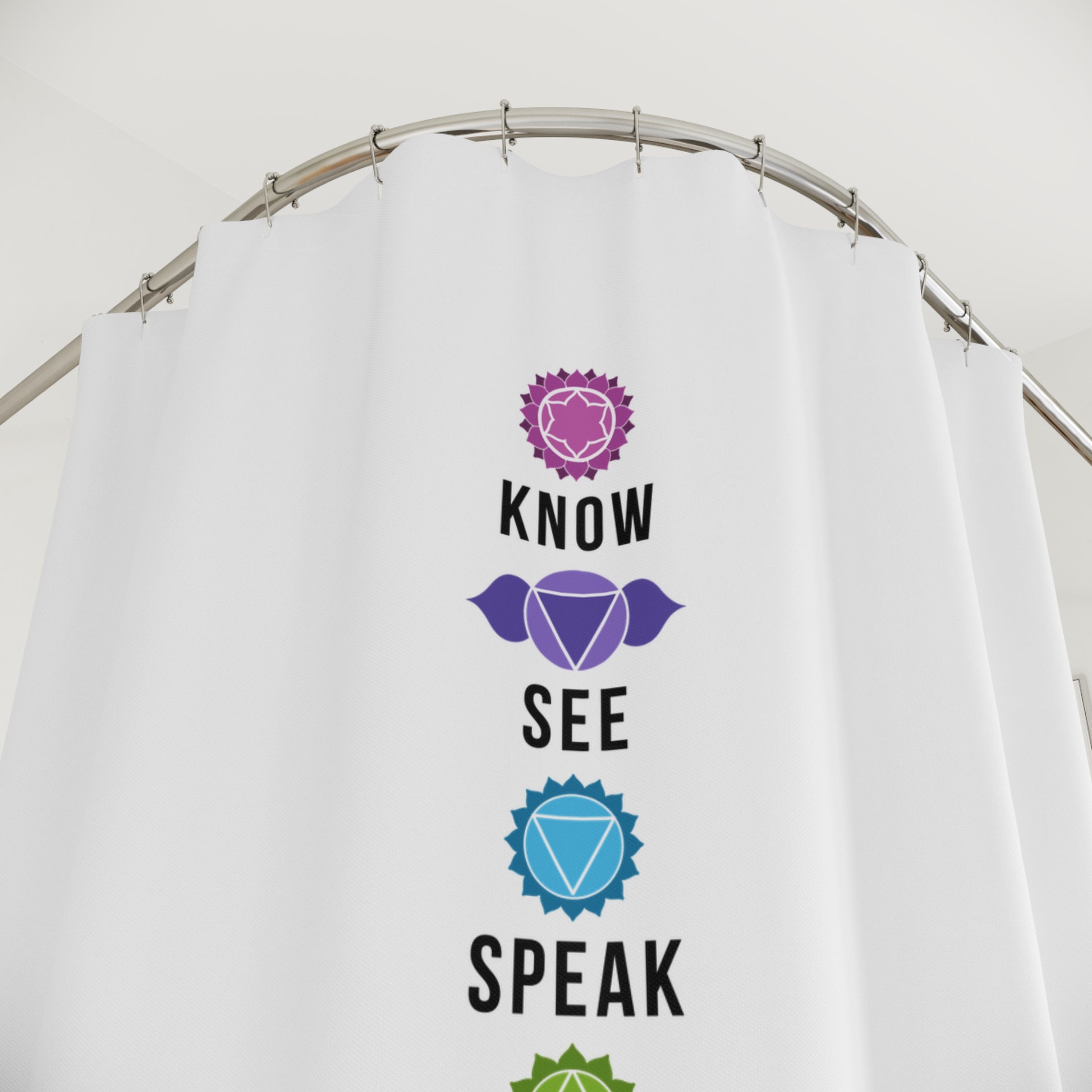 CHAKREN 7 CHAKRA FLORAL • Hochwertiger, Schöner Duschvorhang 180x200 cm Weiss