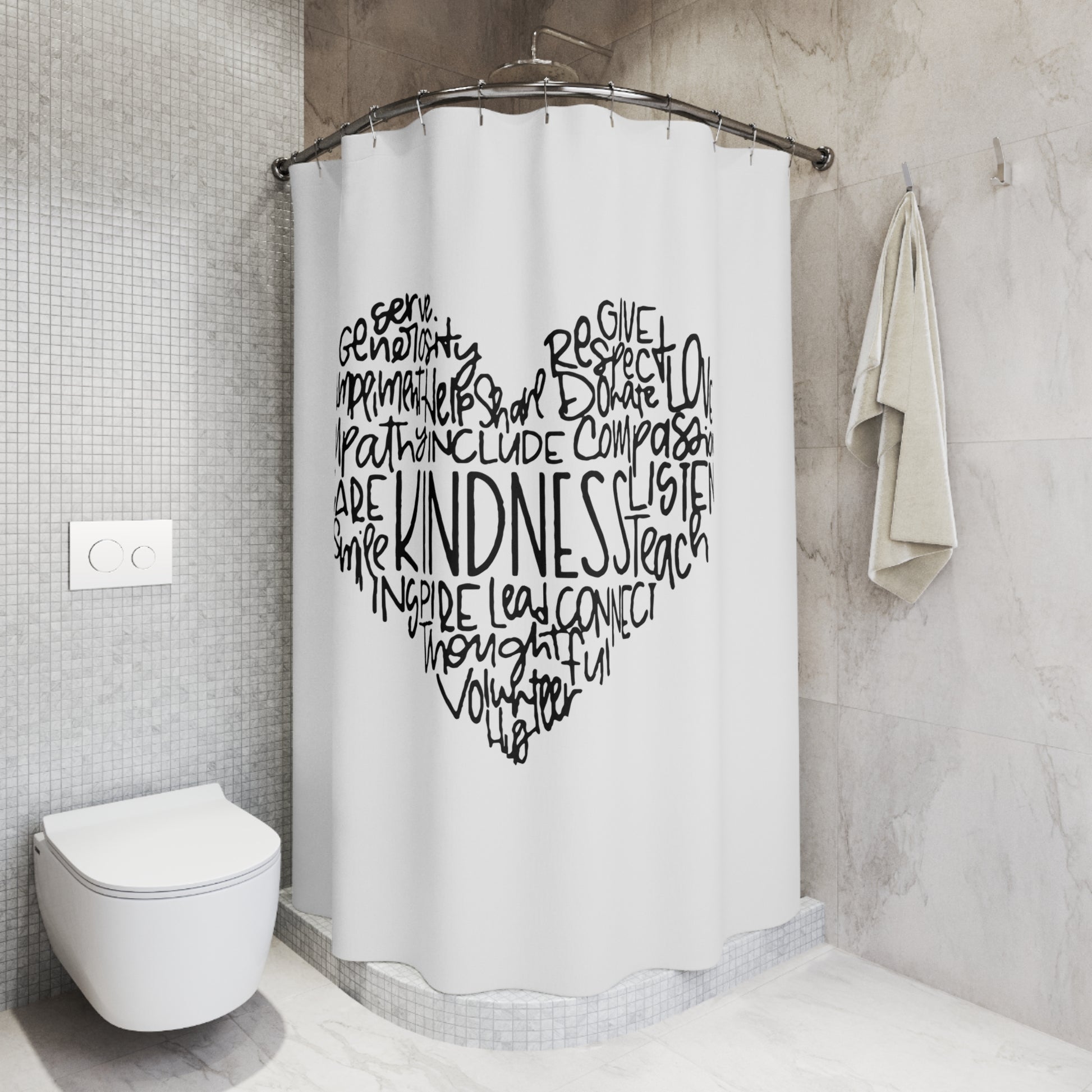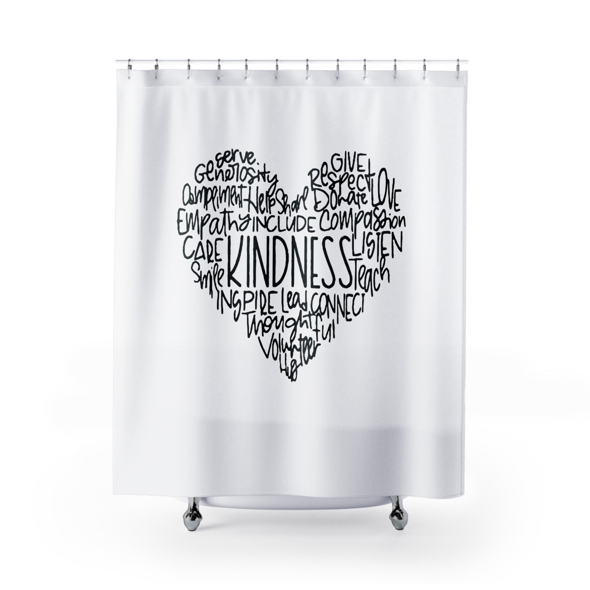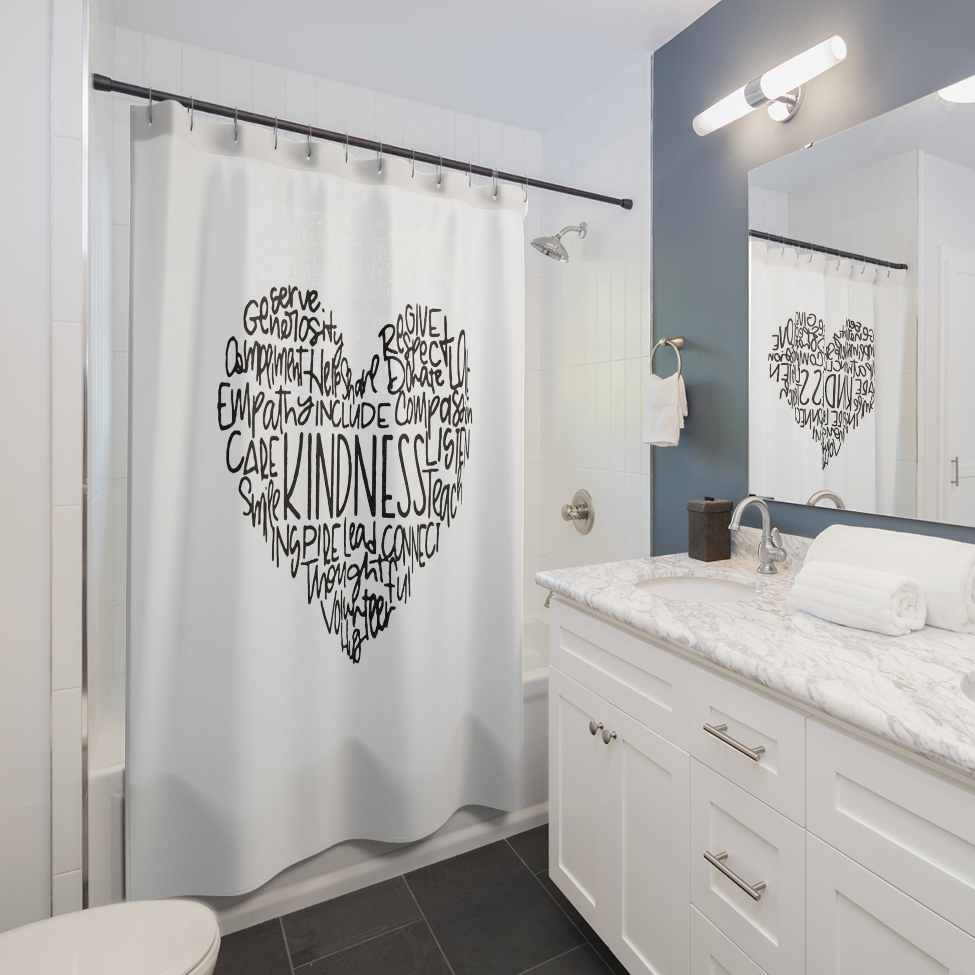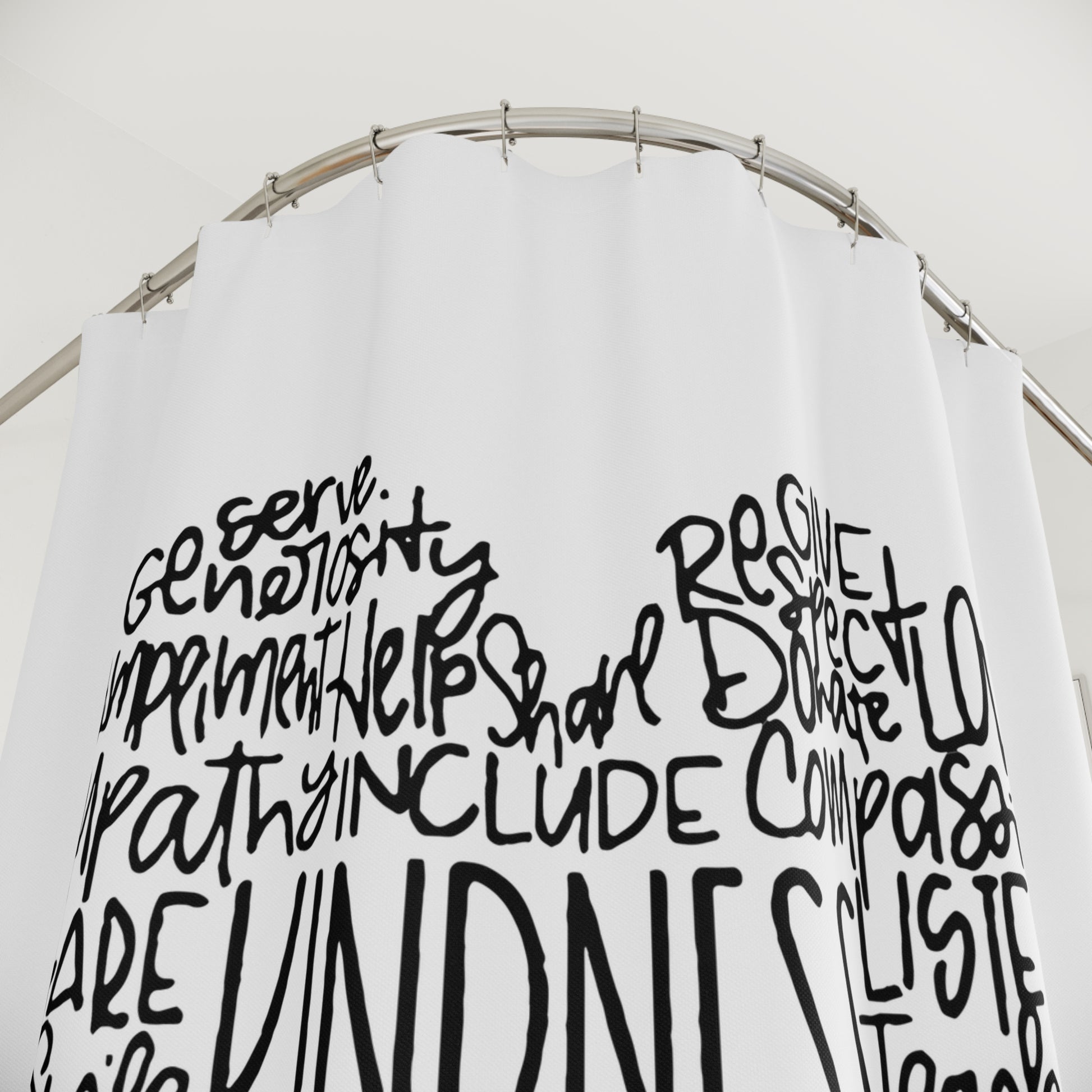 KINDNESS • Liebesbeweis Geschenk, LOVE Liebesbotschaft • Duschvorhang 180x200 cm Weiss