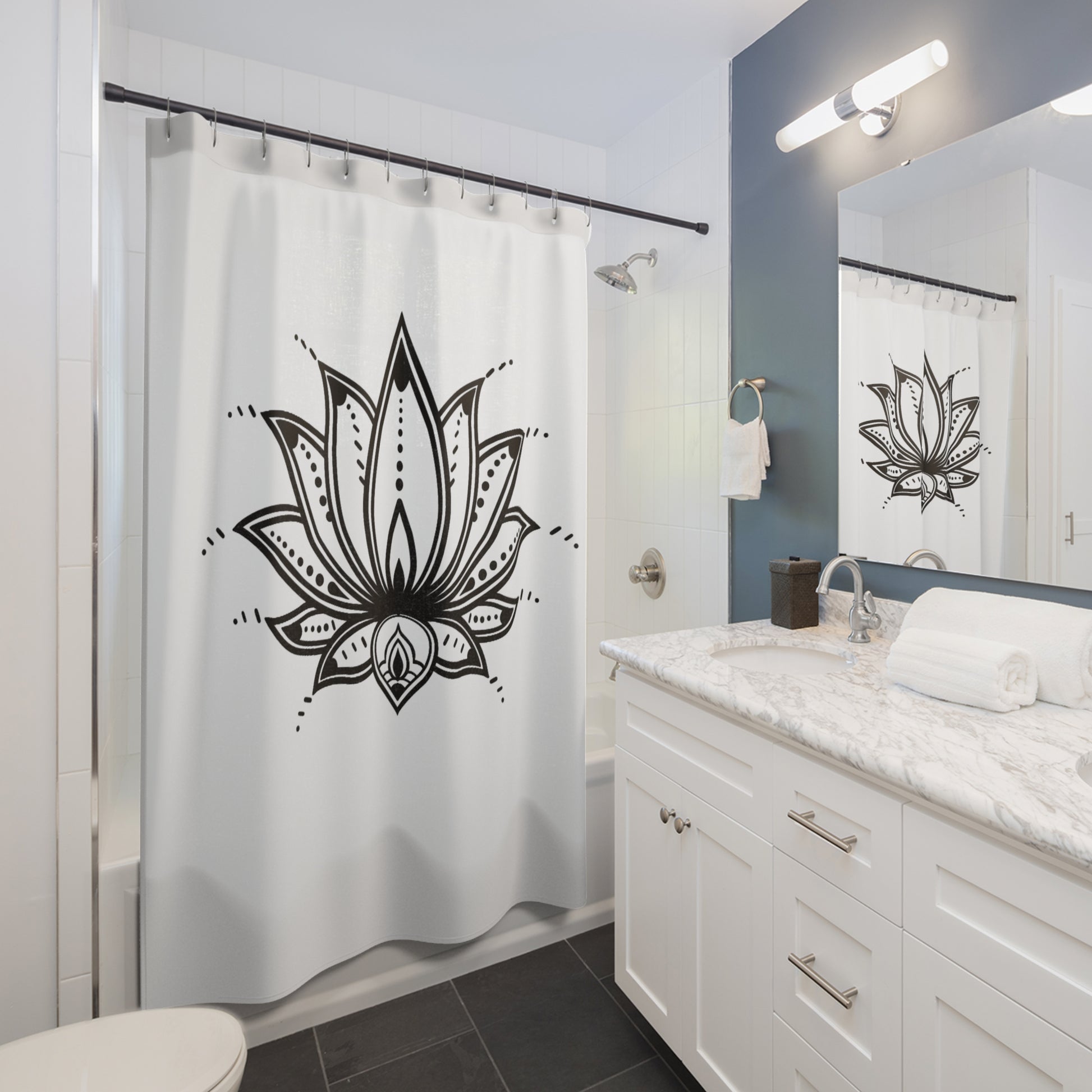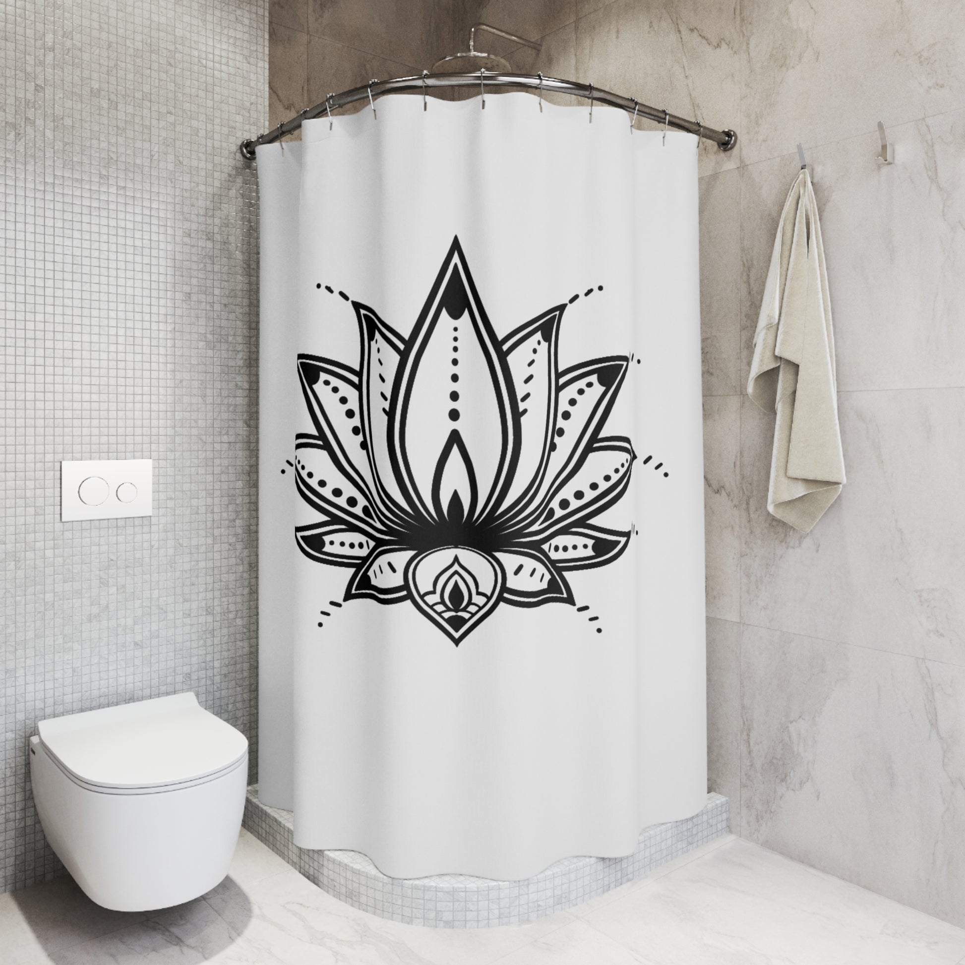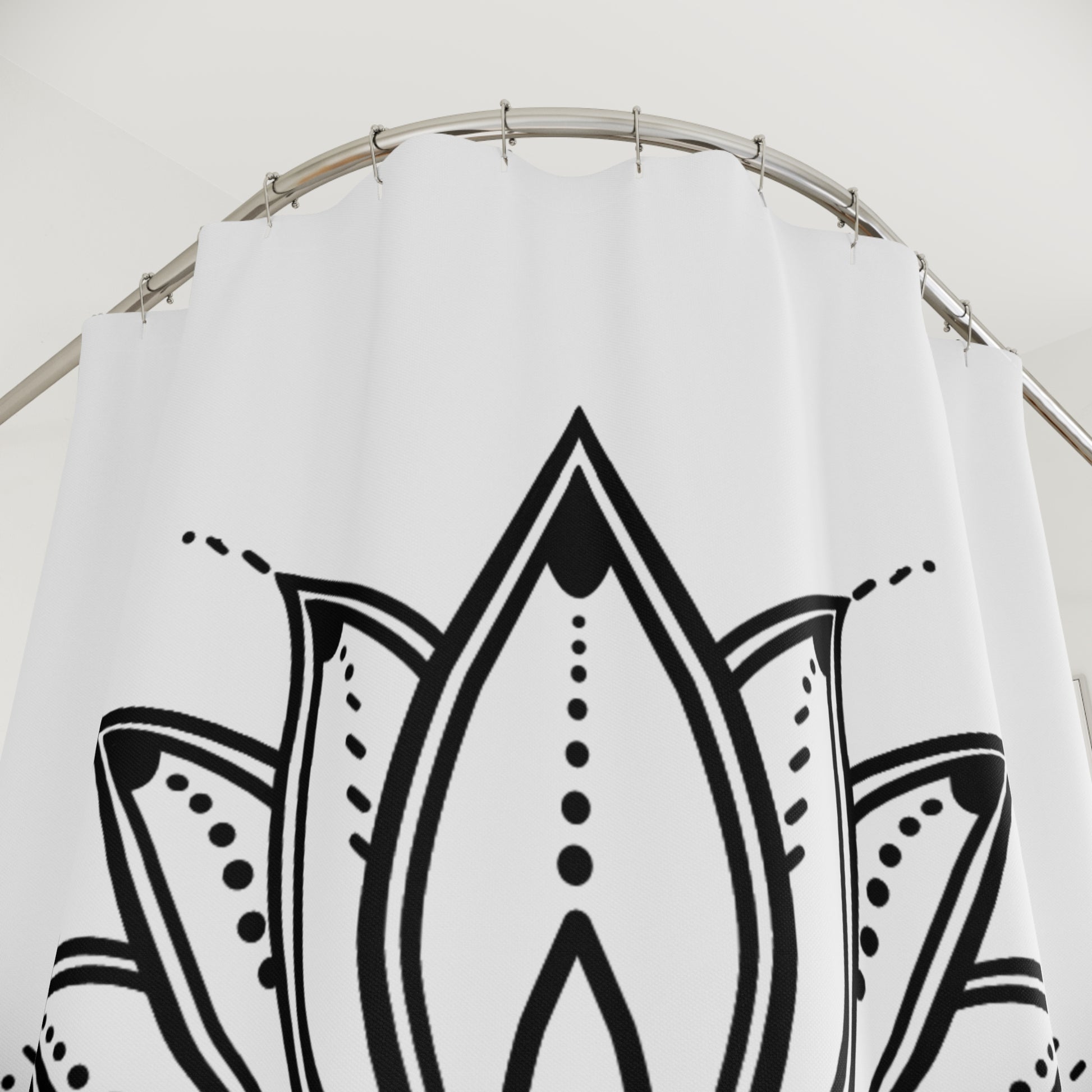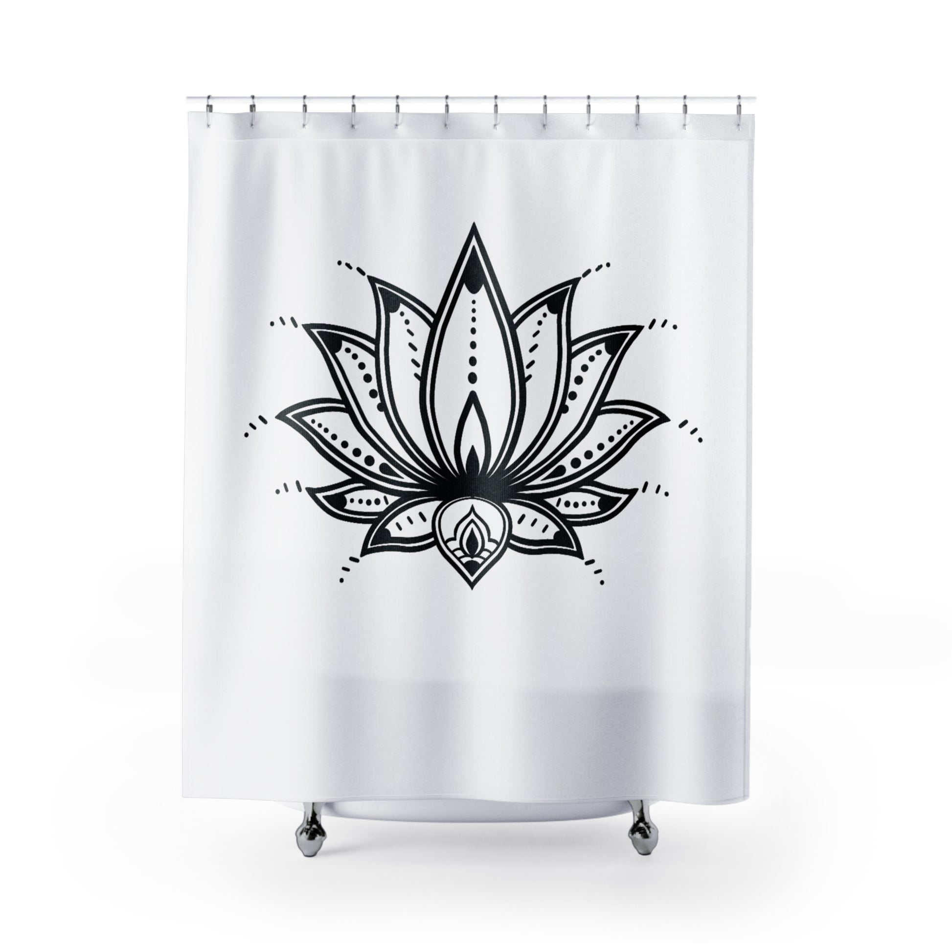 LOTUS BLÜTE BLUMEN DESIGN HANDGEZEICHNET • Duschvorhang 180x200 cm Weiss