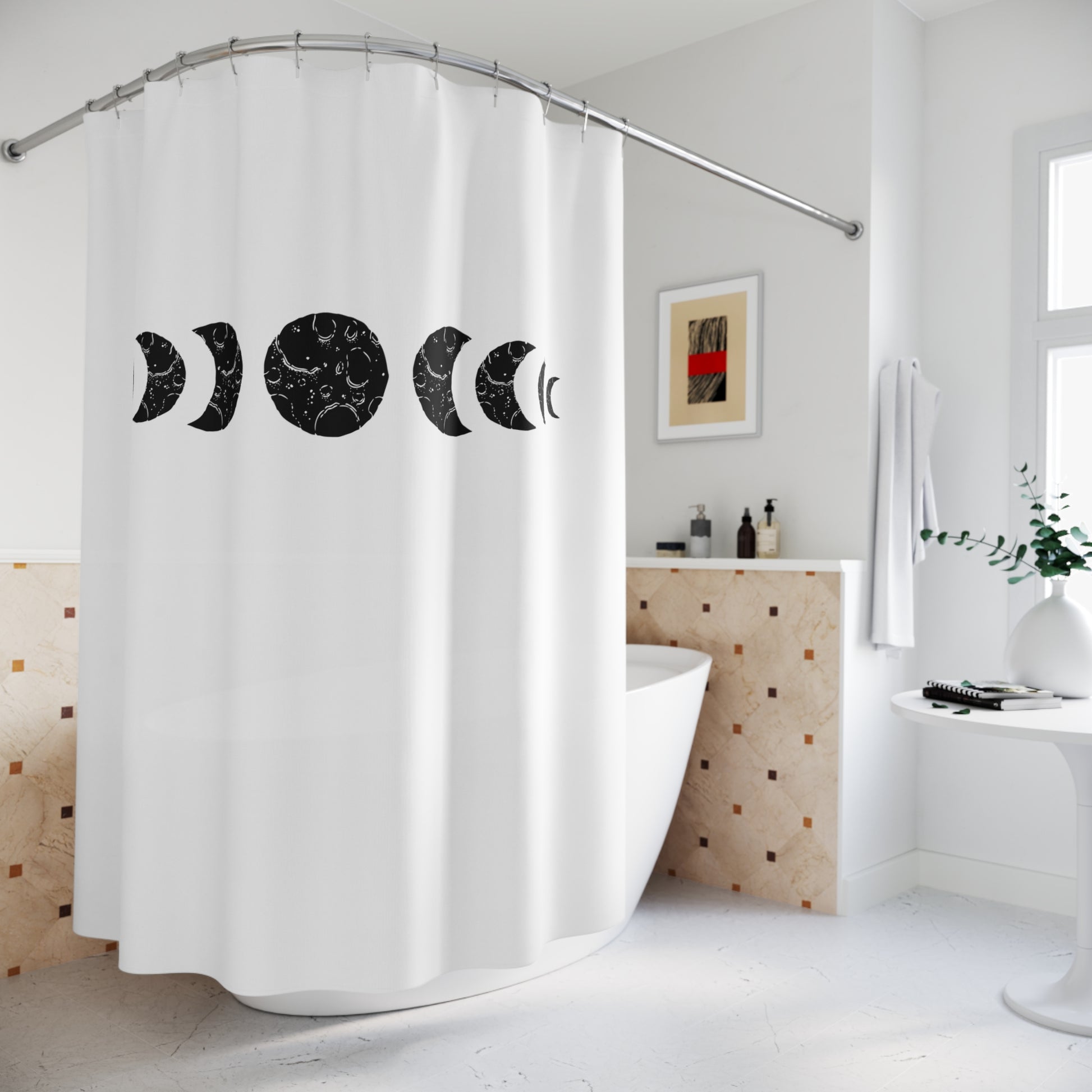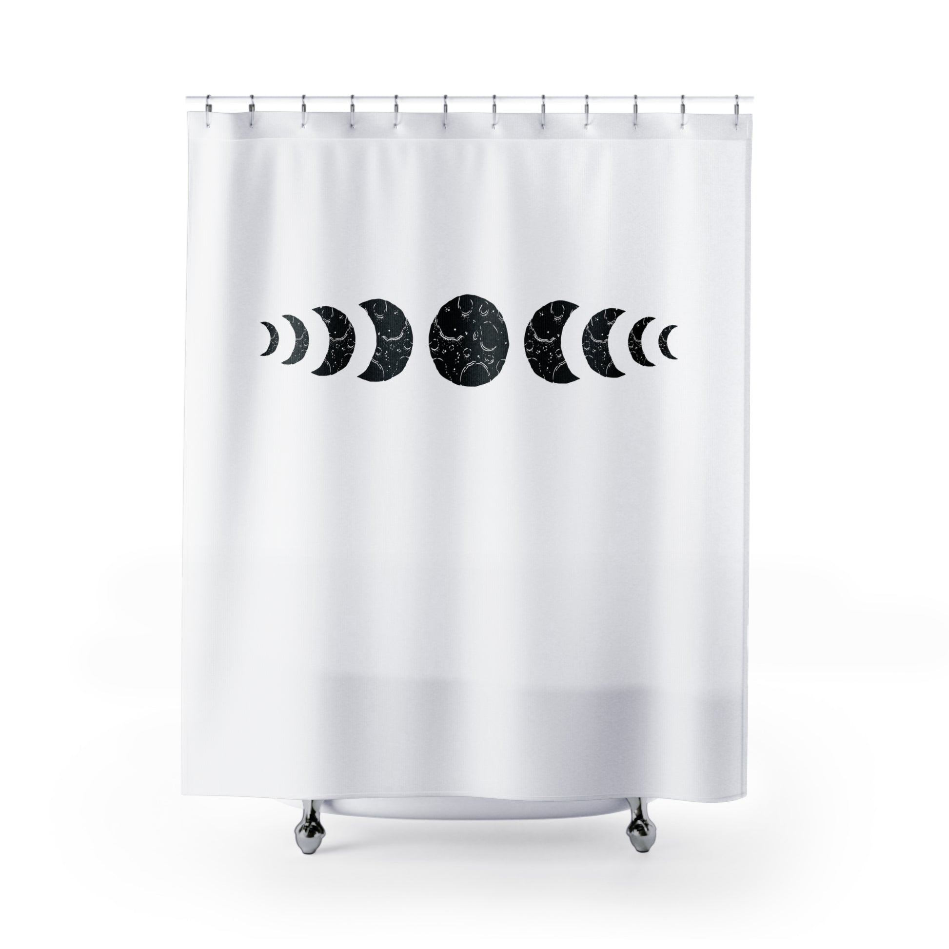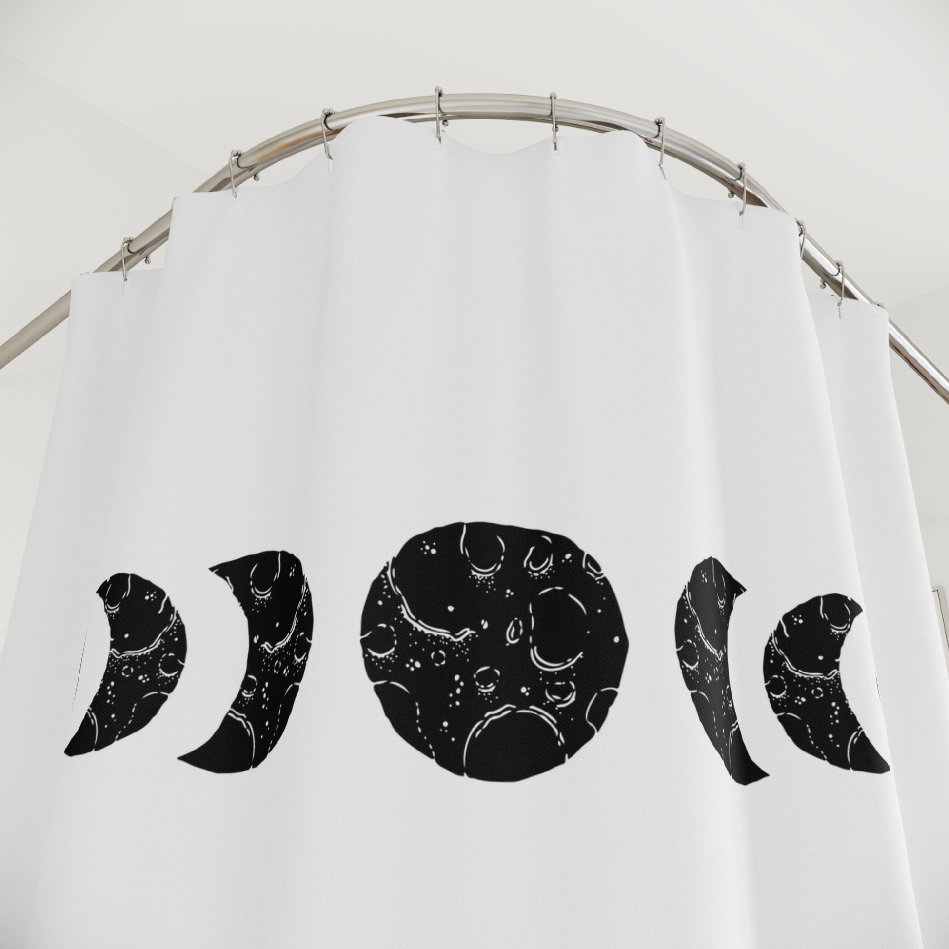 MONDPHASEN MONDZYKLUS • Hochwertiger, Schöner Duschvorhang 180x200 cm Weiss