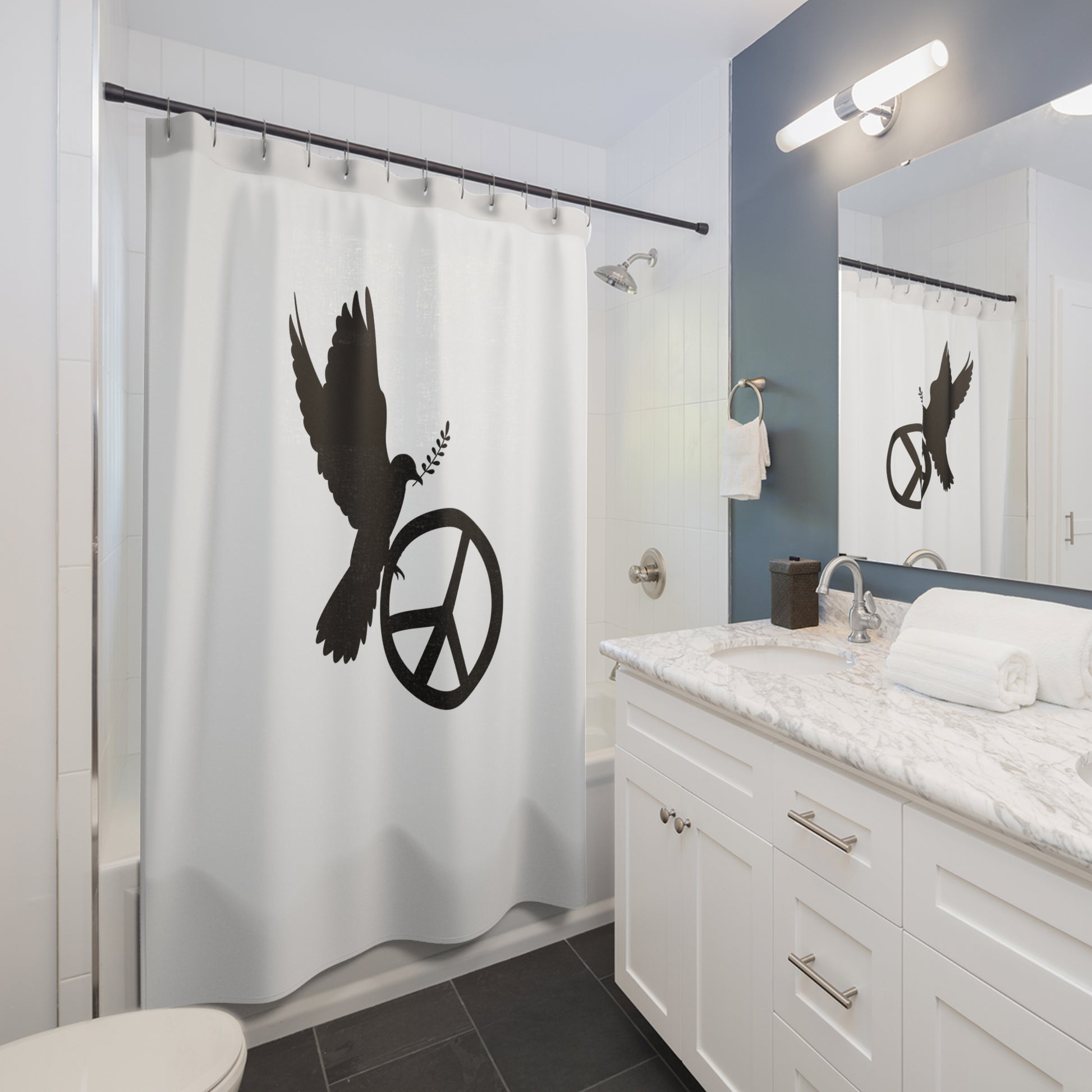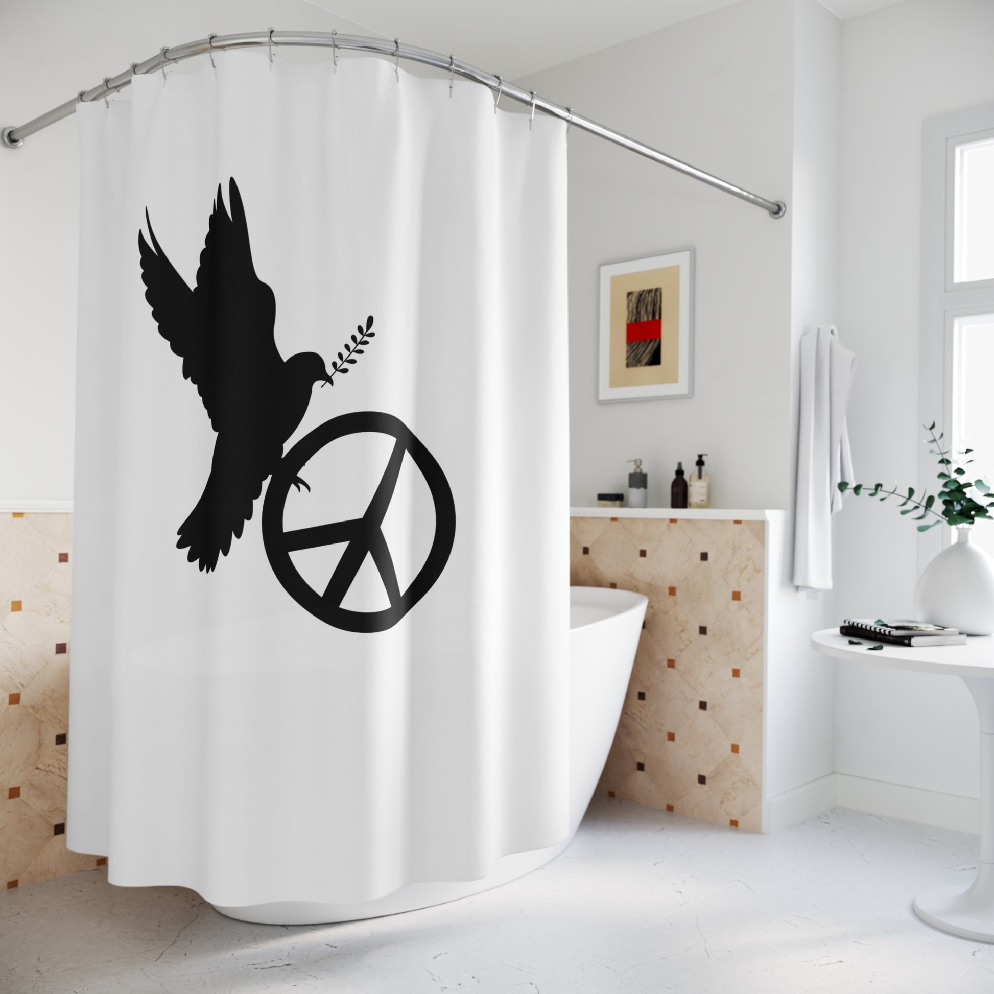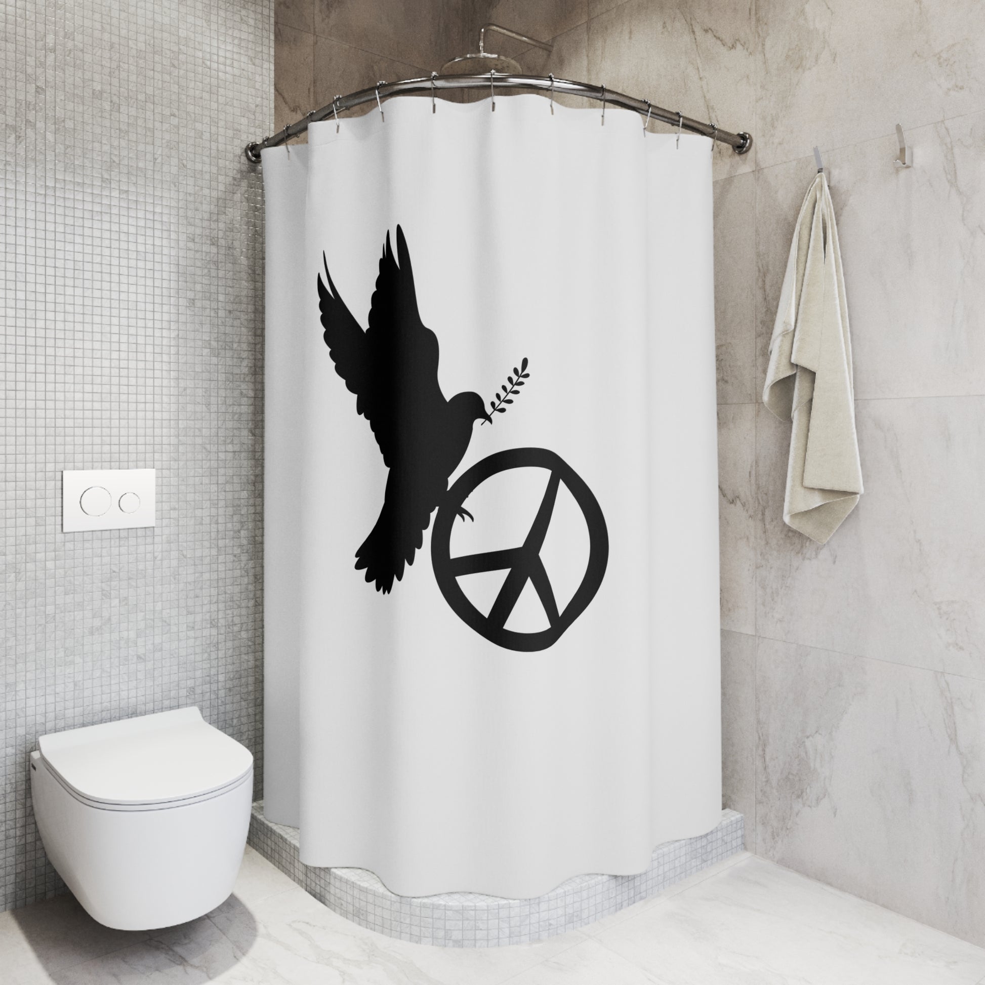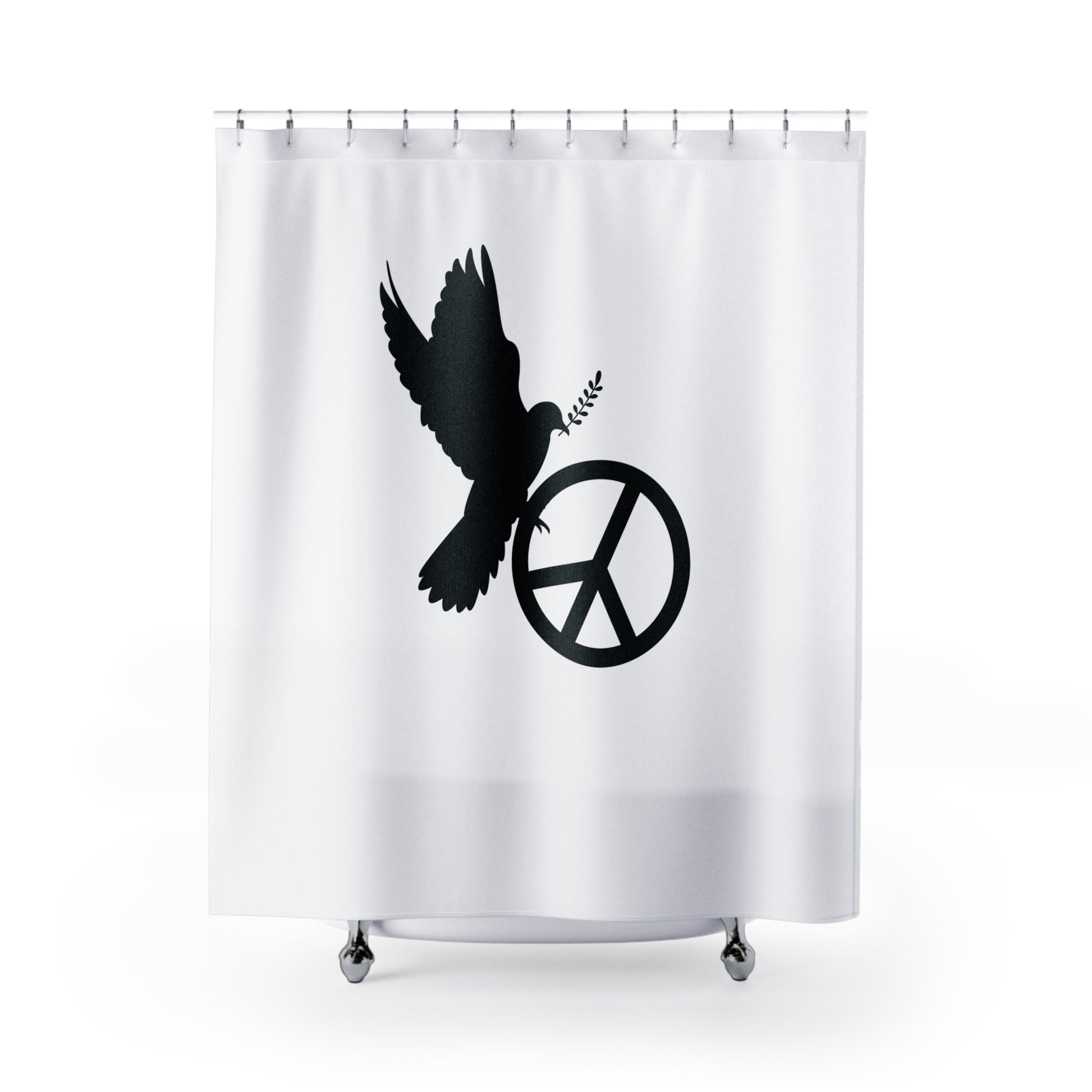 PEACE ZEICHEN FRIEDSENTAUBE • Hochwertiger, Schöner Duschvorhang 180x200 cm Weiss