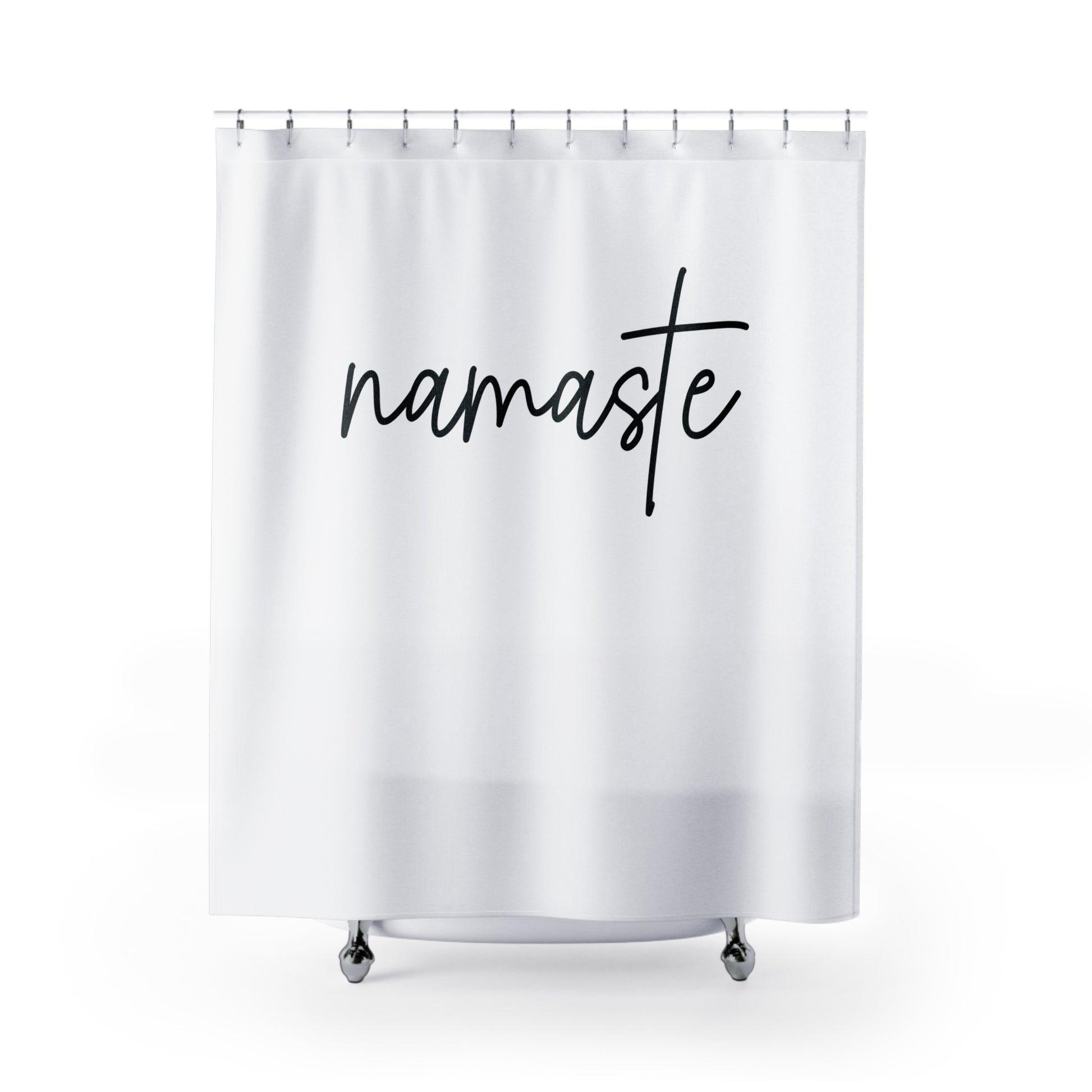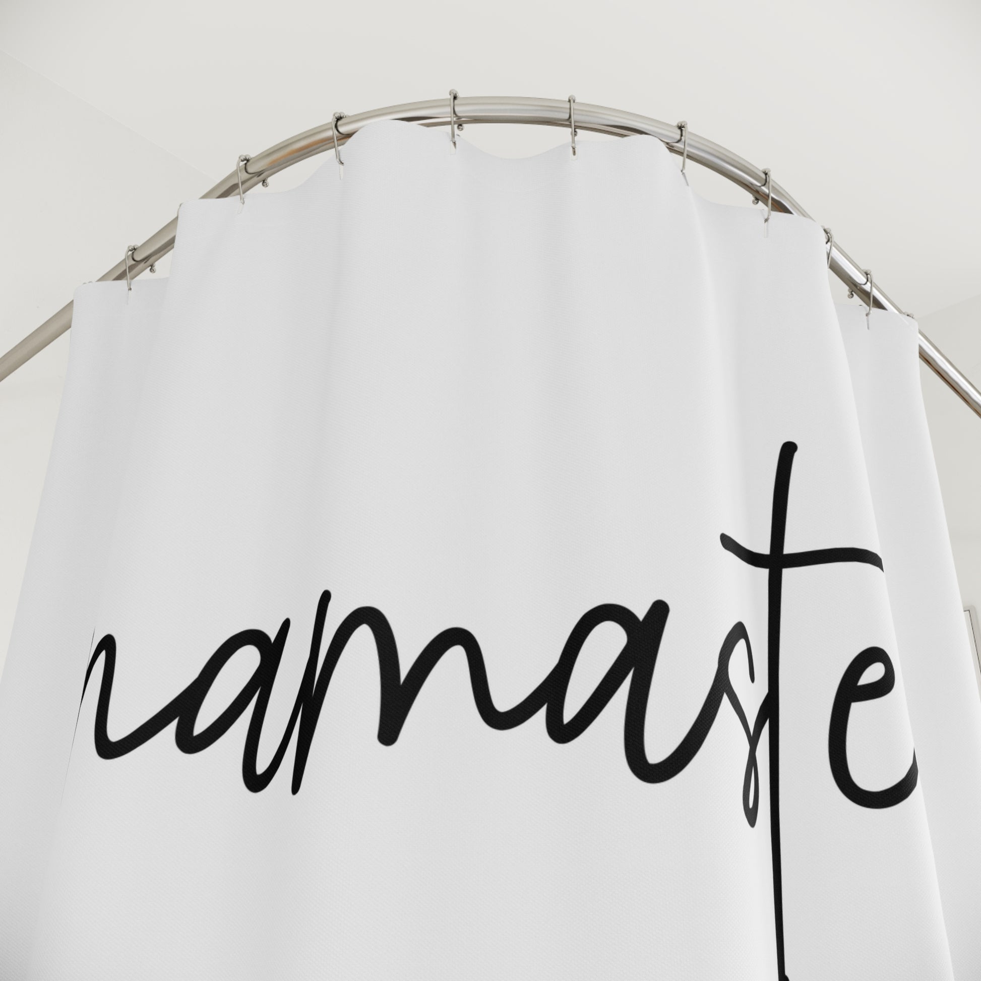 NAMASTE SPRUCH YOGA SCHRIFTZUG • Schöner Duschvorhang 180x200 cm Weiss