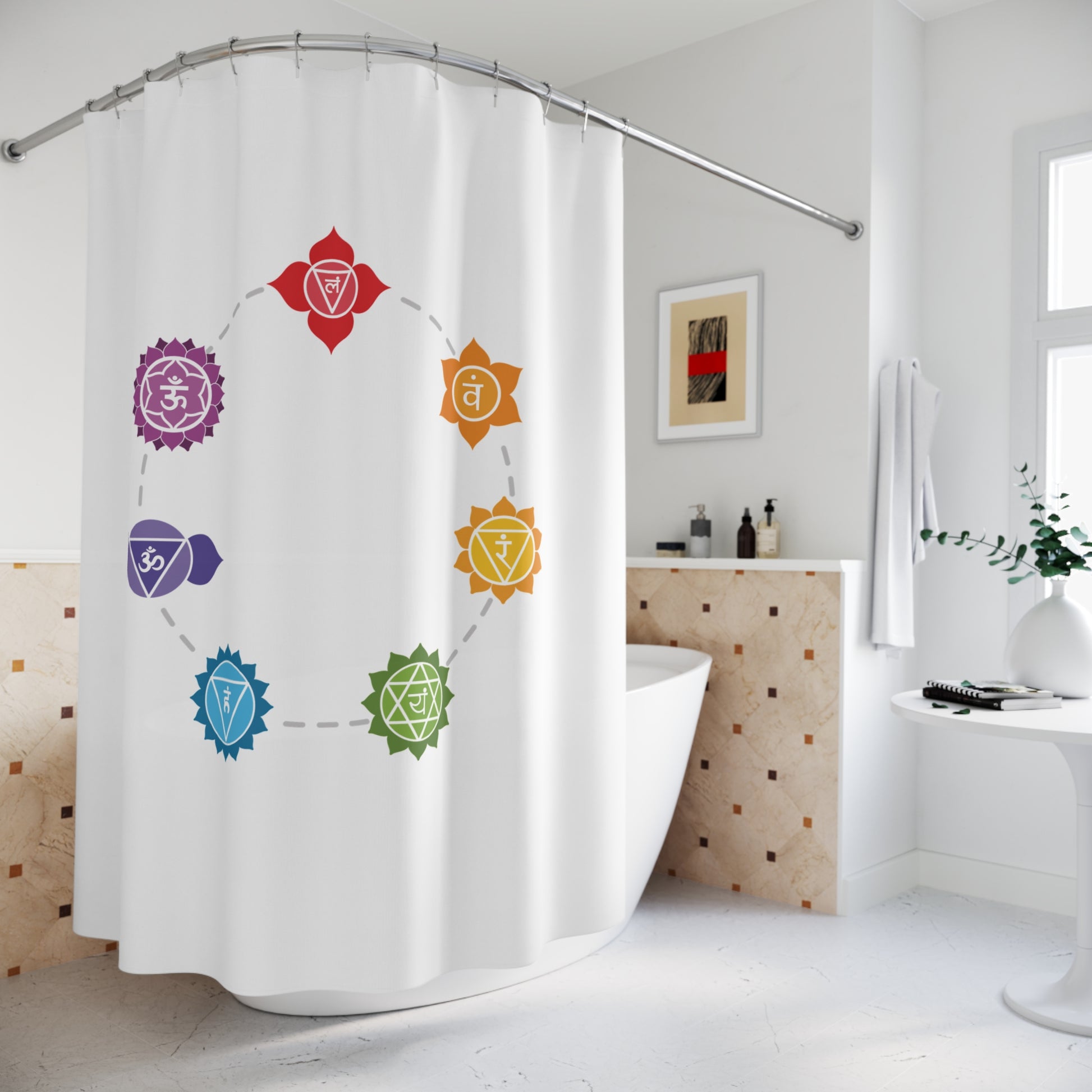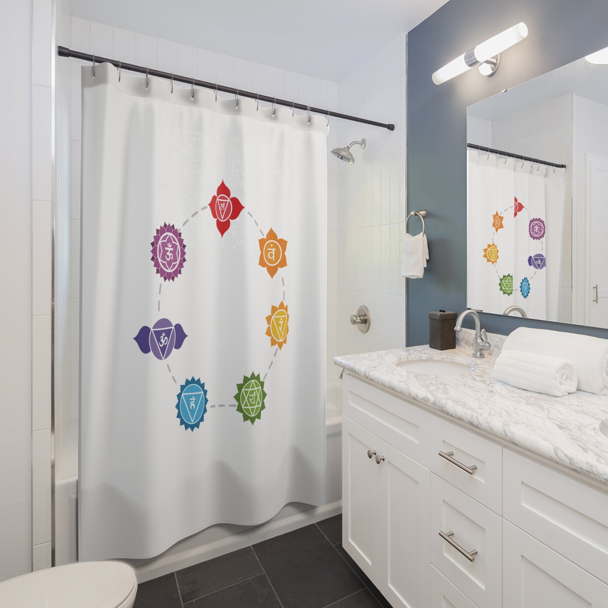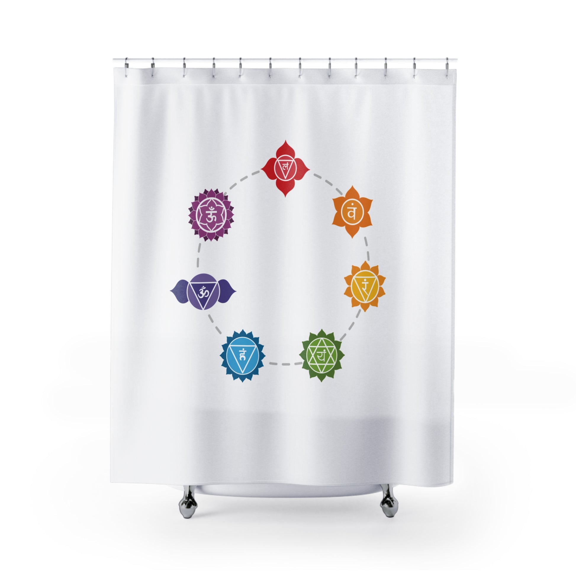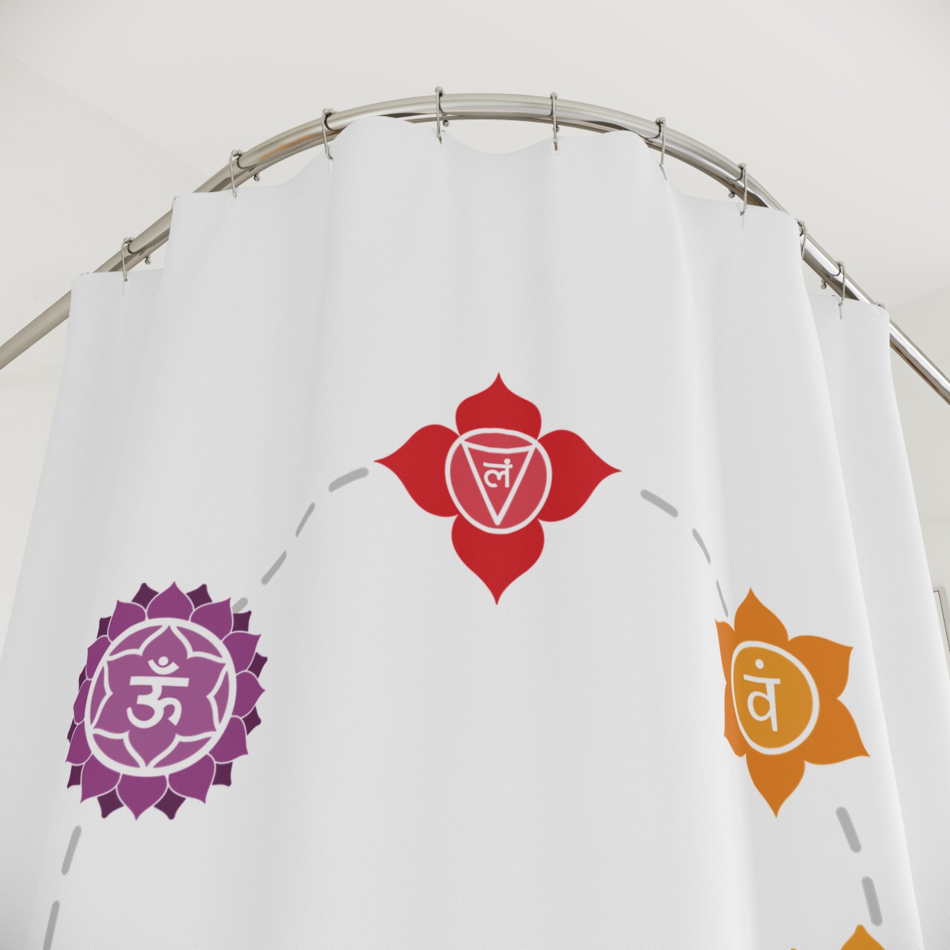 CHAKREN 7 CHAKRA SYMBOLE • Hochwertiger, Schöner Duschvorhang 180x200 cm Weiss