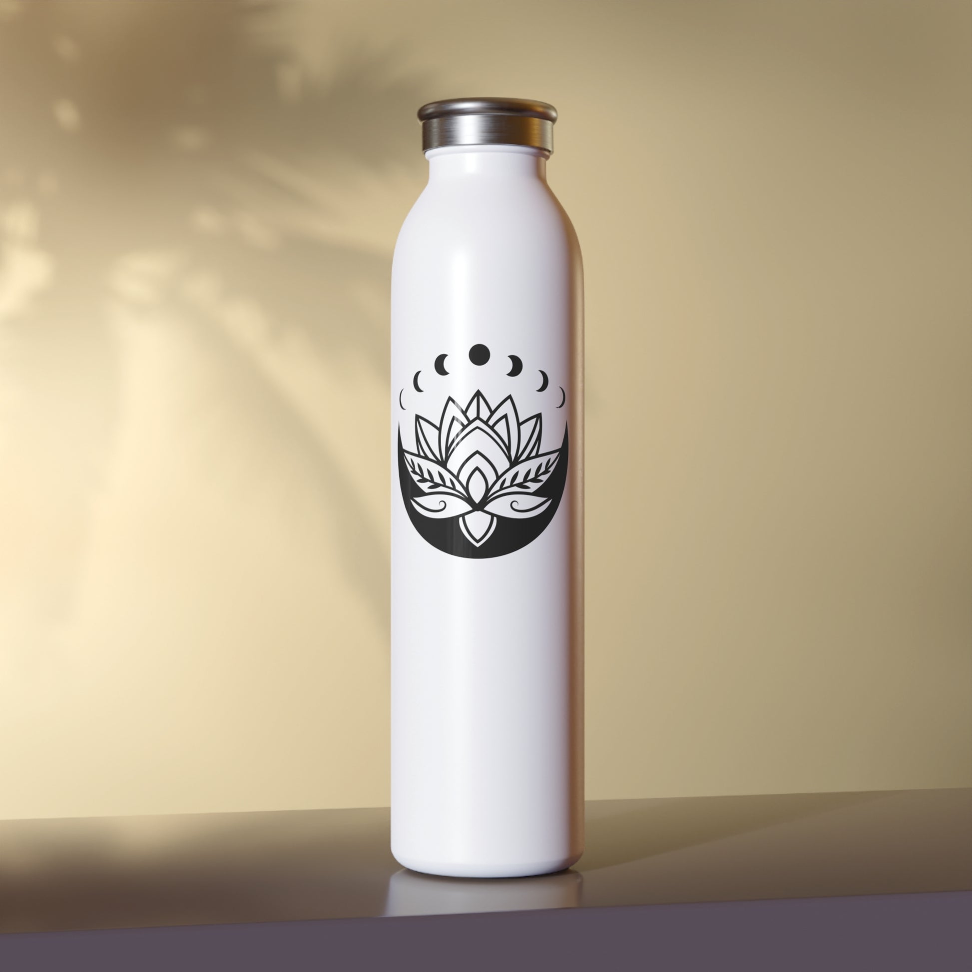 LOTUSBLÜTE MONDPHASEN BLÜTENMOTIV • Edelstahl Thermosflasche SLIM • 600 ml