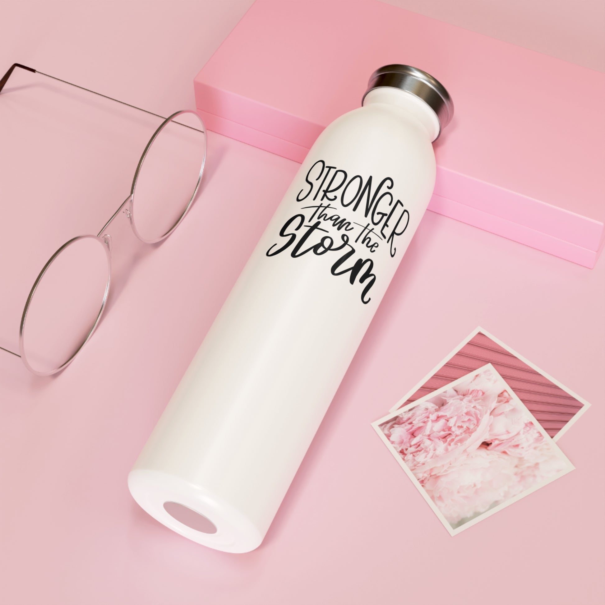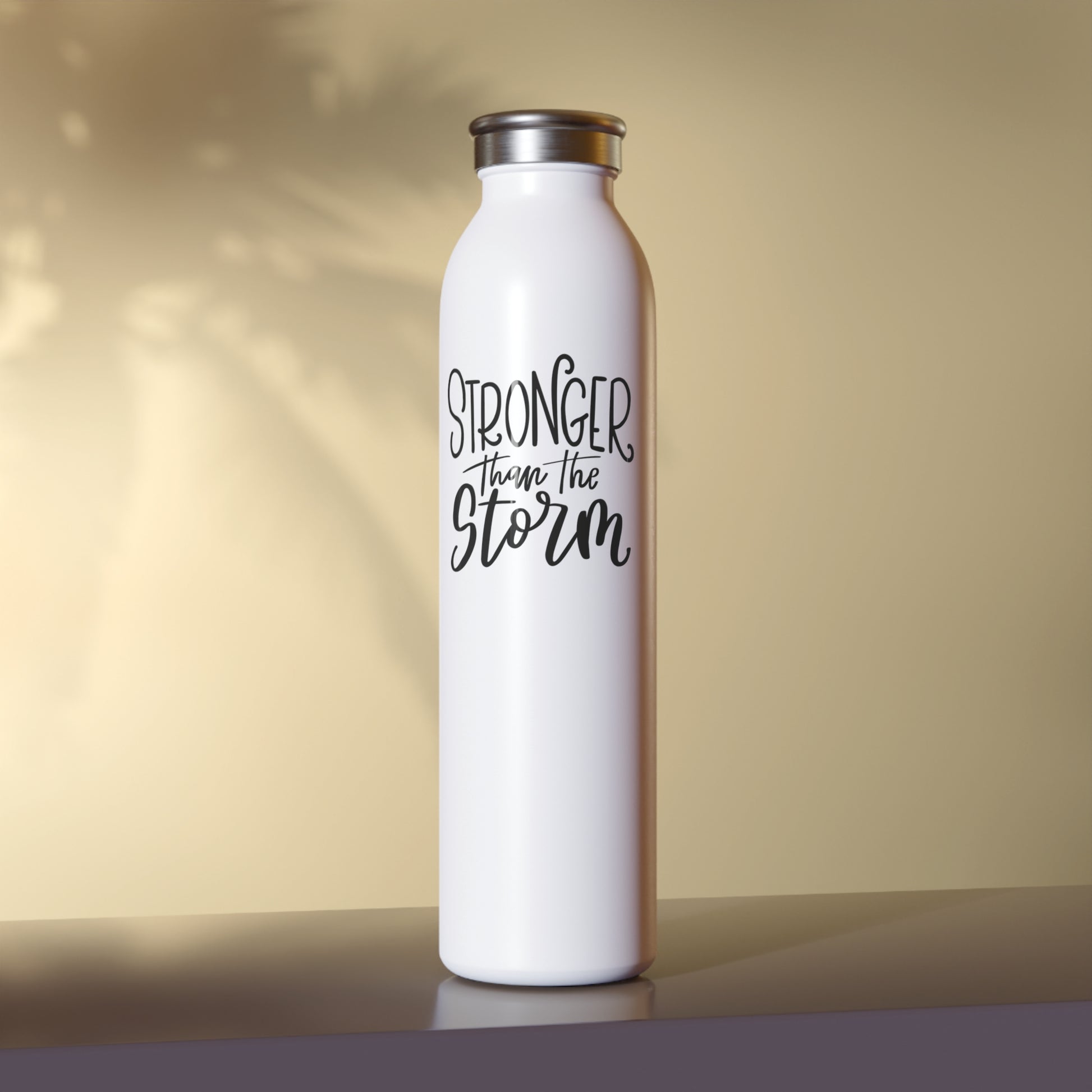 STRONGER THAN THE STORM • Motivationsspruch •Edelstahl Thermosflasche SLIM • 600 ml
