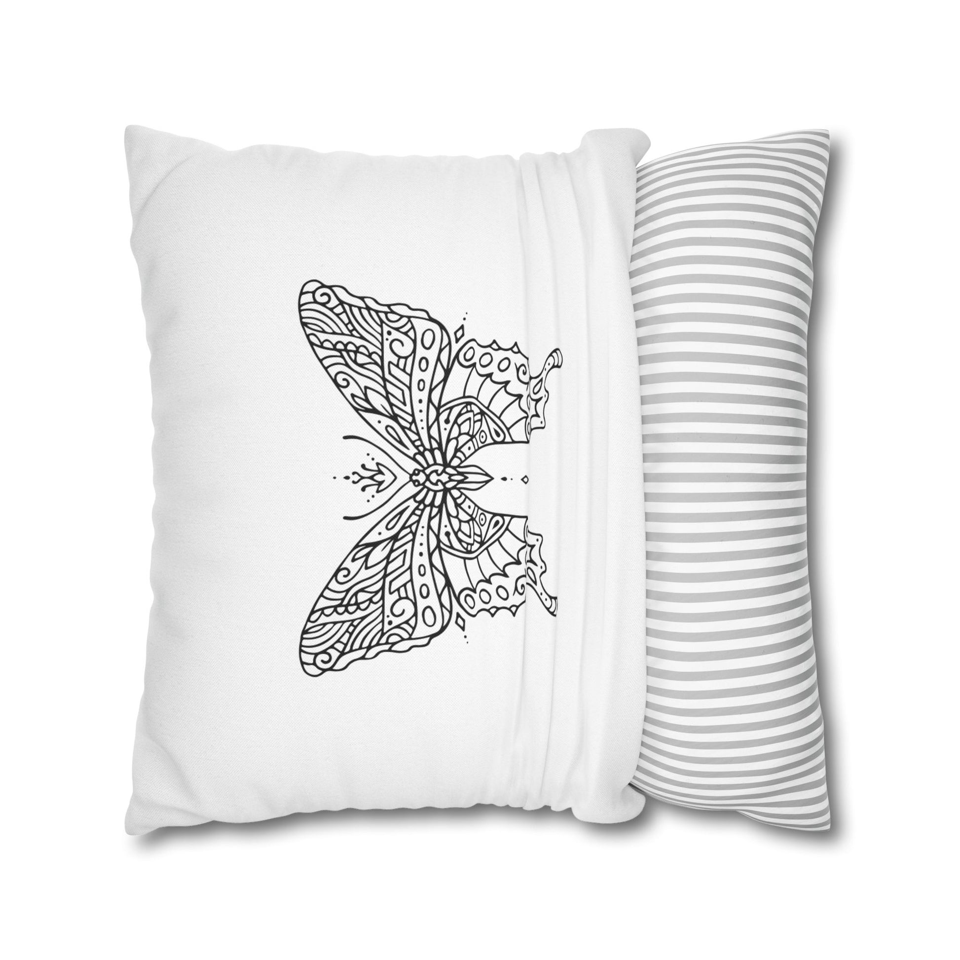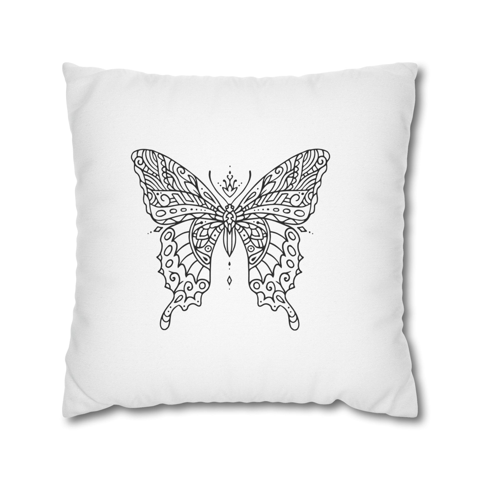SCHMETTERLING ZEICHNUNG ÄSTHETISCH • Deko Kissenbezug mit Reißverschluss Quadratisch Weiß