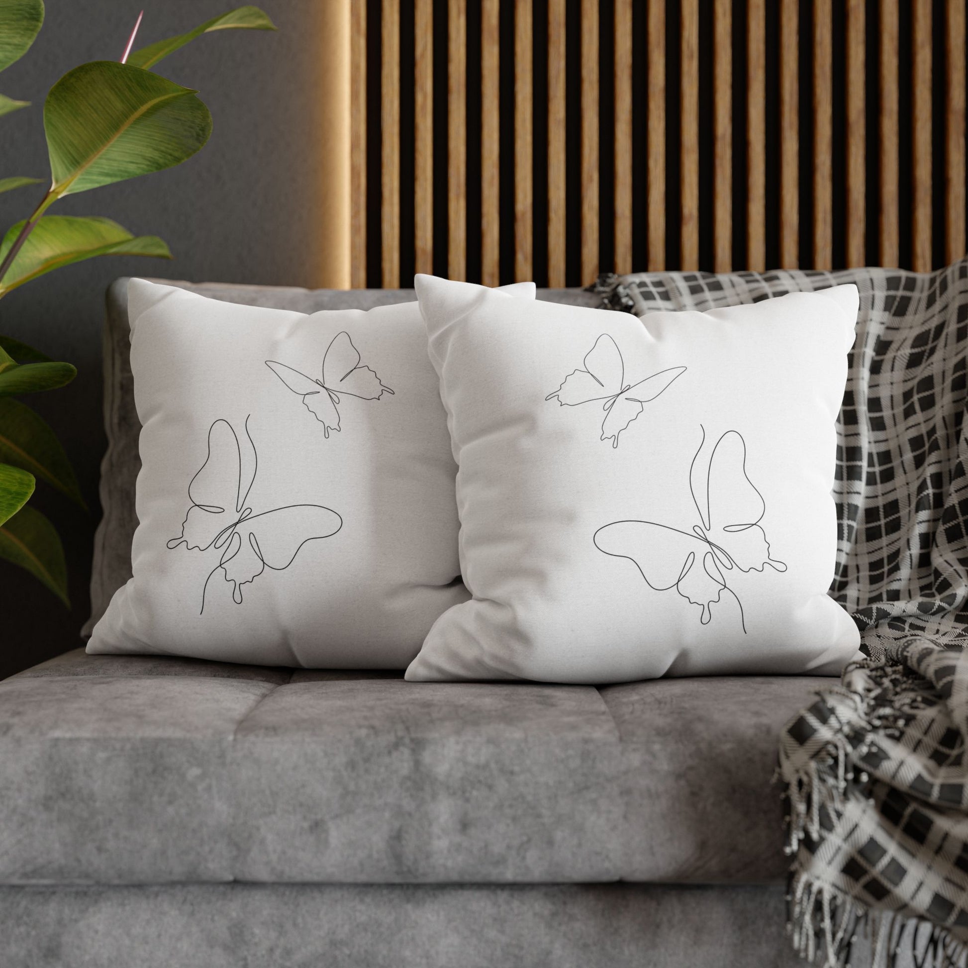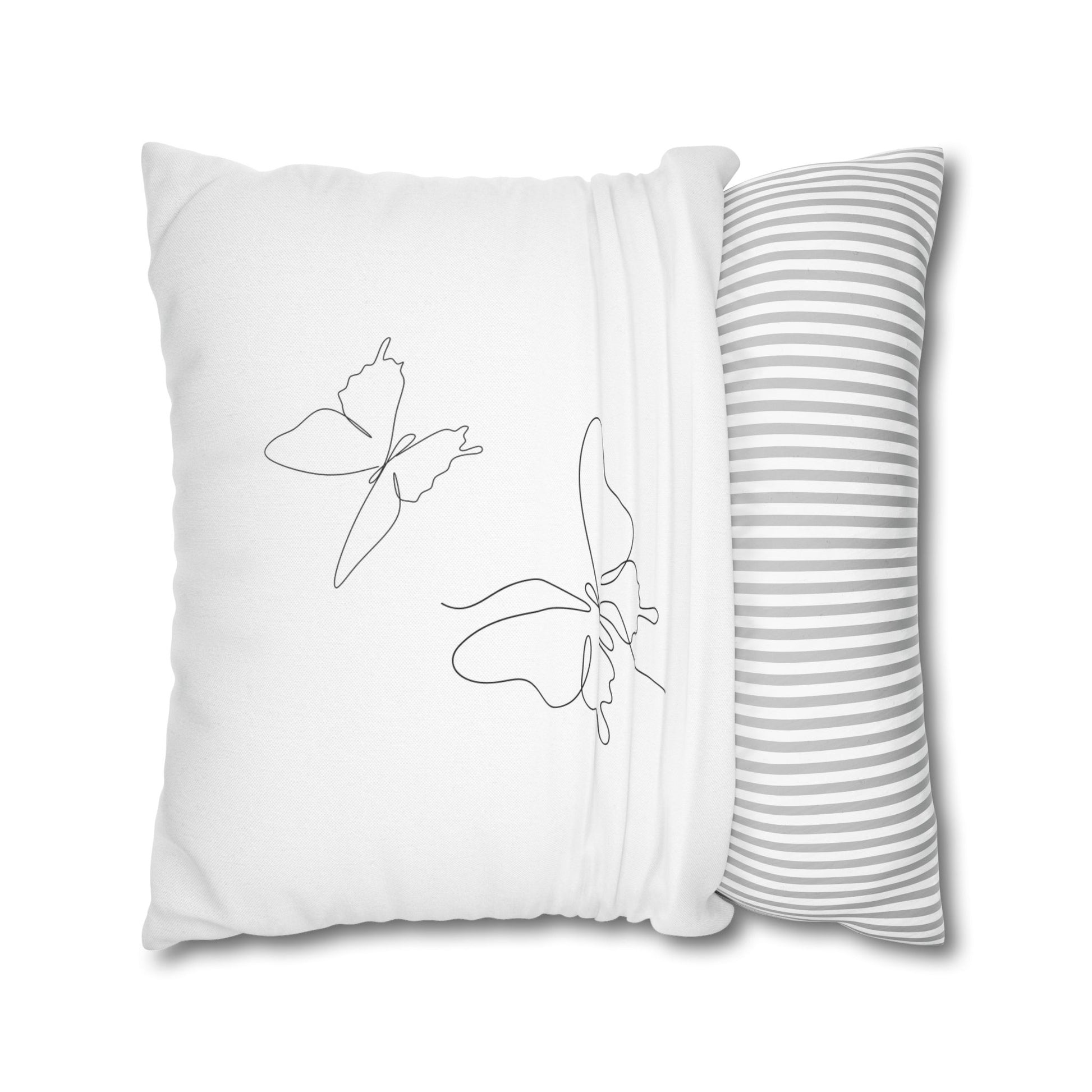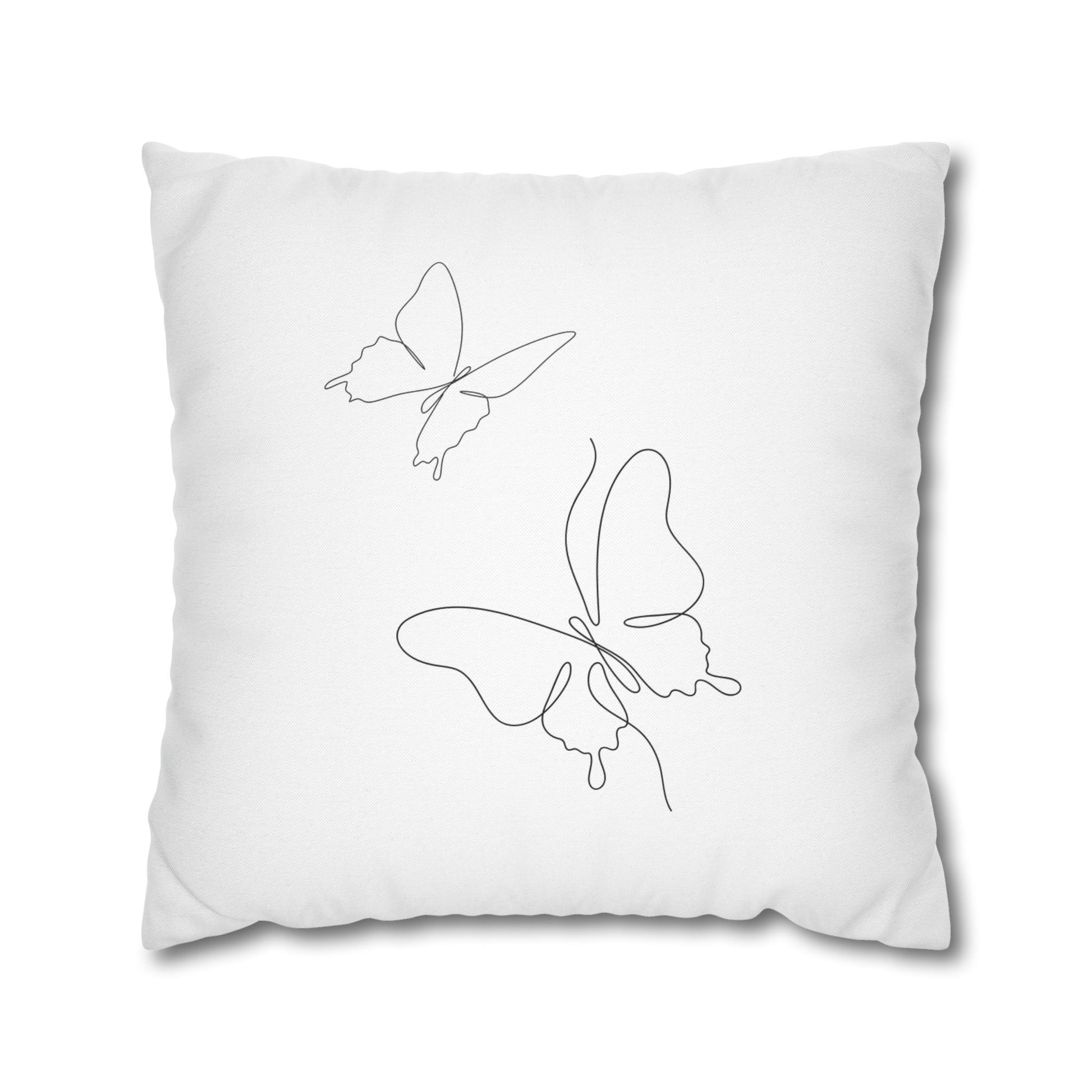 SCHMETTERLINGE MINIMALISITSCH Eine-Linie-Zeichnung • Deko Kissenbezug Weiß