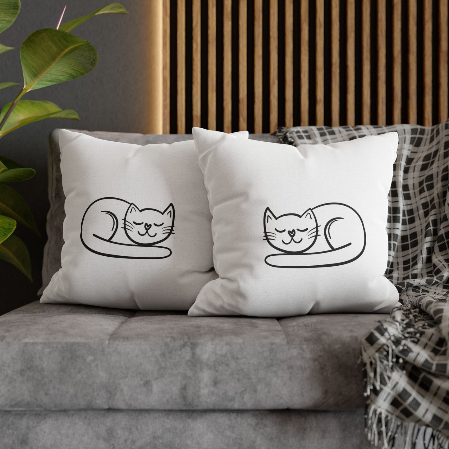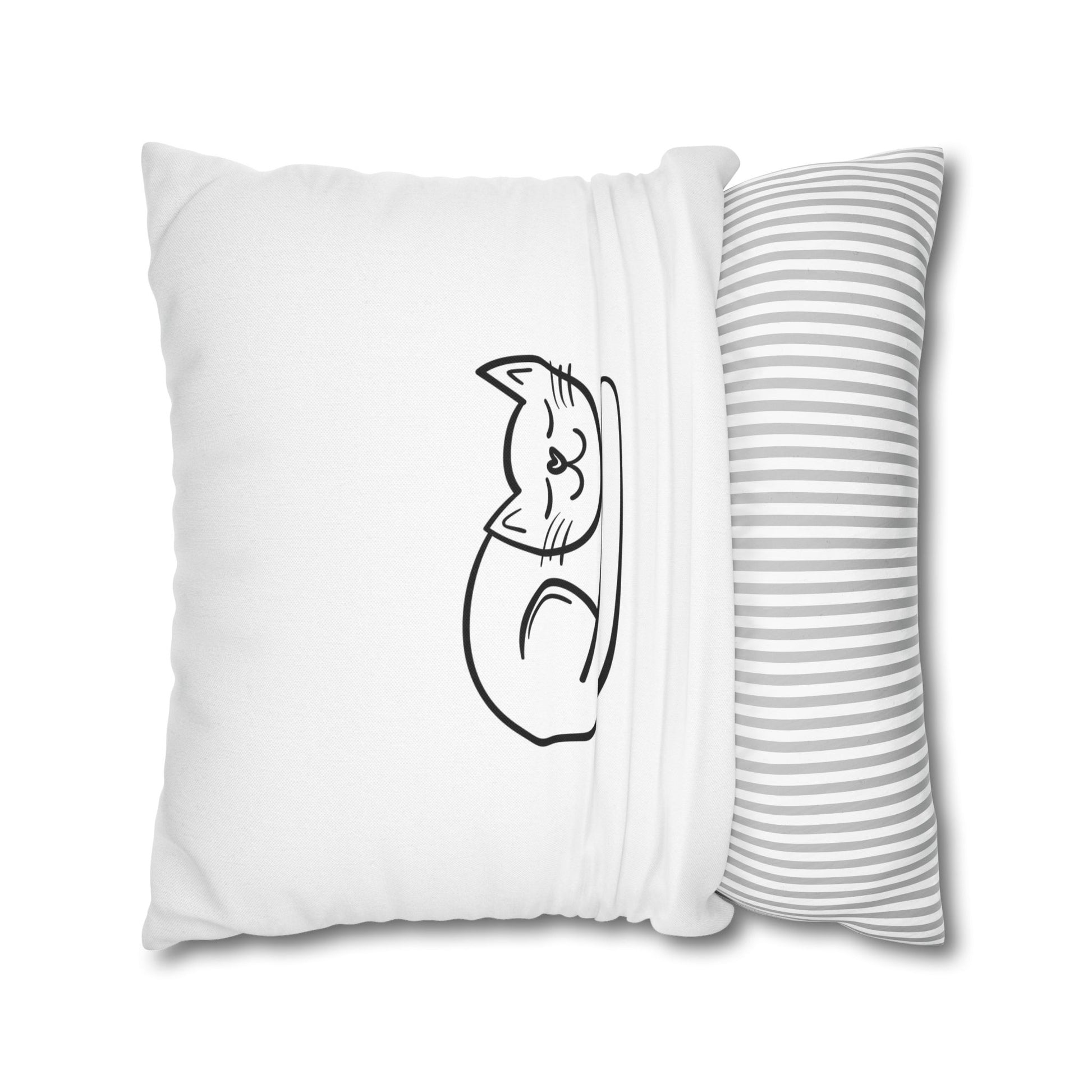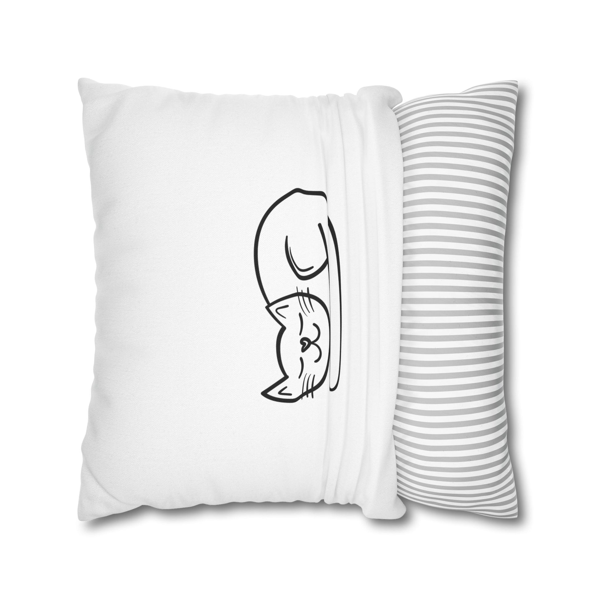 KATZE SÜß NIEDLICH SCHLAFEND • Deko Kissenbezug mit Reißverschluss Quadratisch Weiß