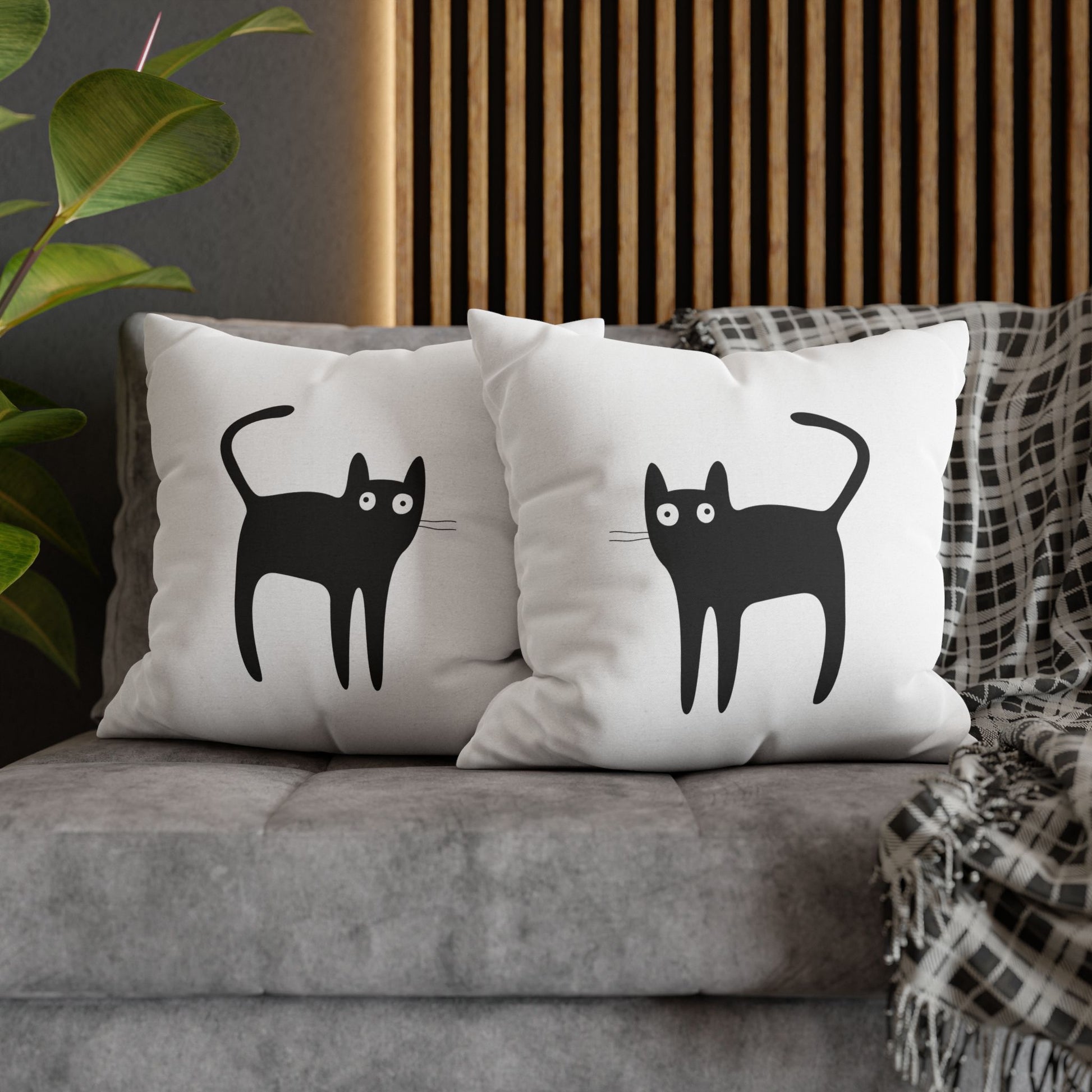 KATZEN ZEICHNUNG LUSTIG • Deko Kissenbezug mit Reißverschluss Quadratisch Weiß