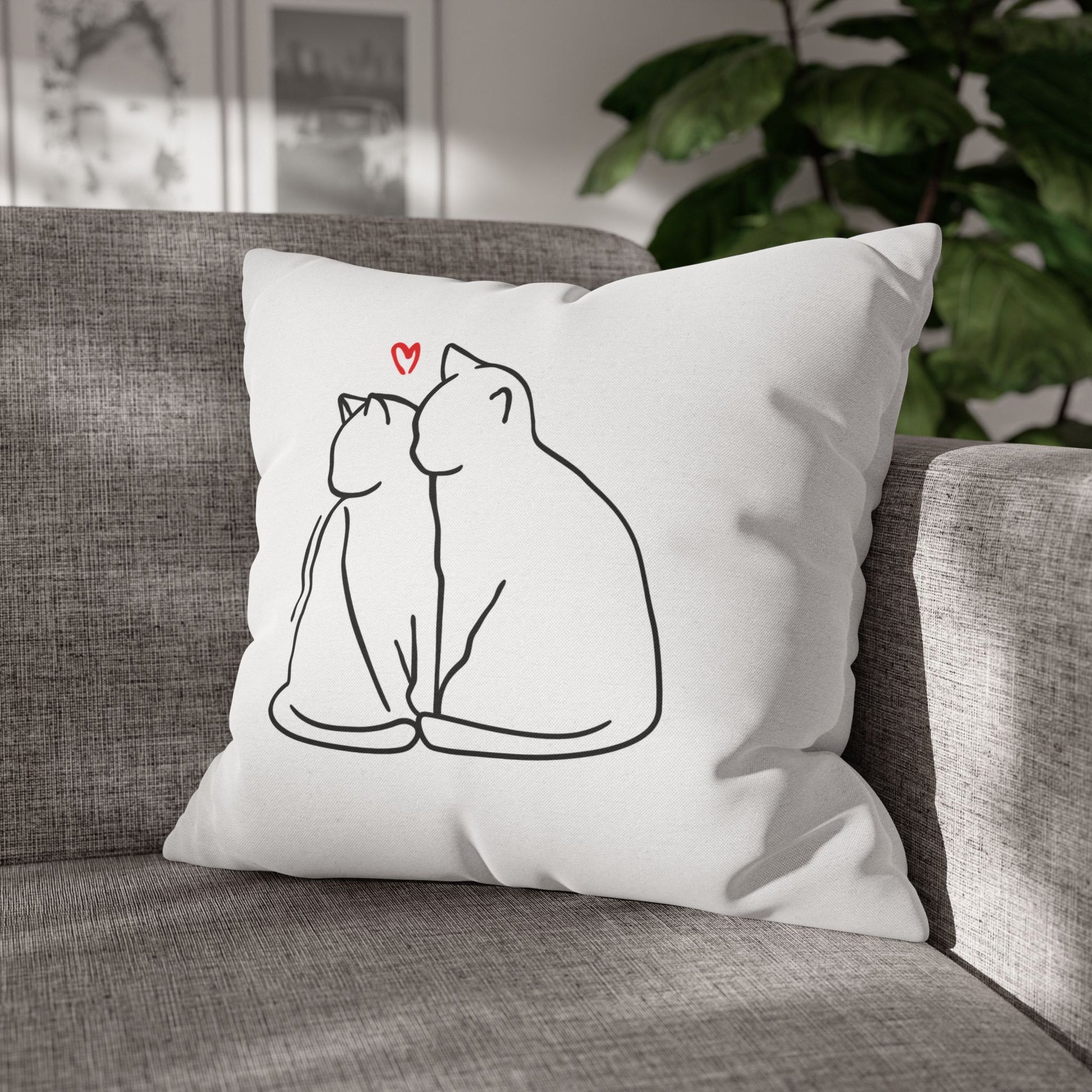 KATZEN LIEBE KÄTZCHEN LOVE • Deko Kissenbezug mit Reißverschluss Quadratisch Weiß
