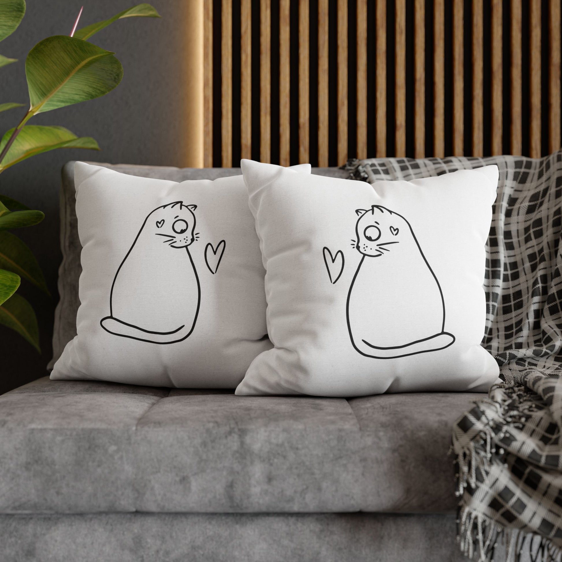 KATZE HERZ SÜß NIEDLICH • Deko Kissenbezug mit Reißverschluss Quadratisch Weiß