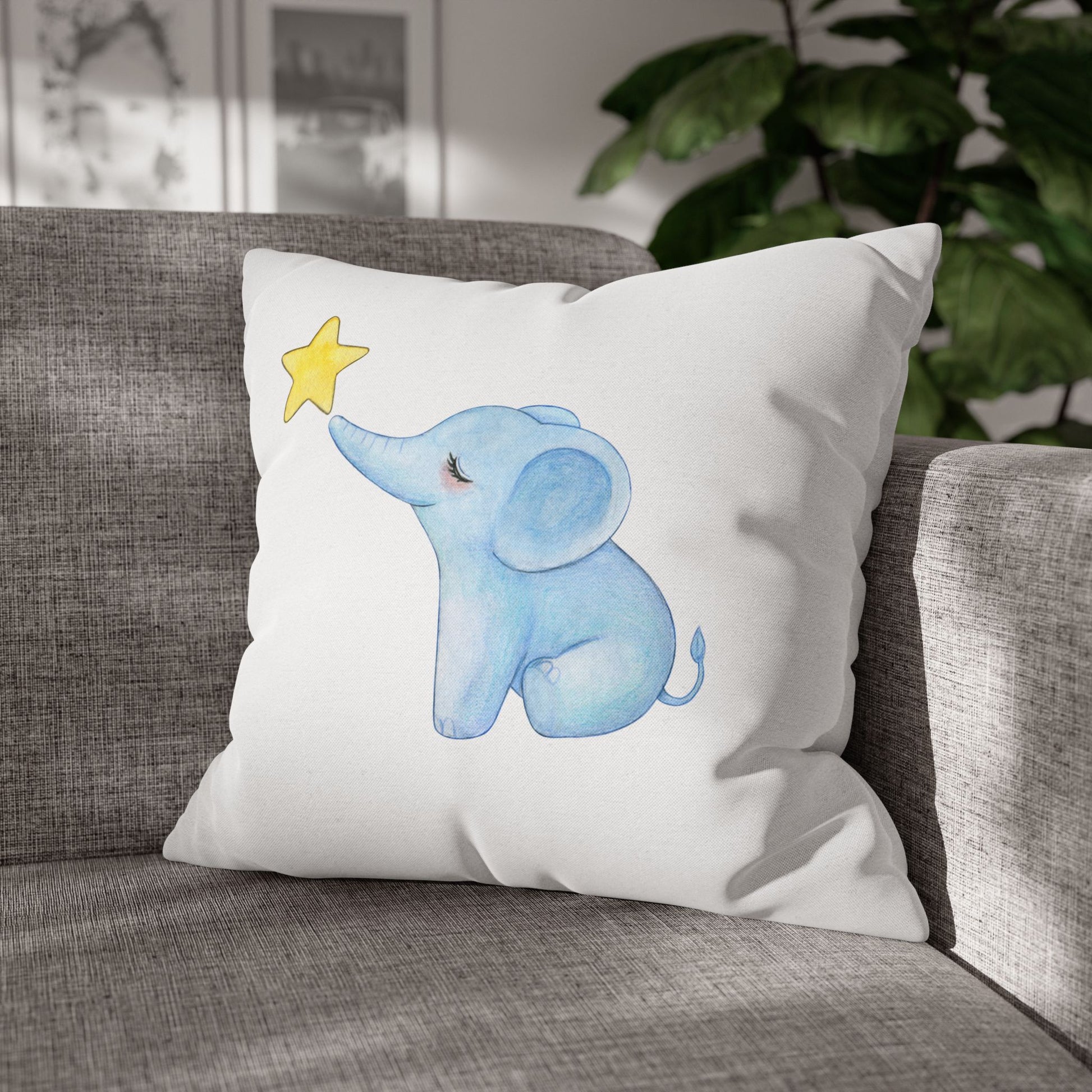 ELEFANT SÜß NIEDLICH MIT STERN • Deko Kissenbezug mit Reißverschluss Quadratisch Weiß