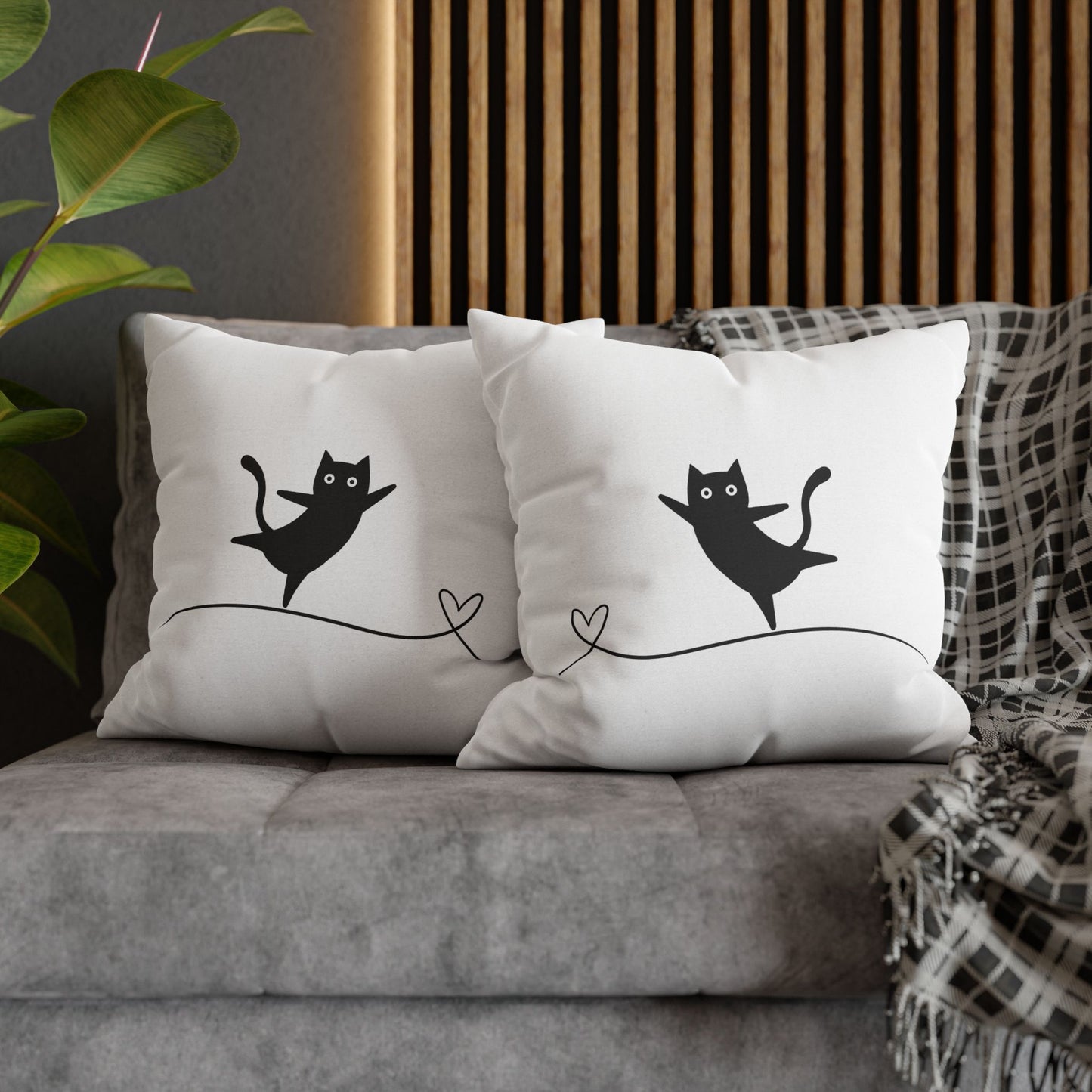 KATZE TANZT SÜß • Deko Kissenbezug mit Reißverschluss Quadratisch Weiß
