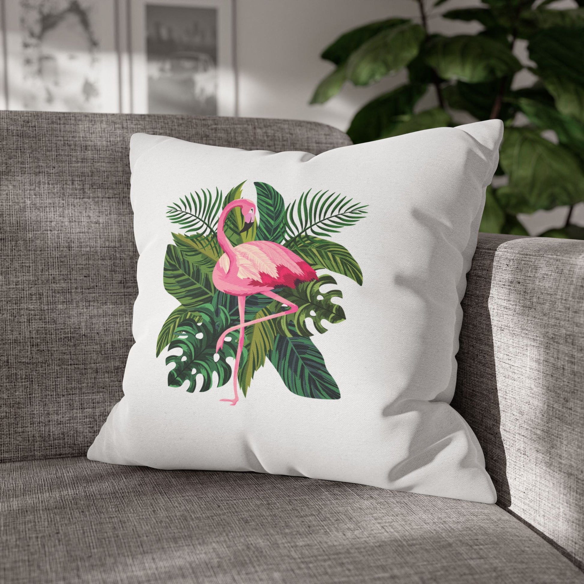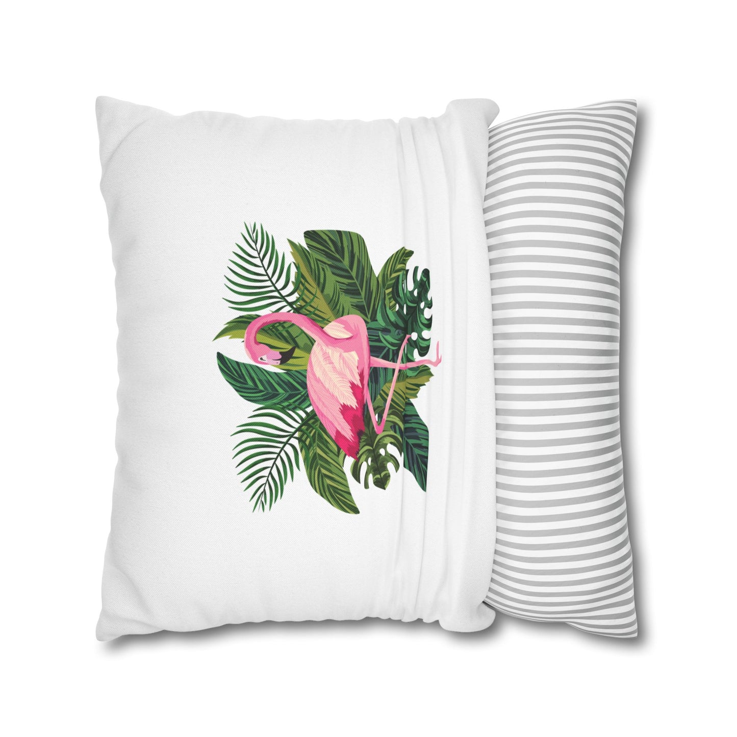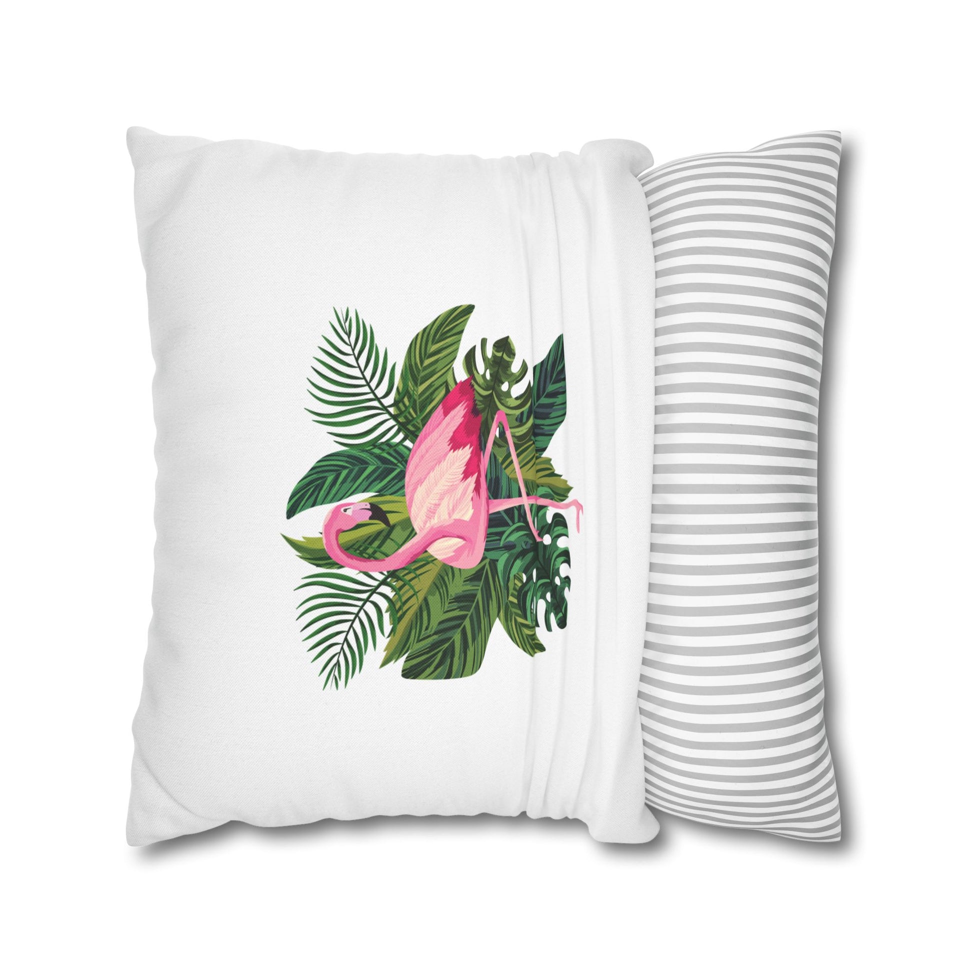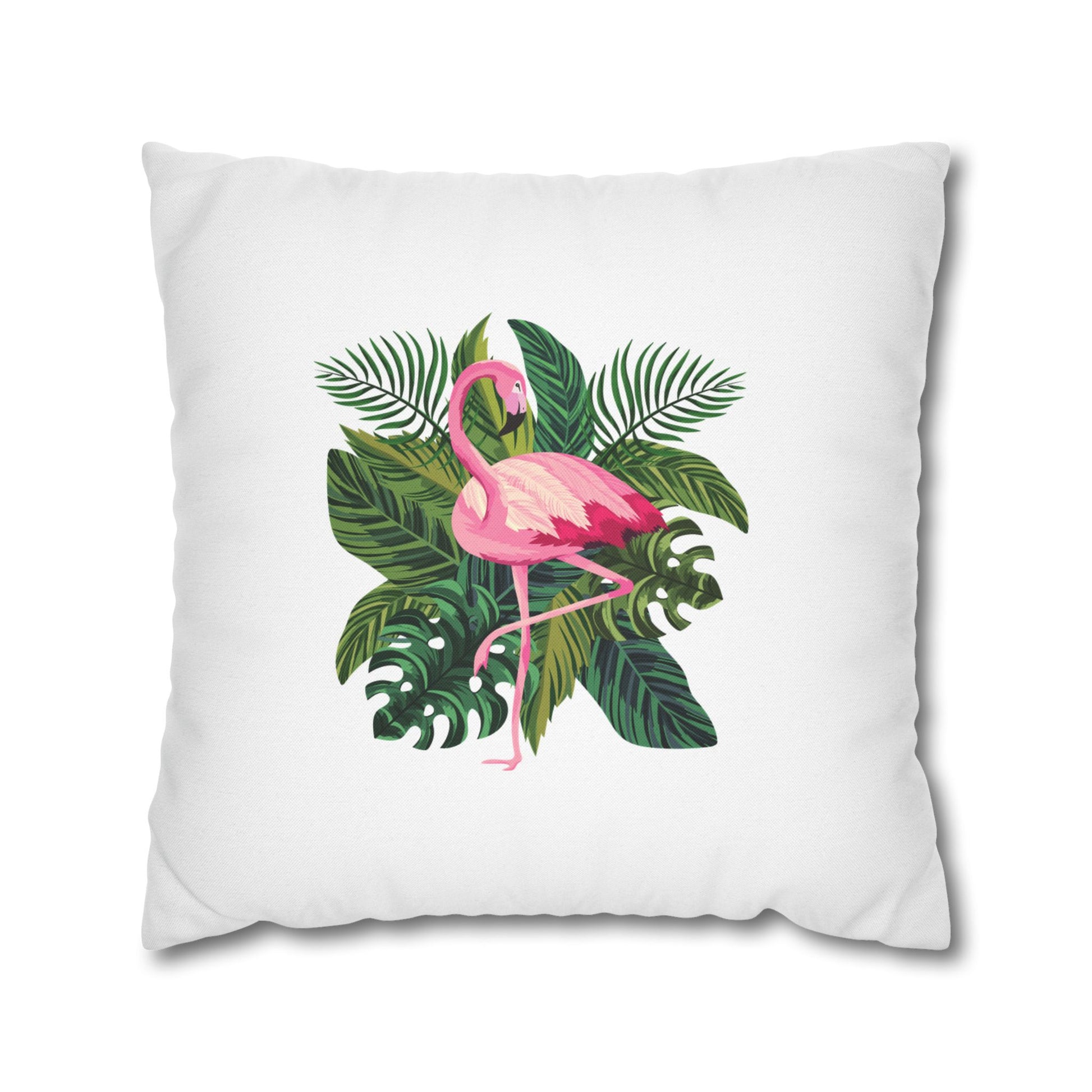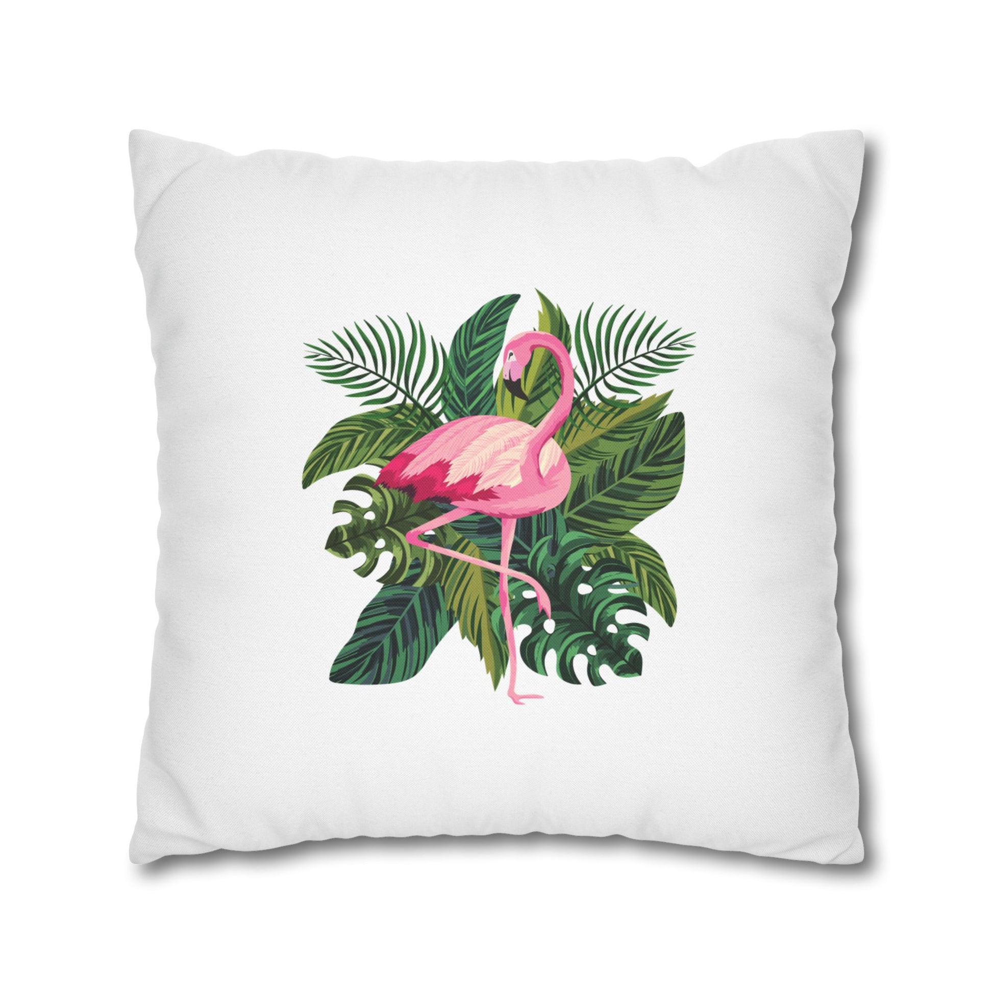 FLAMINGO PINK GRÜNE BLÄTTER • Deko Kissenbezug mit Reißverschluss Quadratisch Weiß