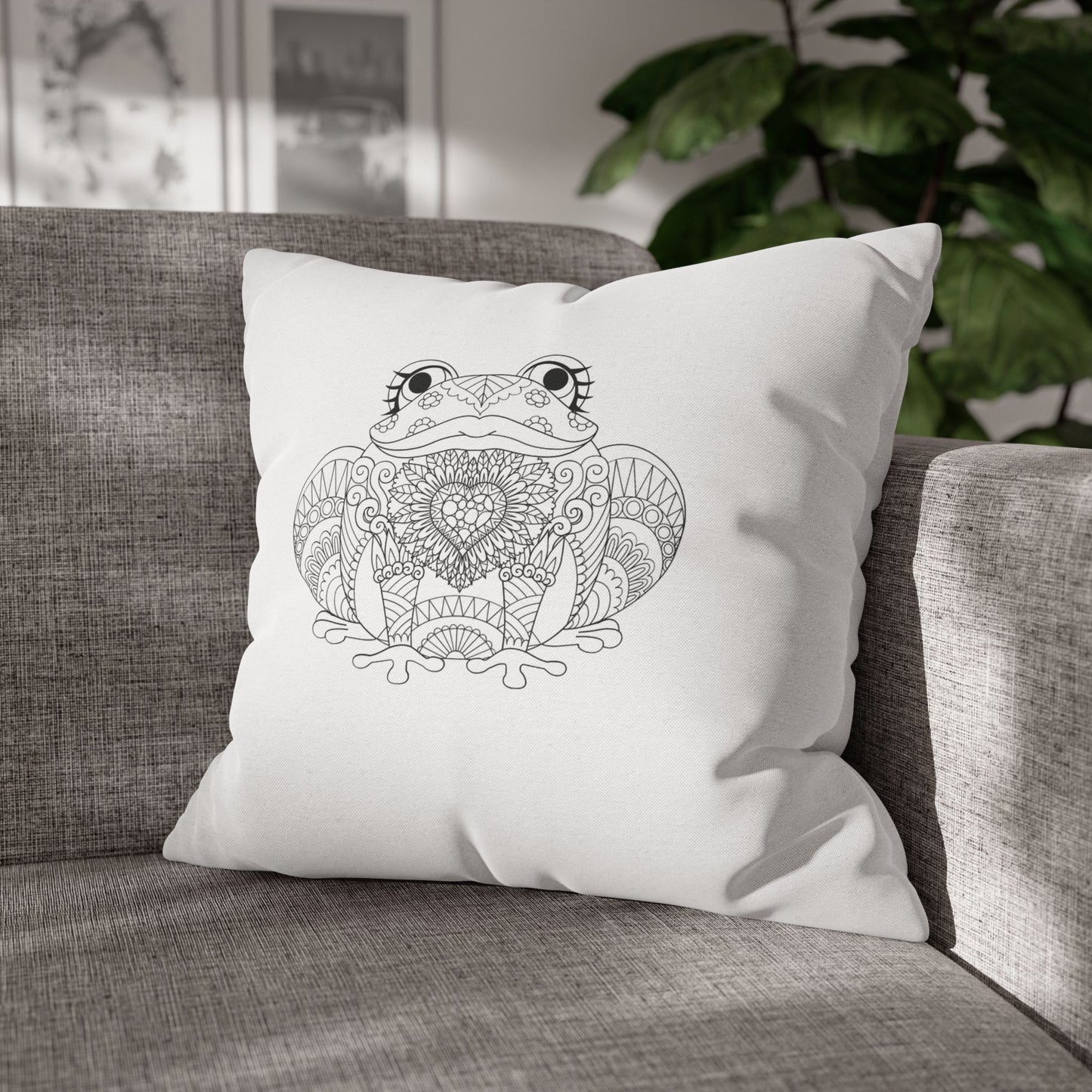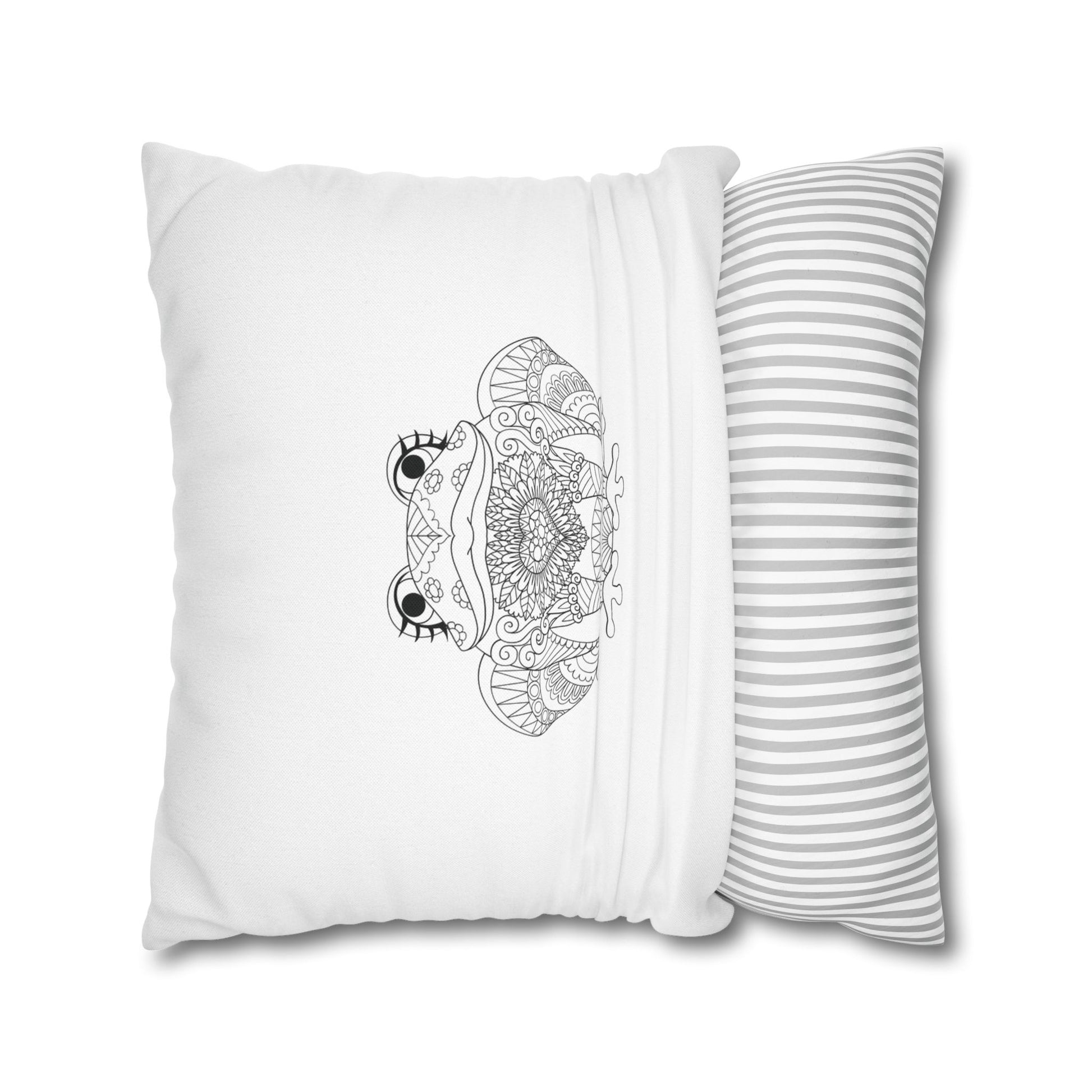 FROSCH HERZ MANDALA SÜß • Deko Kissenbezug mit Reißverschluss Quadratisch Weiß
