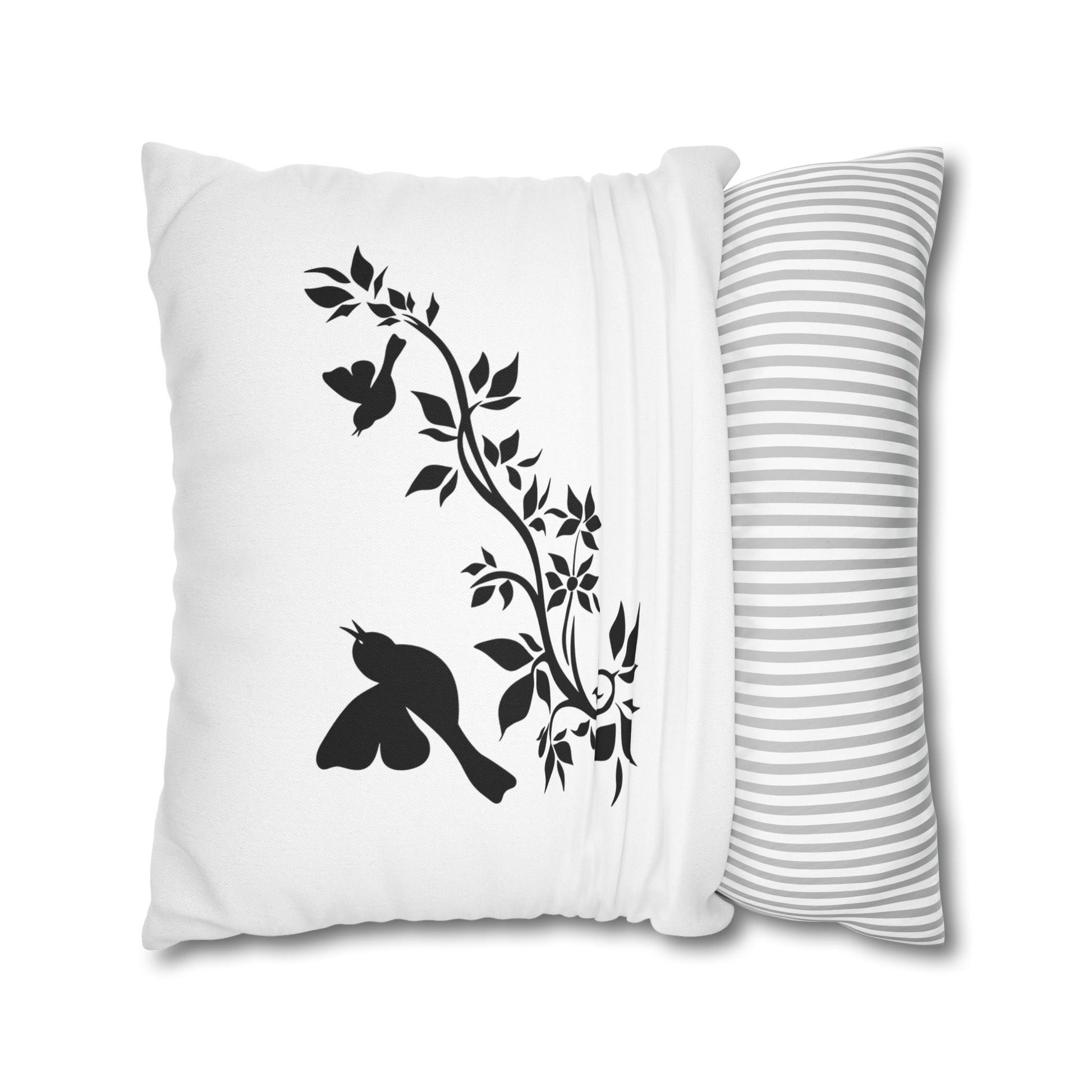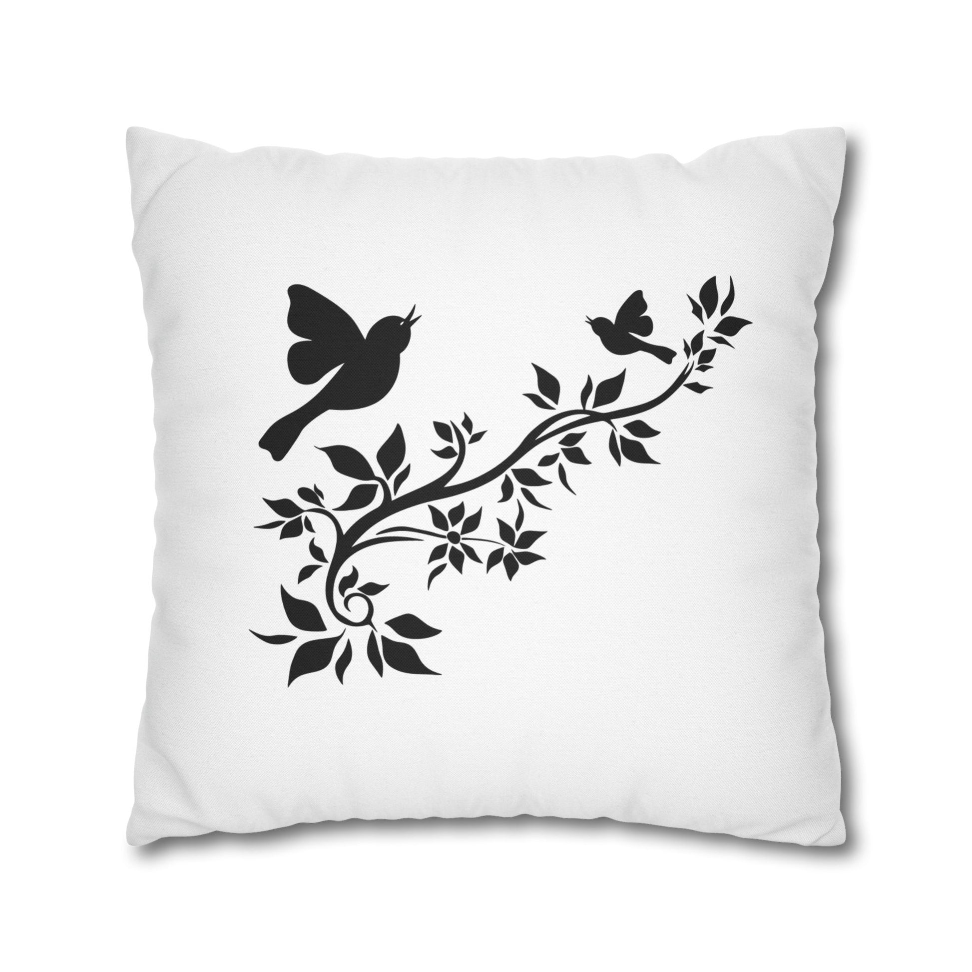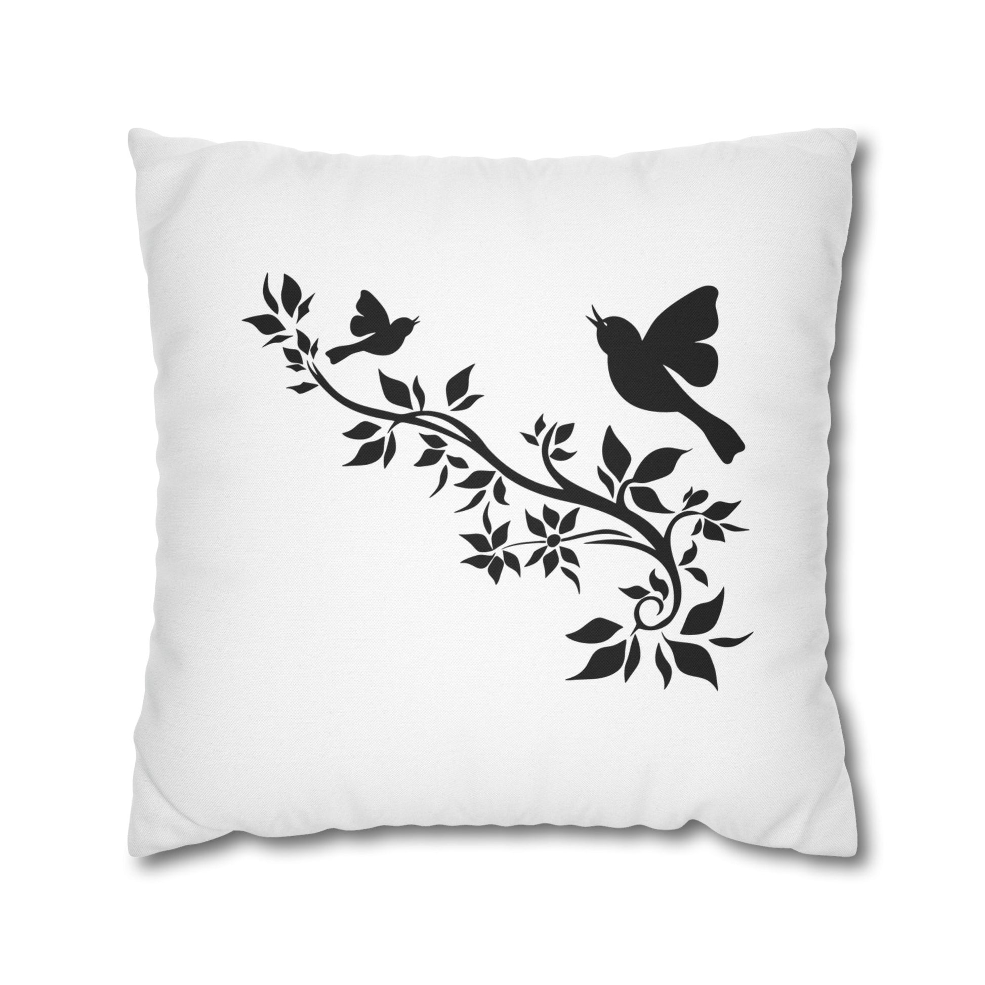VÖGEL BAUM AST BLÄTTER • Deko Kissenbezug mit Reißverschluss Quadratisch Weiß