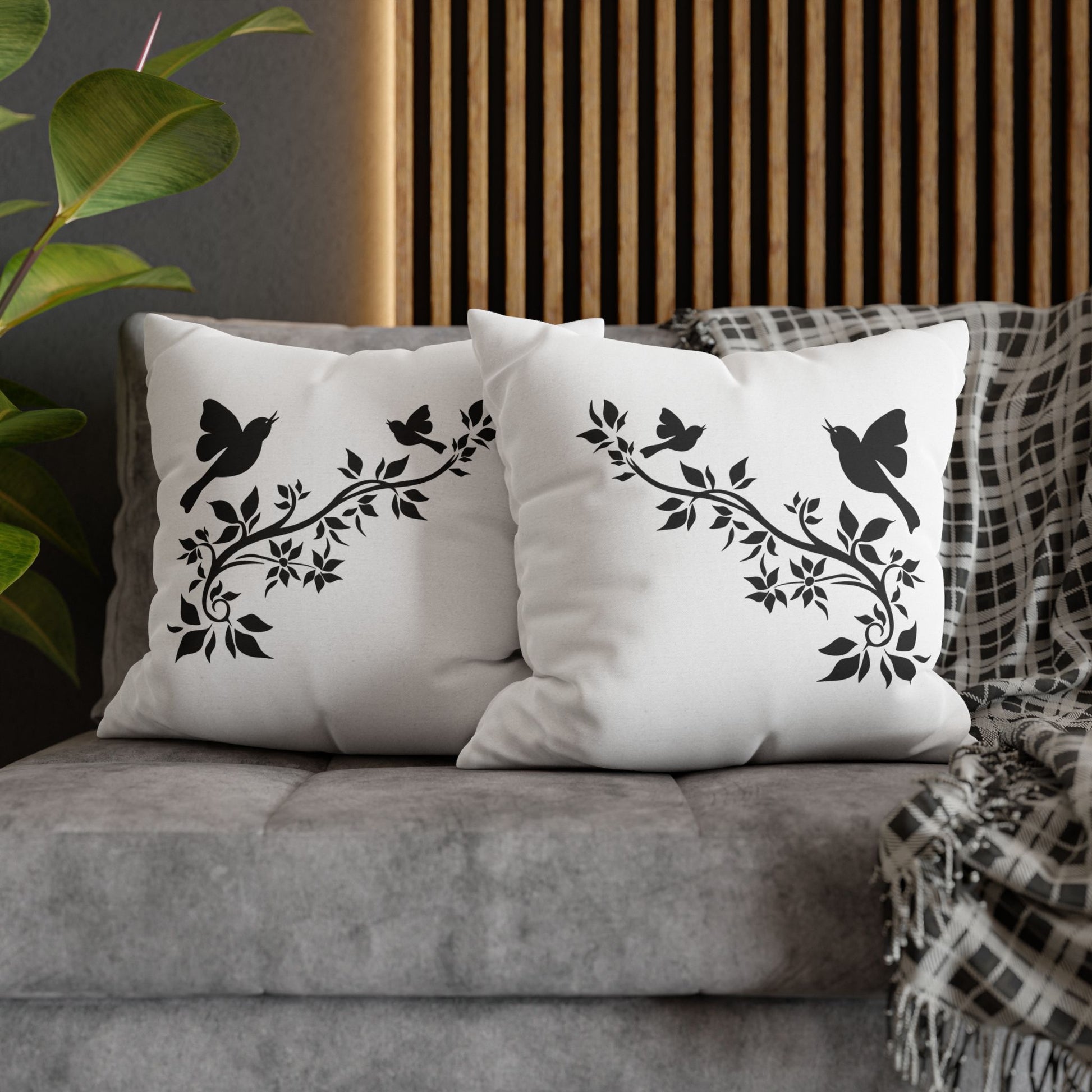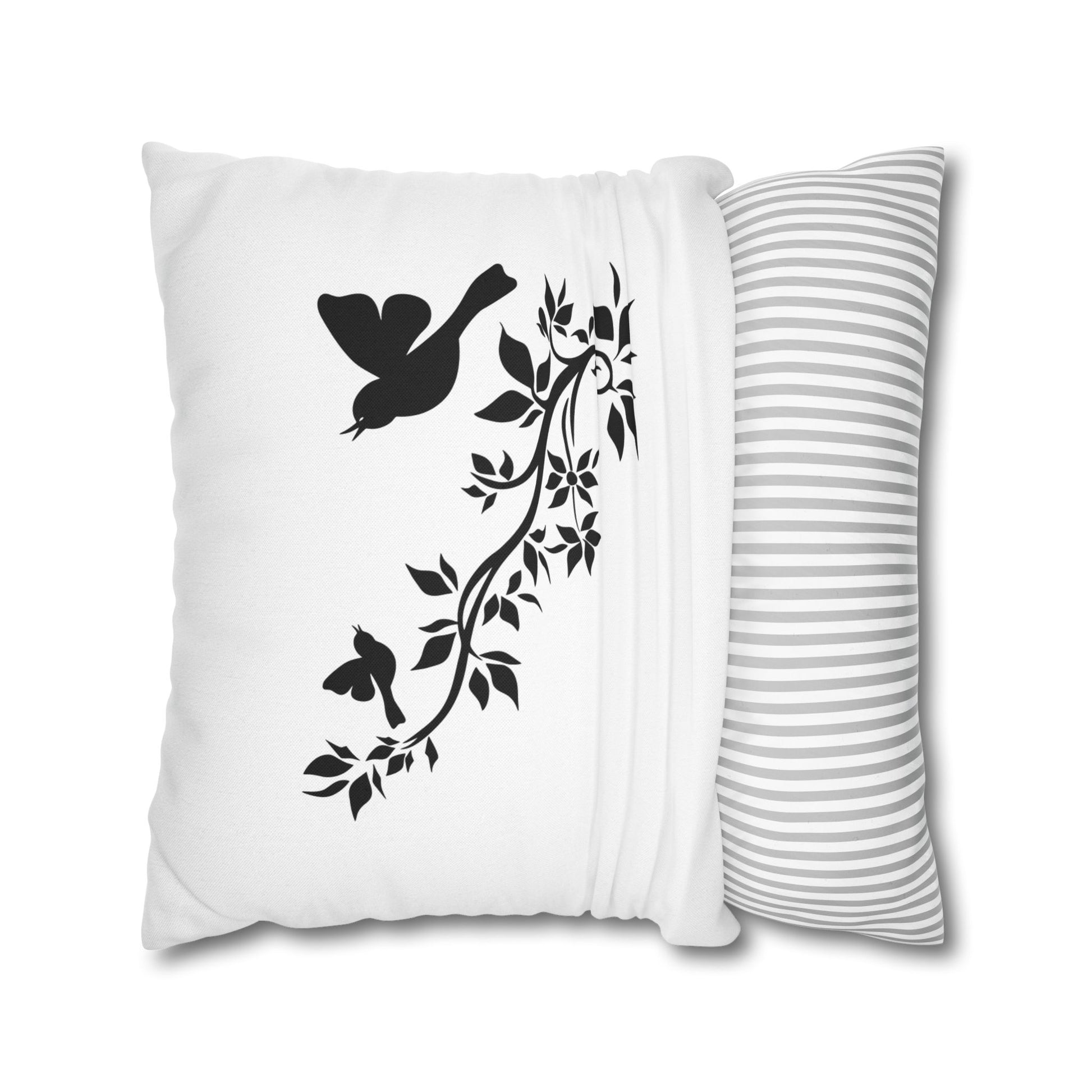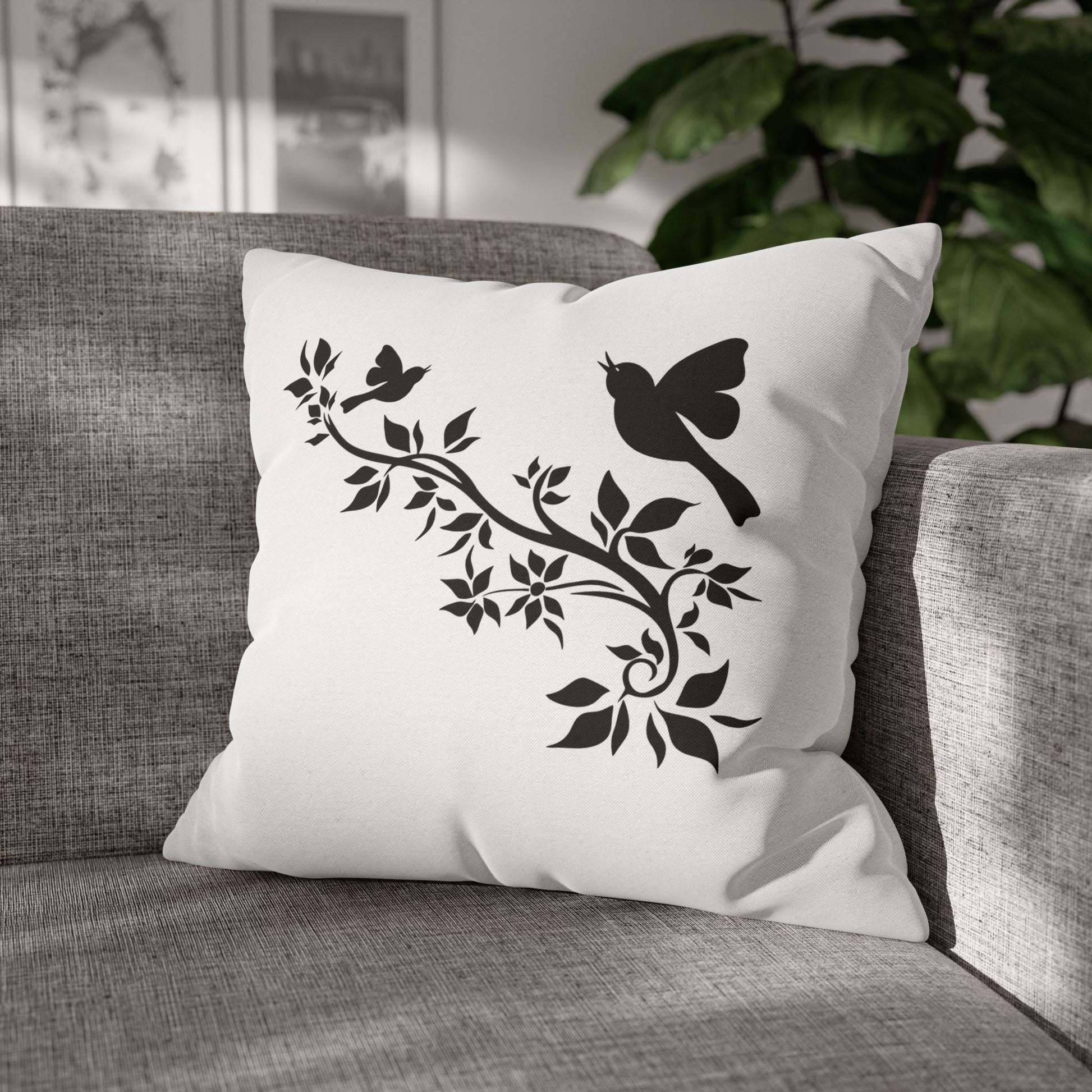 VÖGEL BAUM AST BLÄTTER • Deko Kissenbezug mit Reißverschluss Quadratisch Weiß