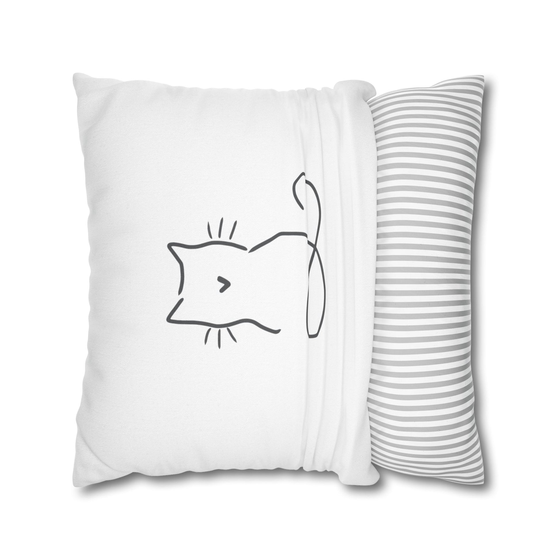 KATZE UNENDLICHKEITSZEICHEN Minimalistisch - Eine-Linie-Zeichnung • Deko Kissenbezug Weiß