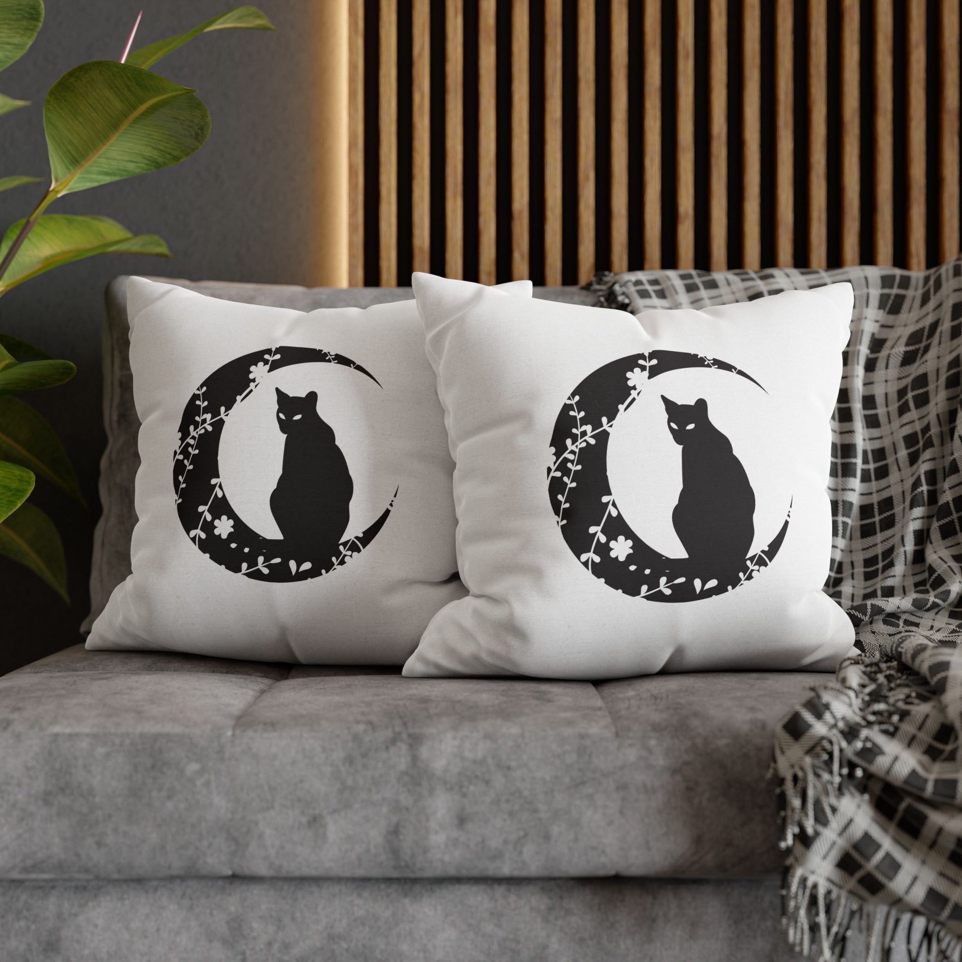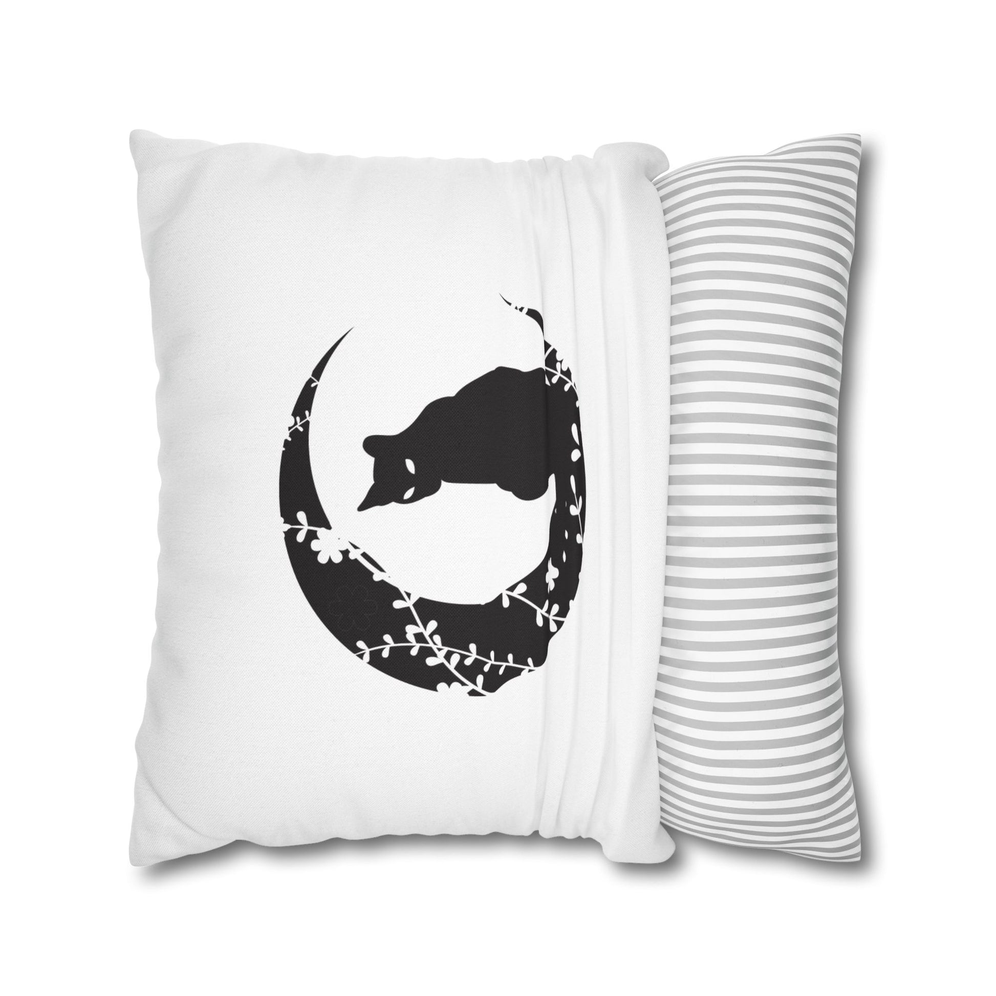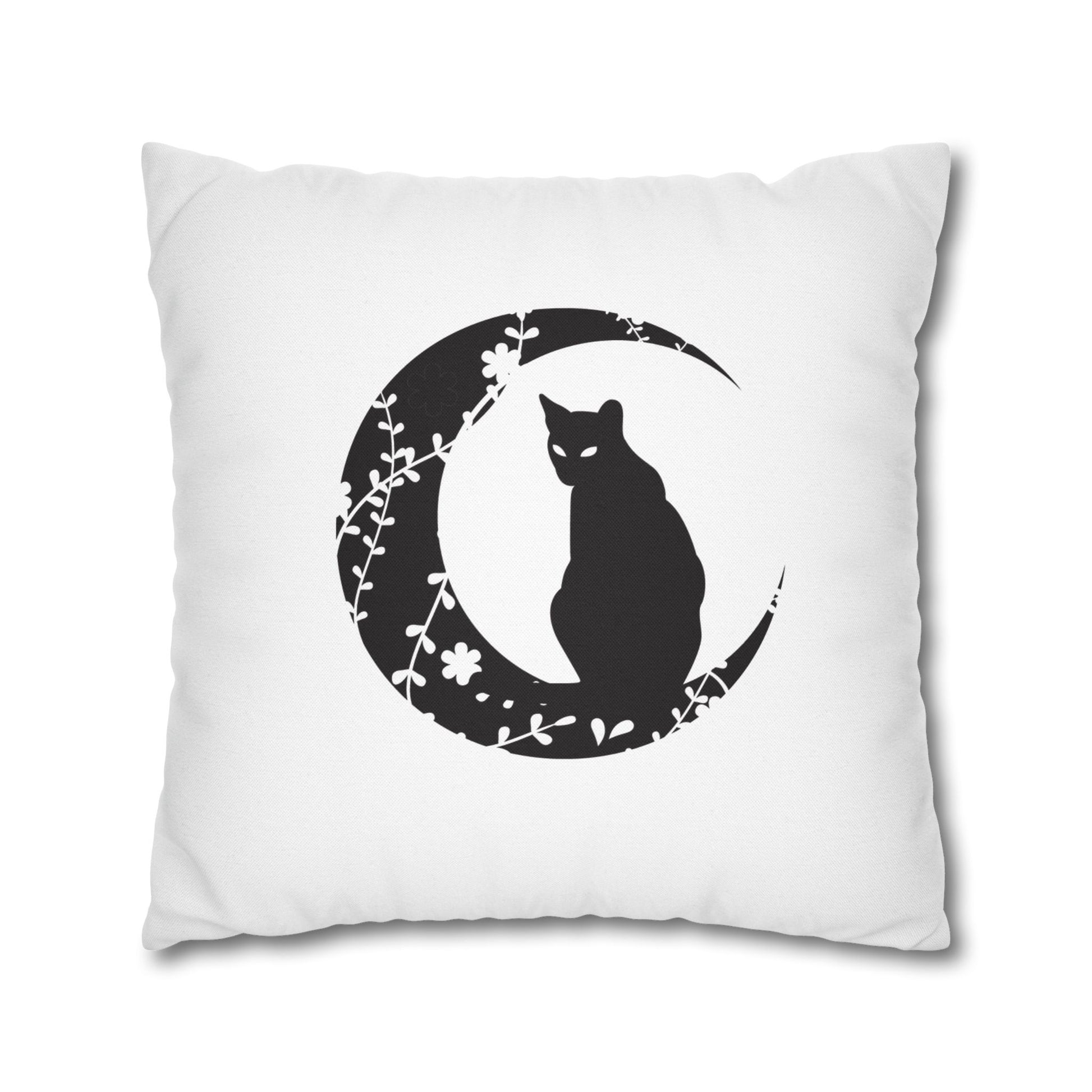 KATZE IM MOND SPIRITUELL • Deko Kissenbezug mit Reißverschluss Quadratisch Weiß