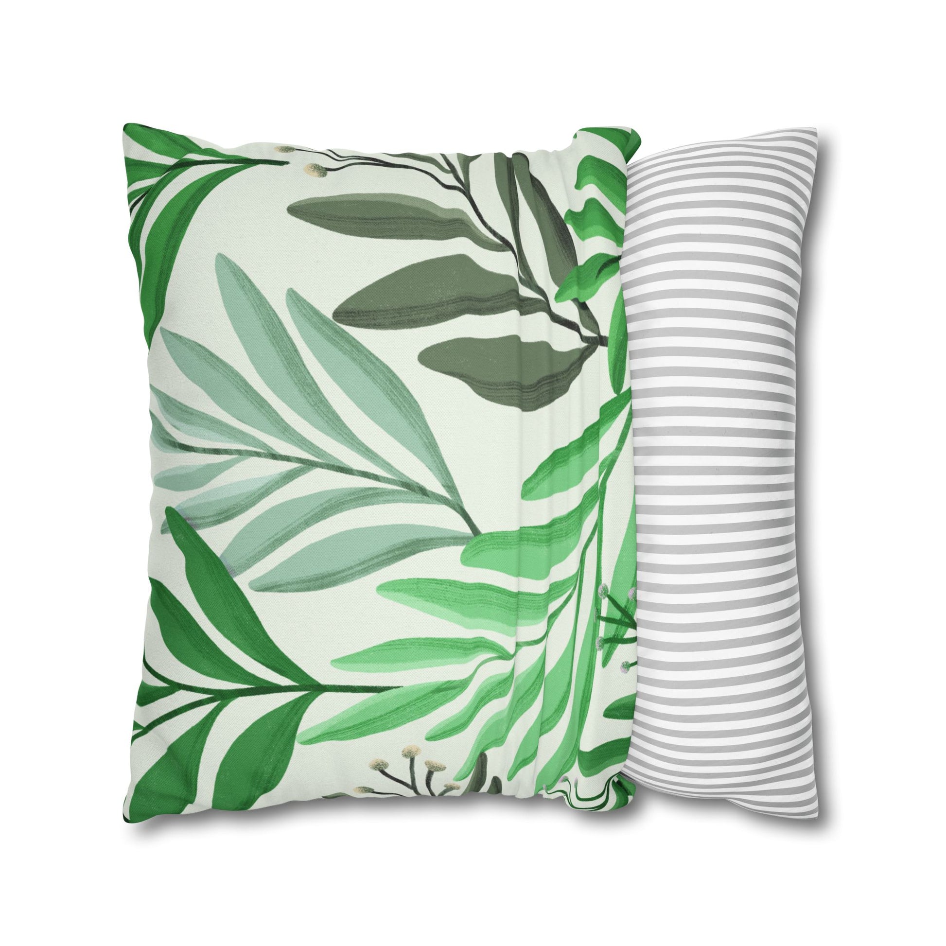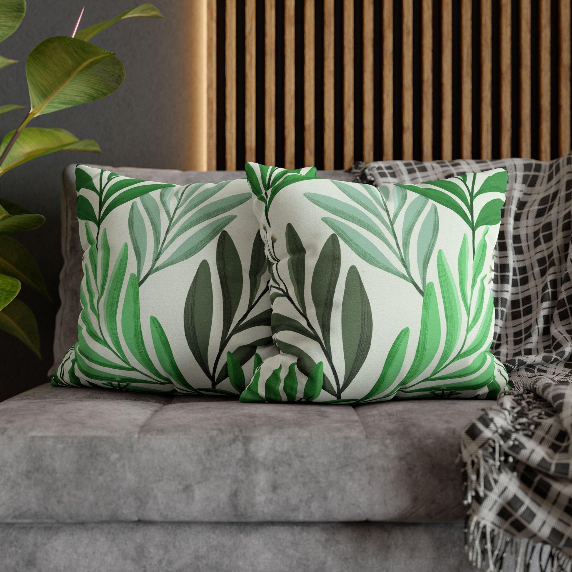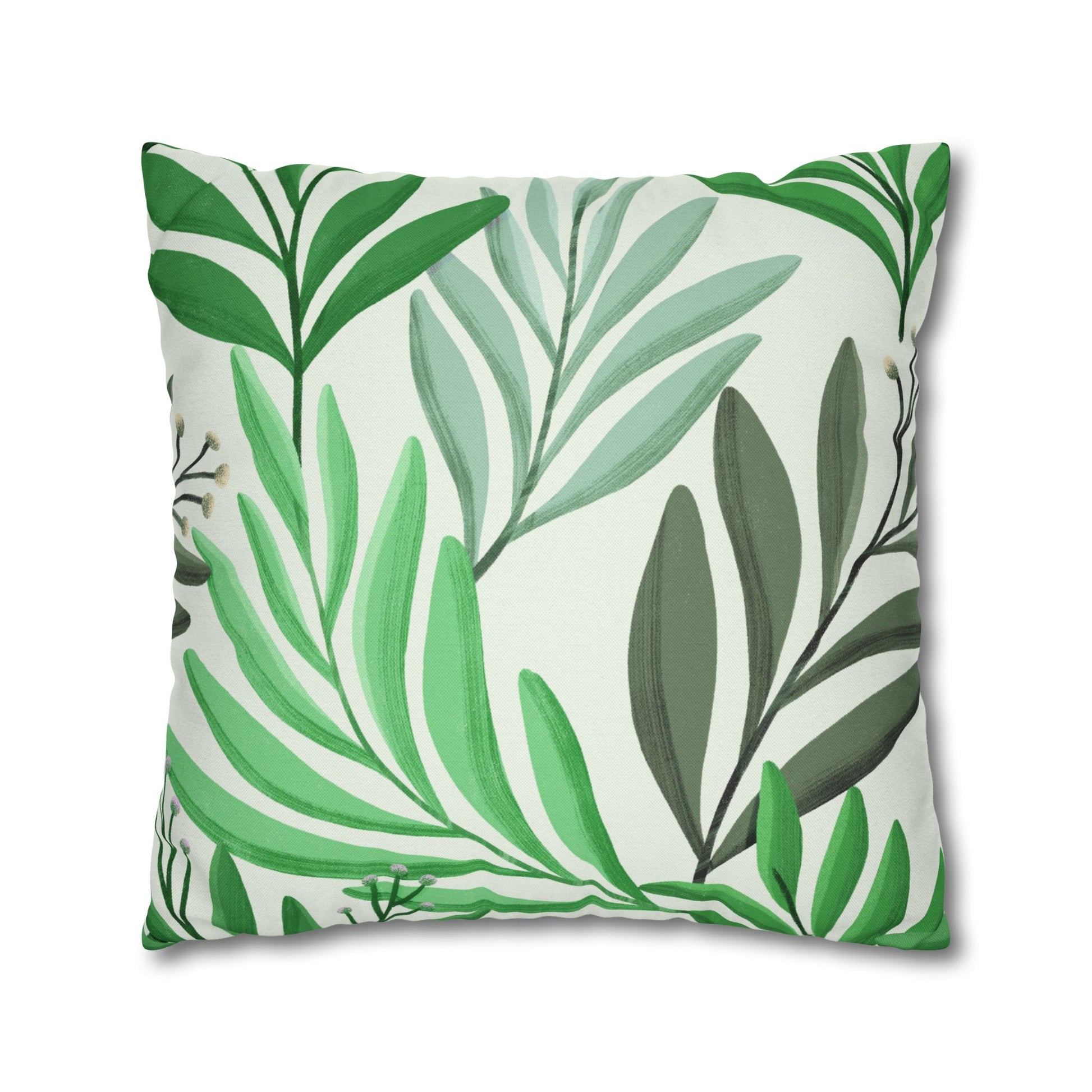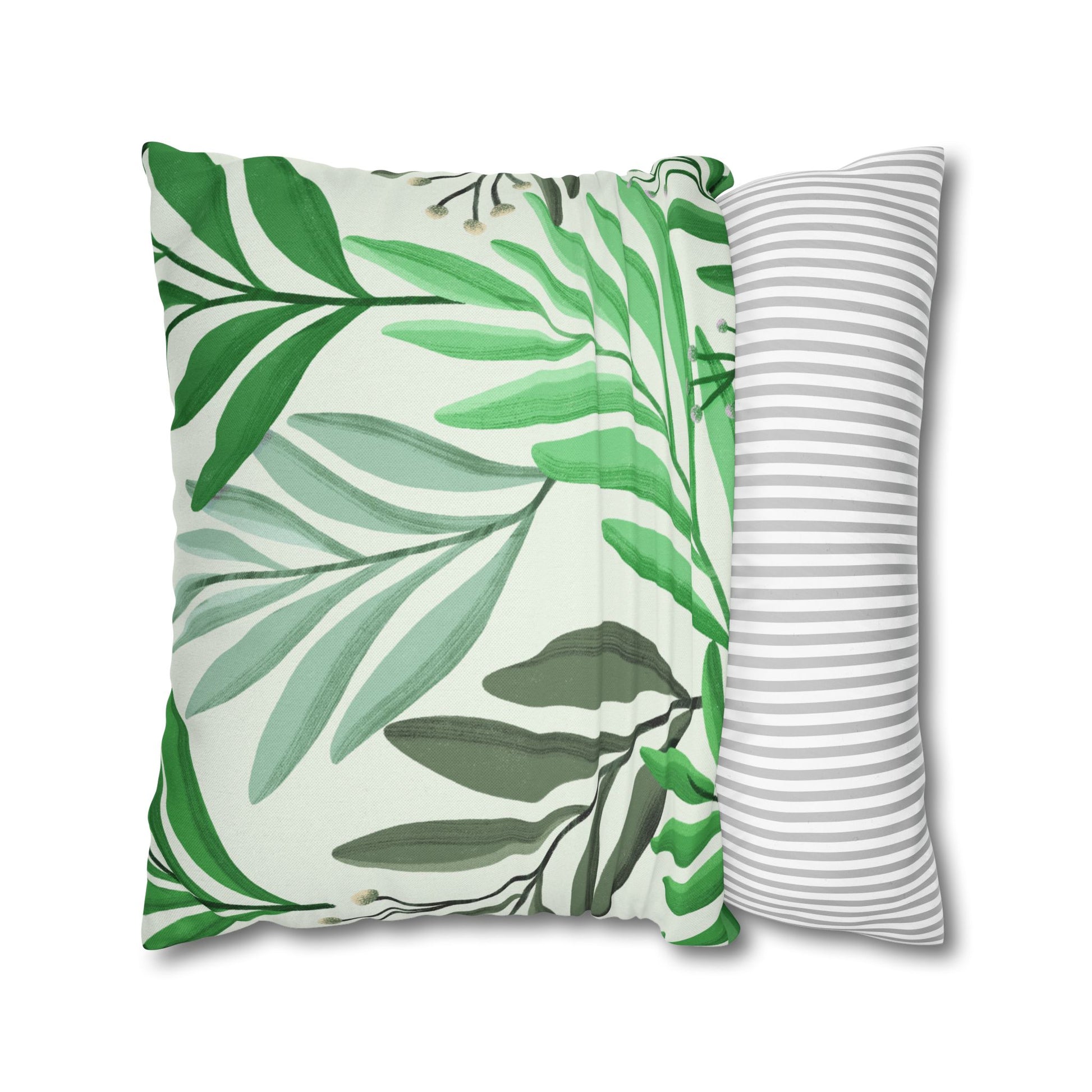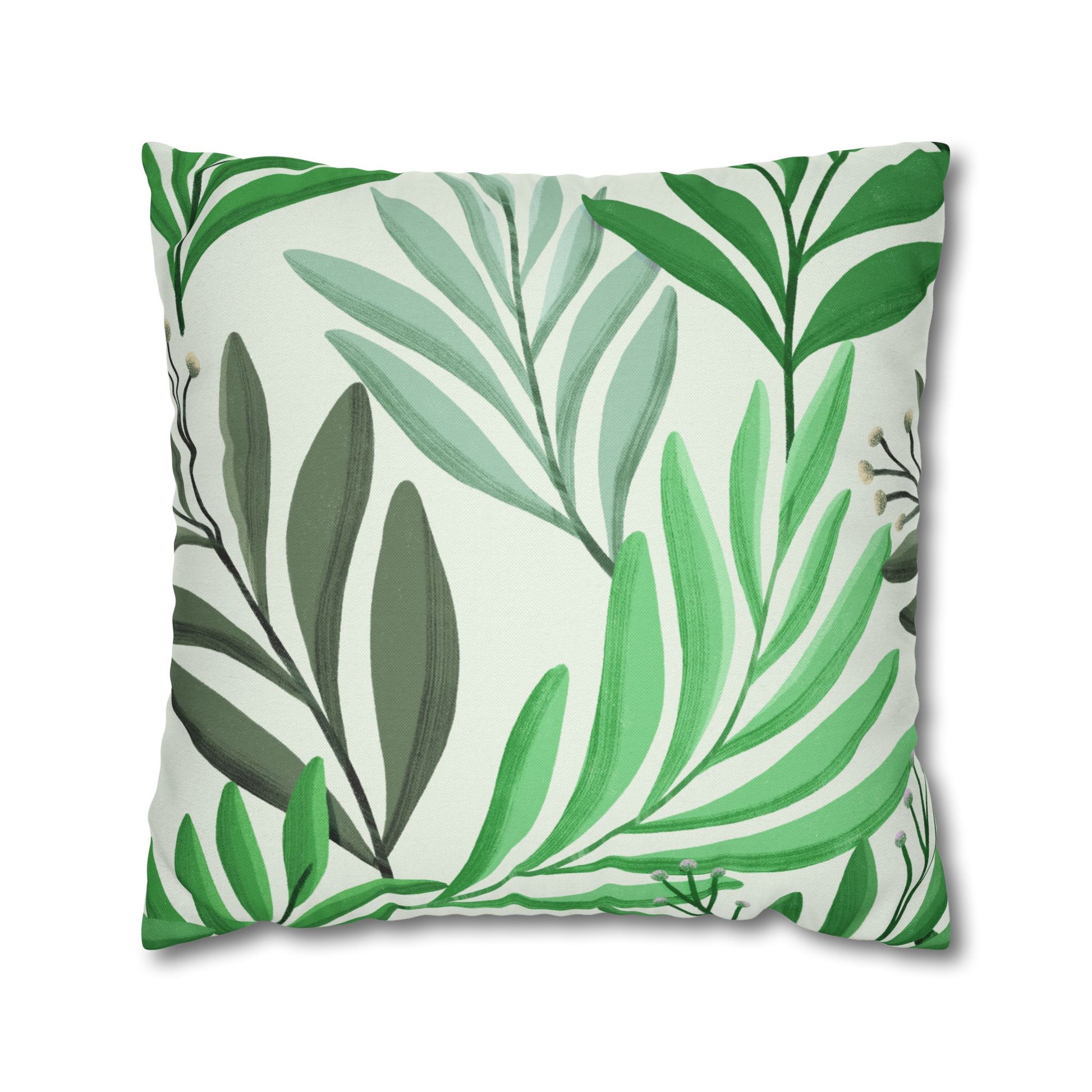 GRÜNE BLÄTTER FLORALE DEKO • Kissenbezug mit Reißverschluss Quadratisch Grün Weiß