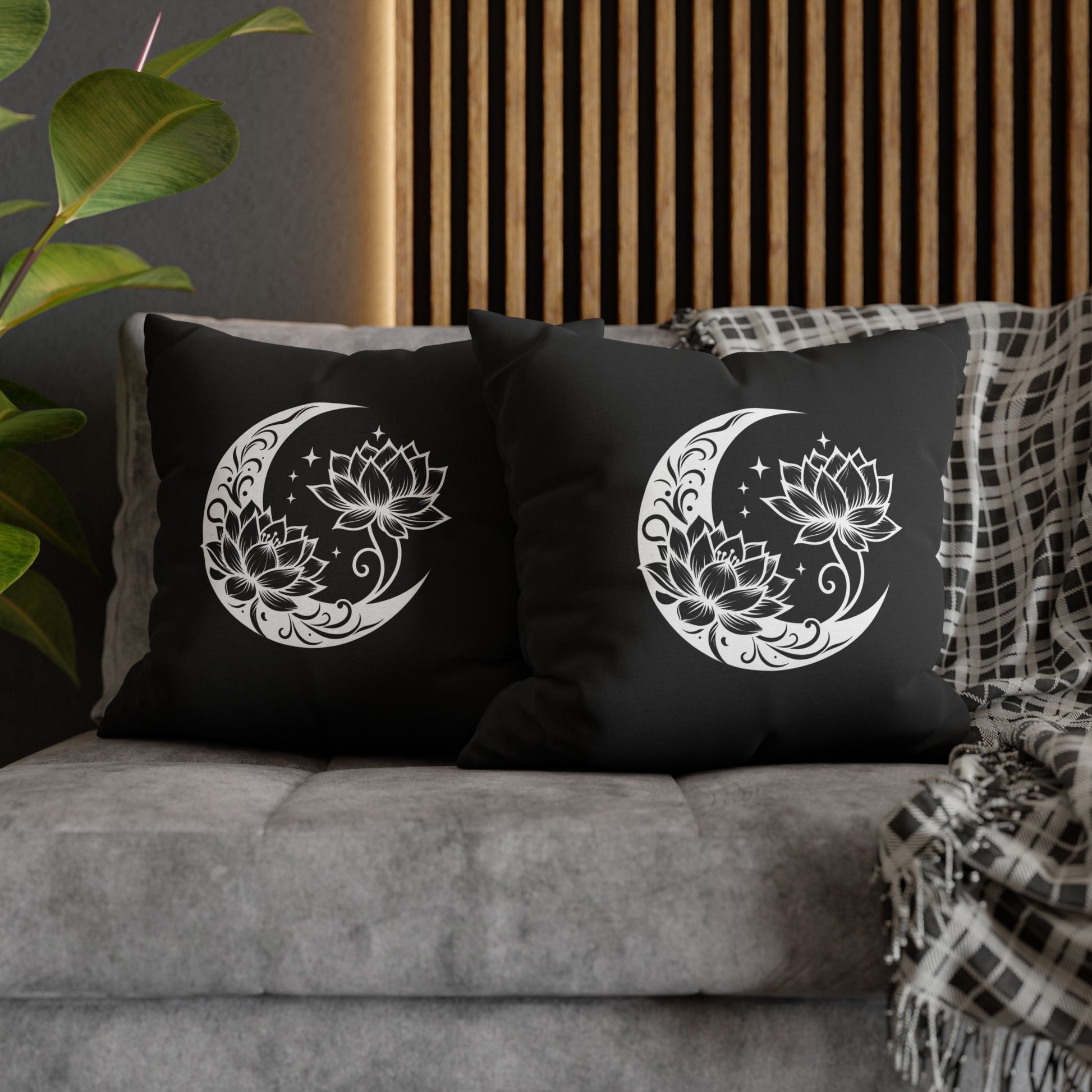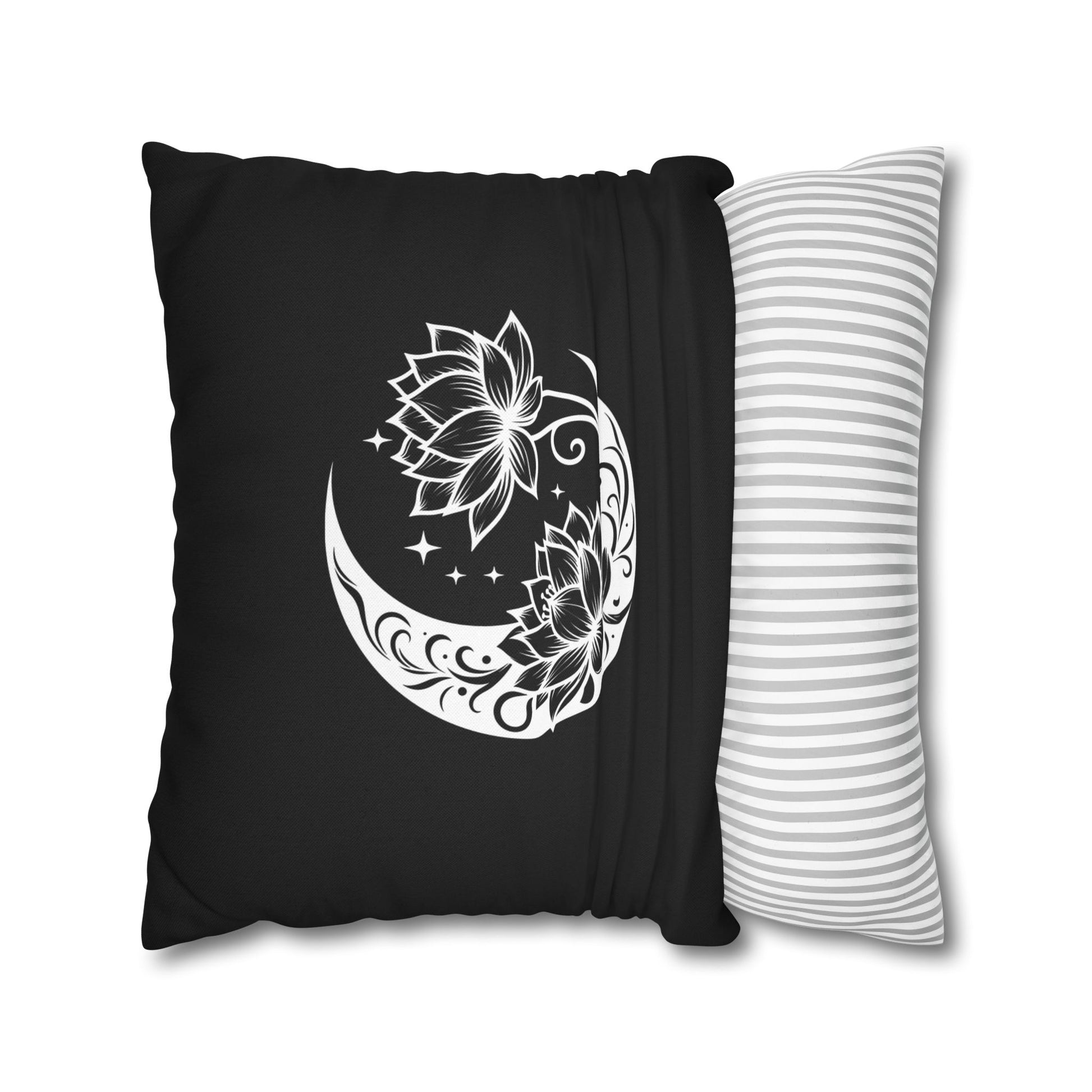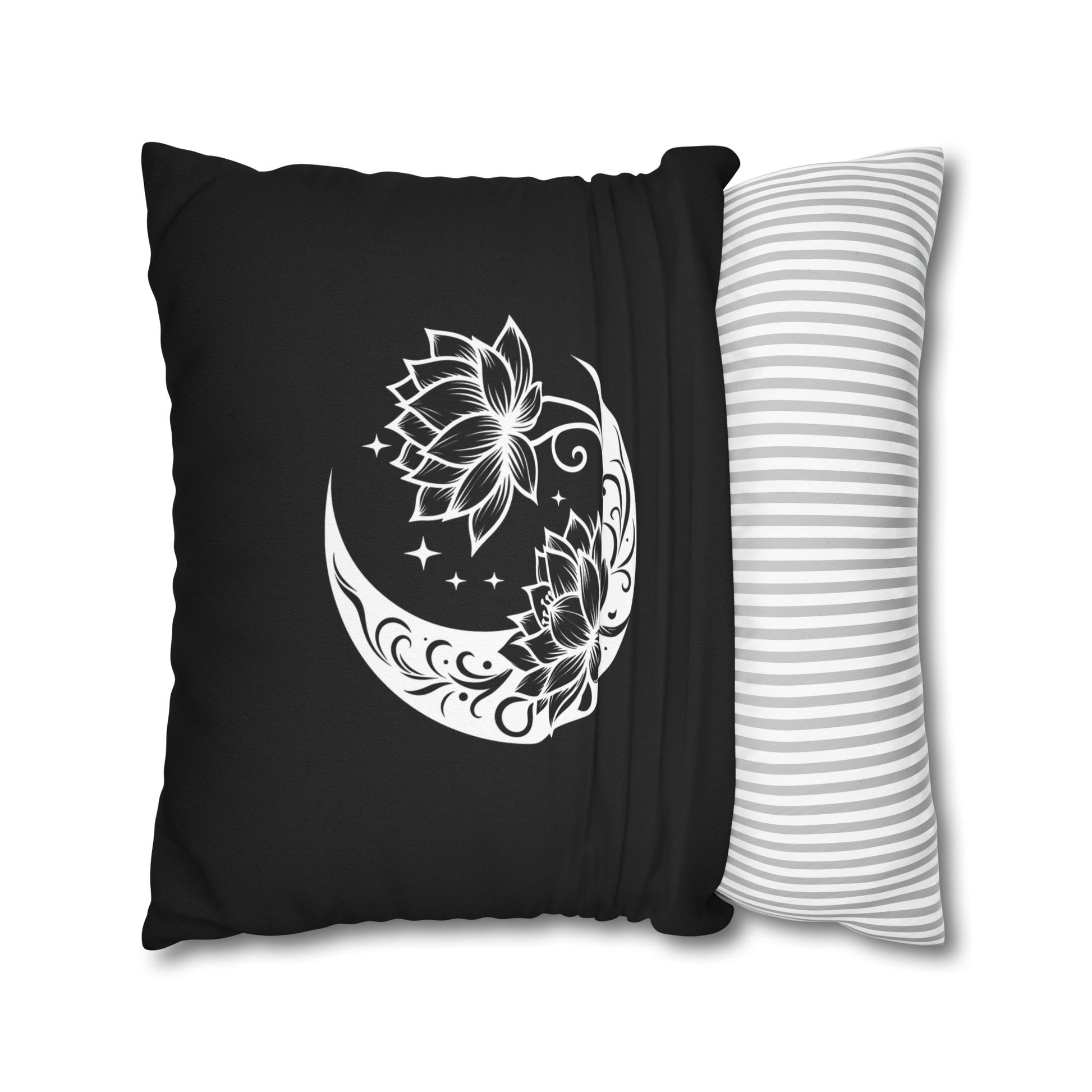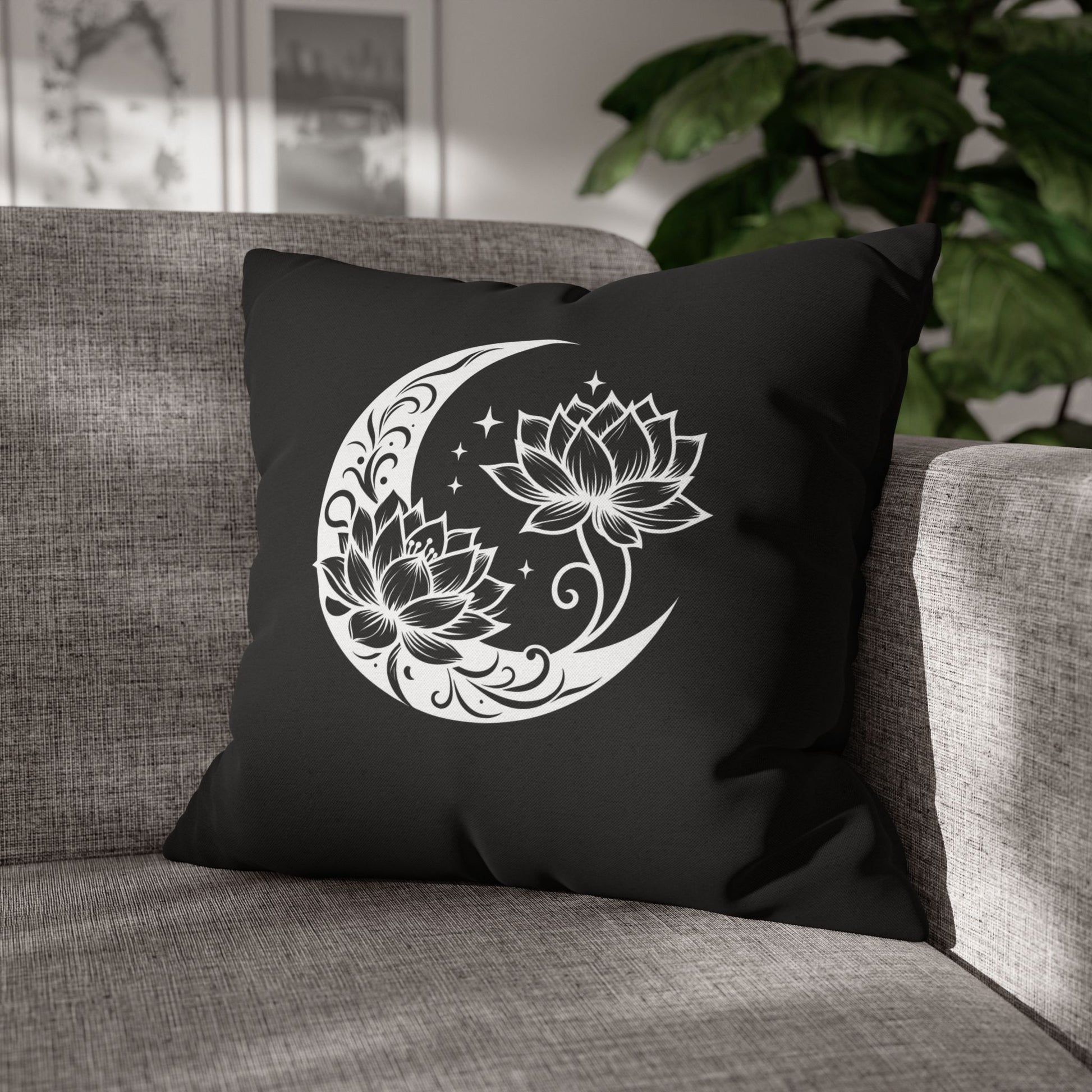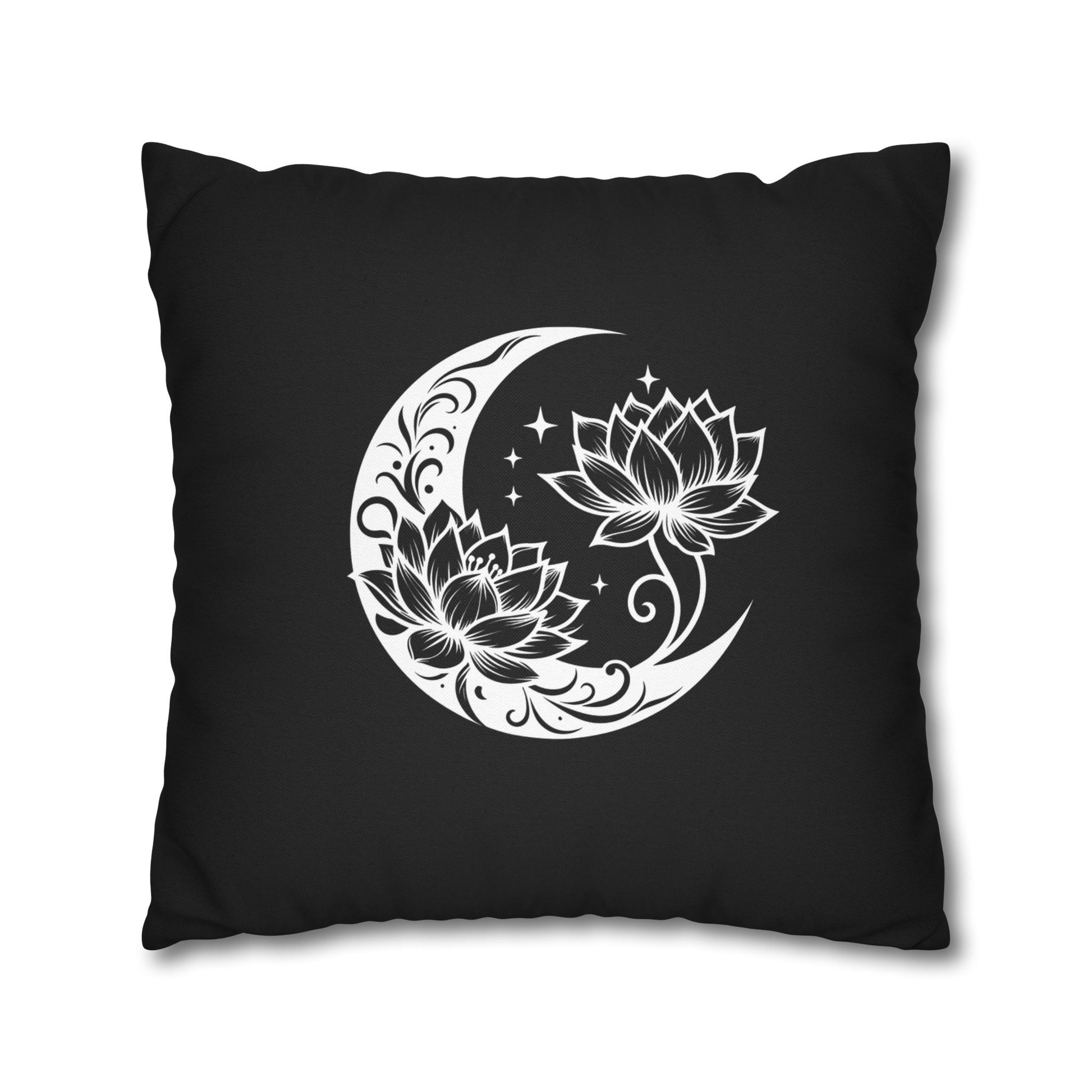 BLUMEN IM MOND - LOTUSBLÜTEN • Deko Kissenbezug mit Reißverschluss Quadratisch Schwarz
