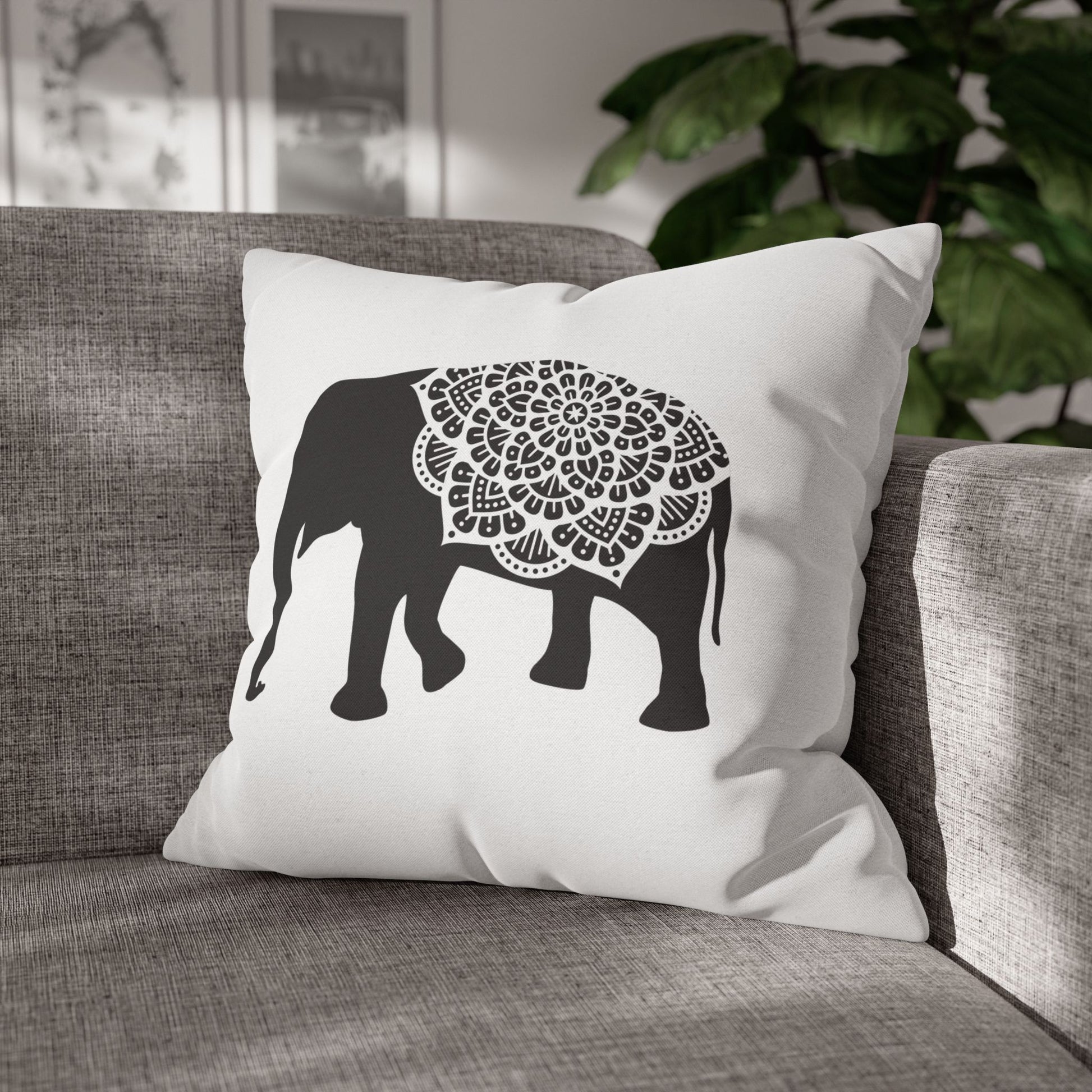 ELEFANT MANDALA • Deko Kissenbezug mit Reißverschluss Quadratisch Weiß