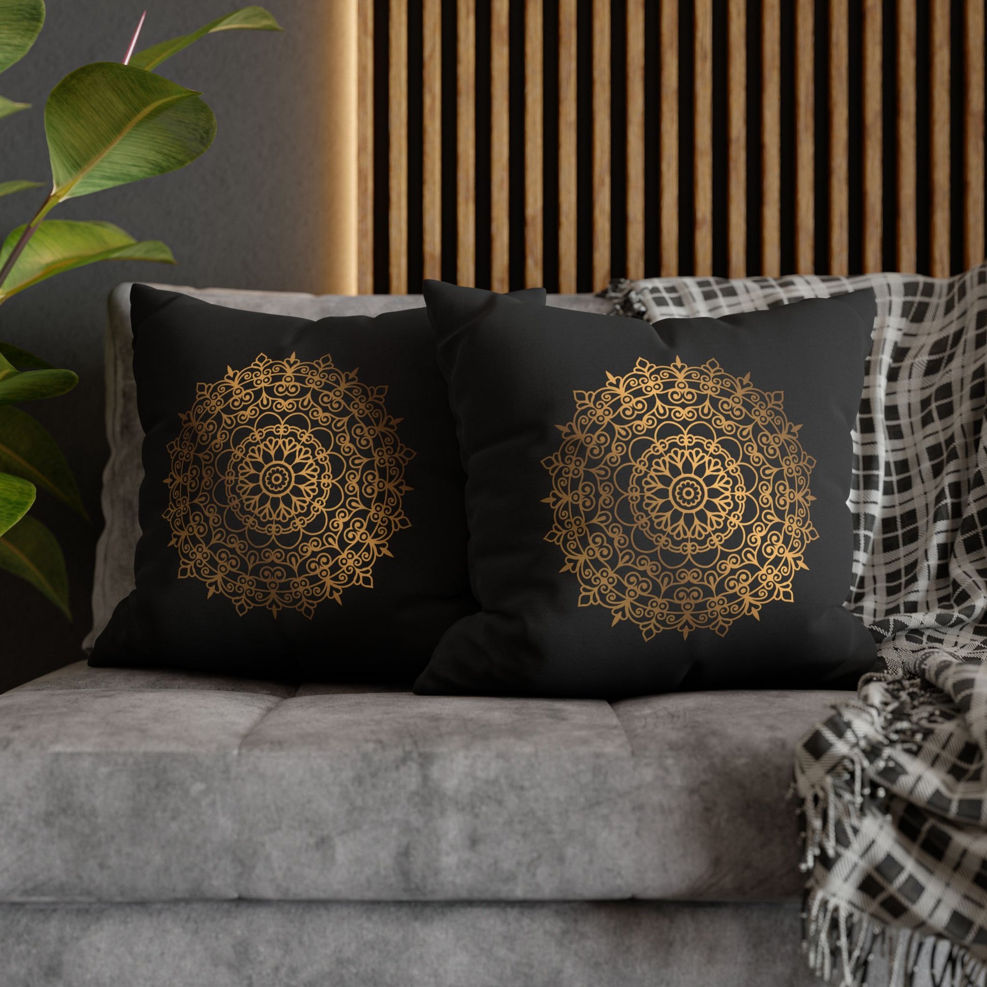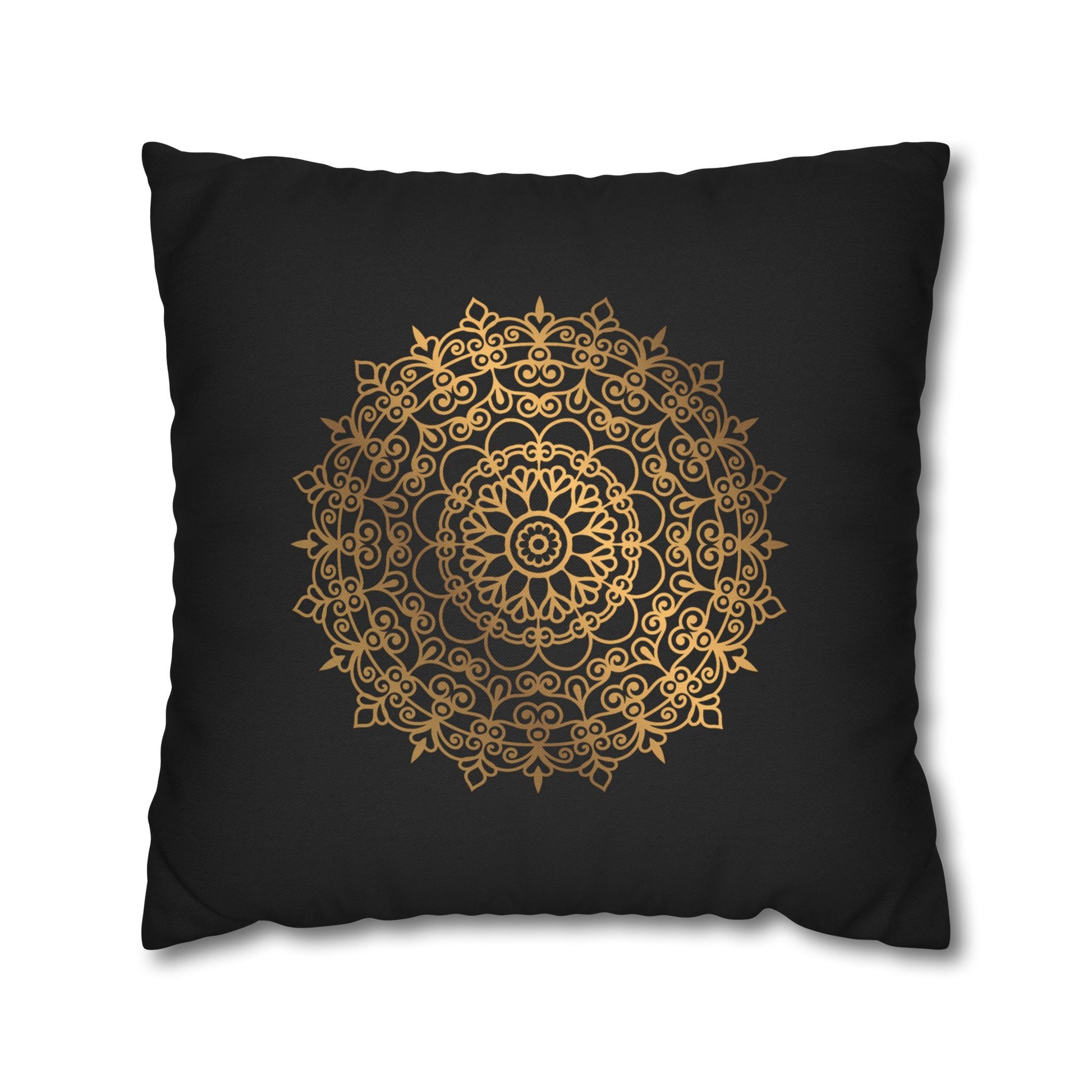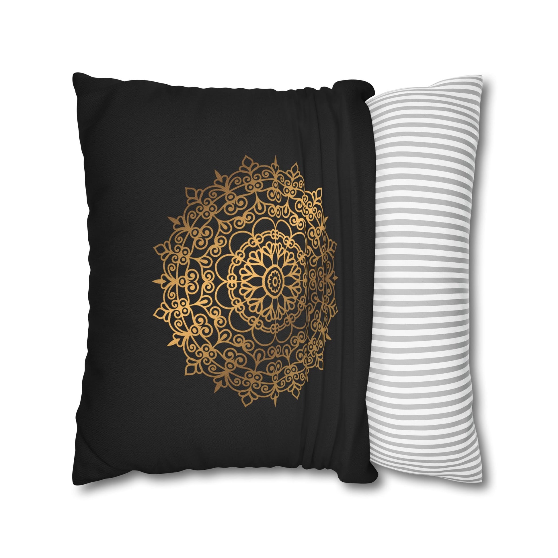 MANDALA GOLDOPTIK • Deko Kissenbezug mit Reißverschluss Quadratisch Schwarz