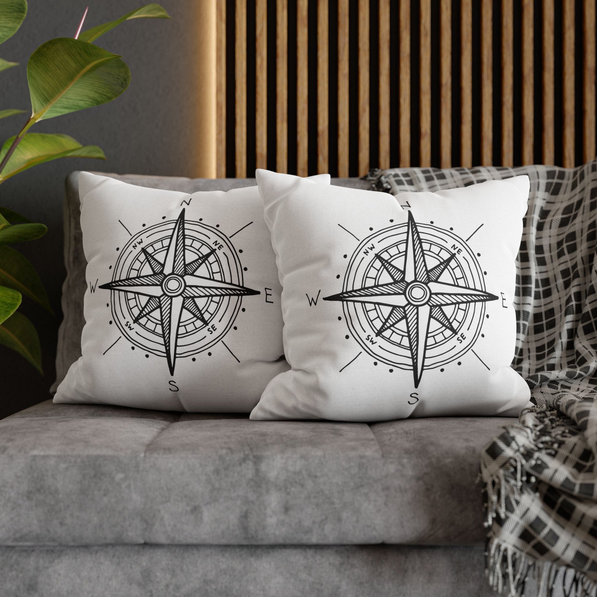 KOMPASS NAVIGATION • Deko Kissenbezug mit Reißverschluss Quadratisch Weiß