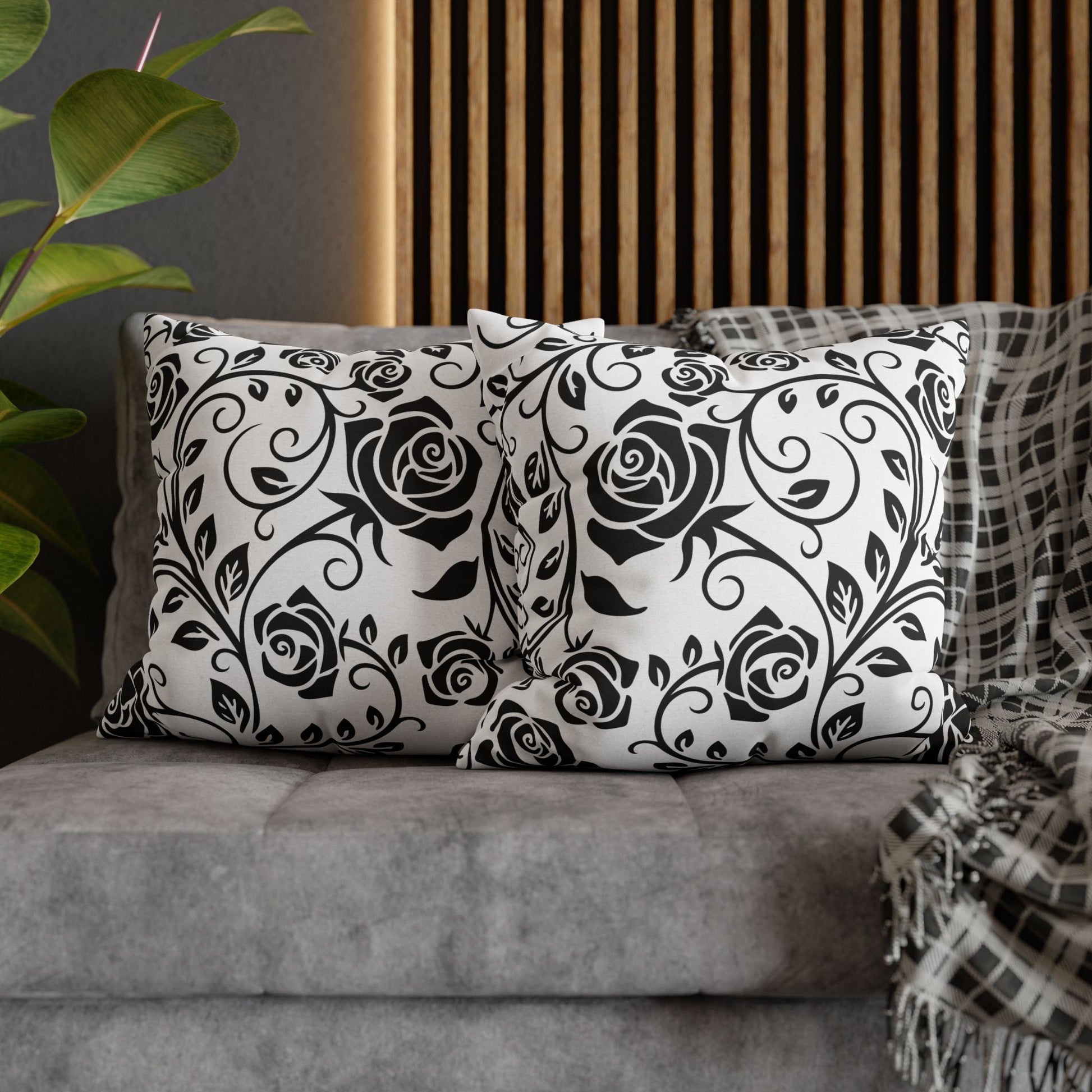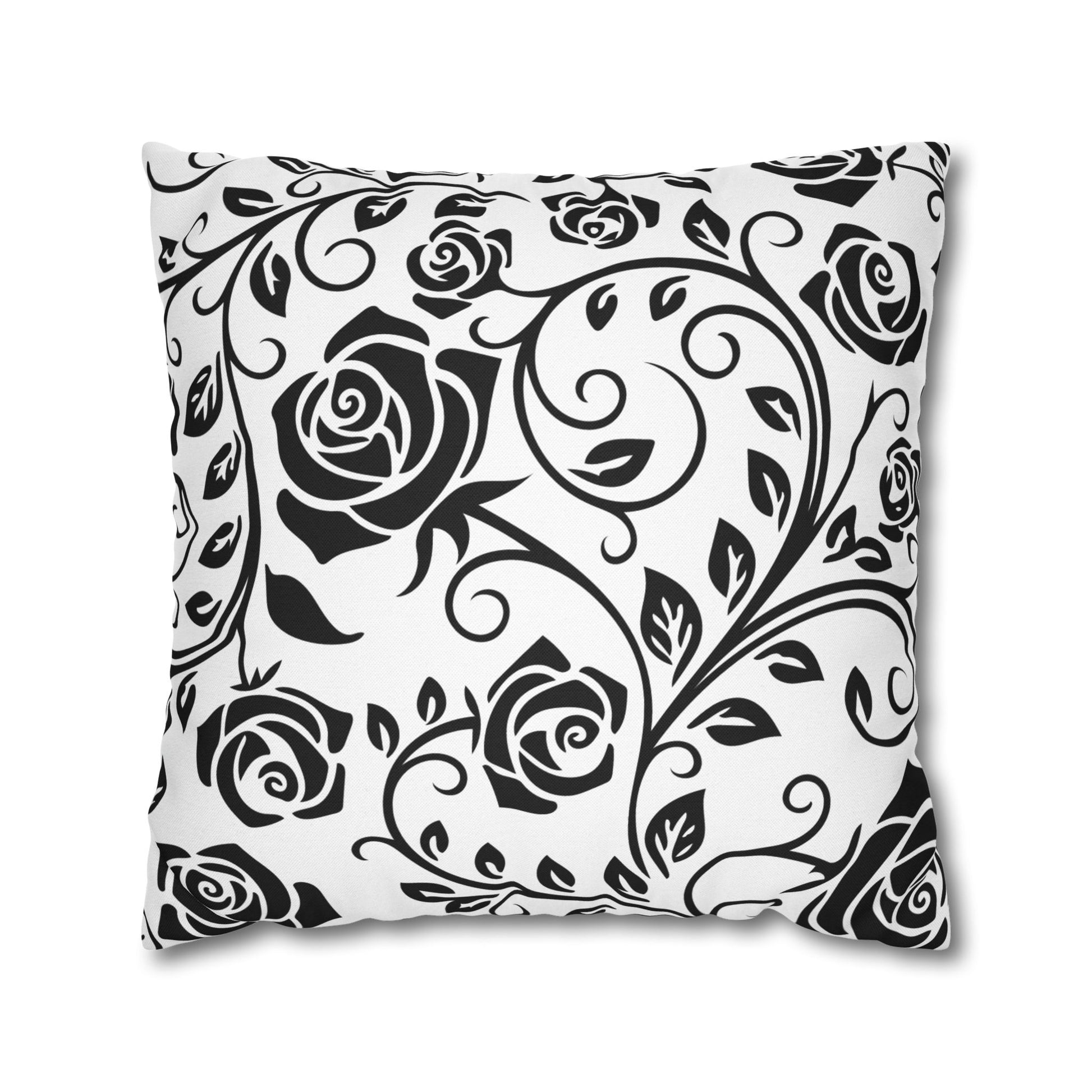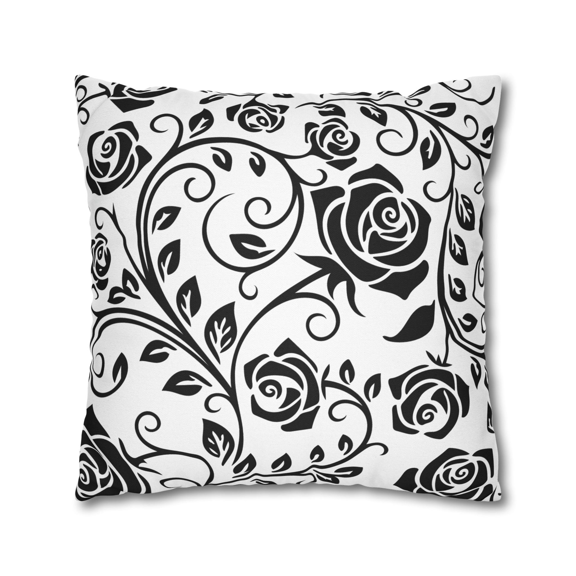 ROSEN MUSTER • Deko Kissenbezug mit Reißverschluss Quadratisch Schwarz Weiß