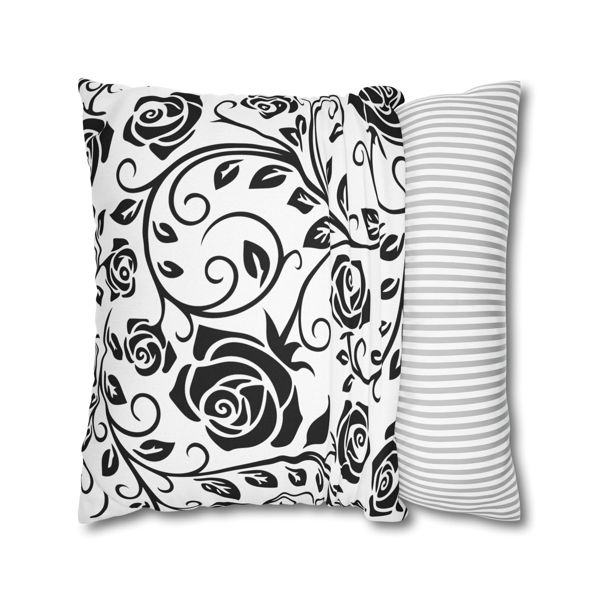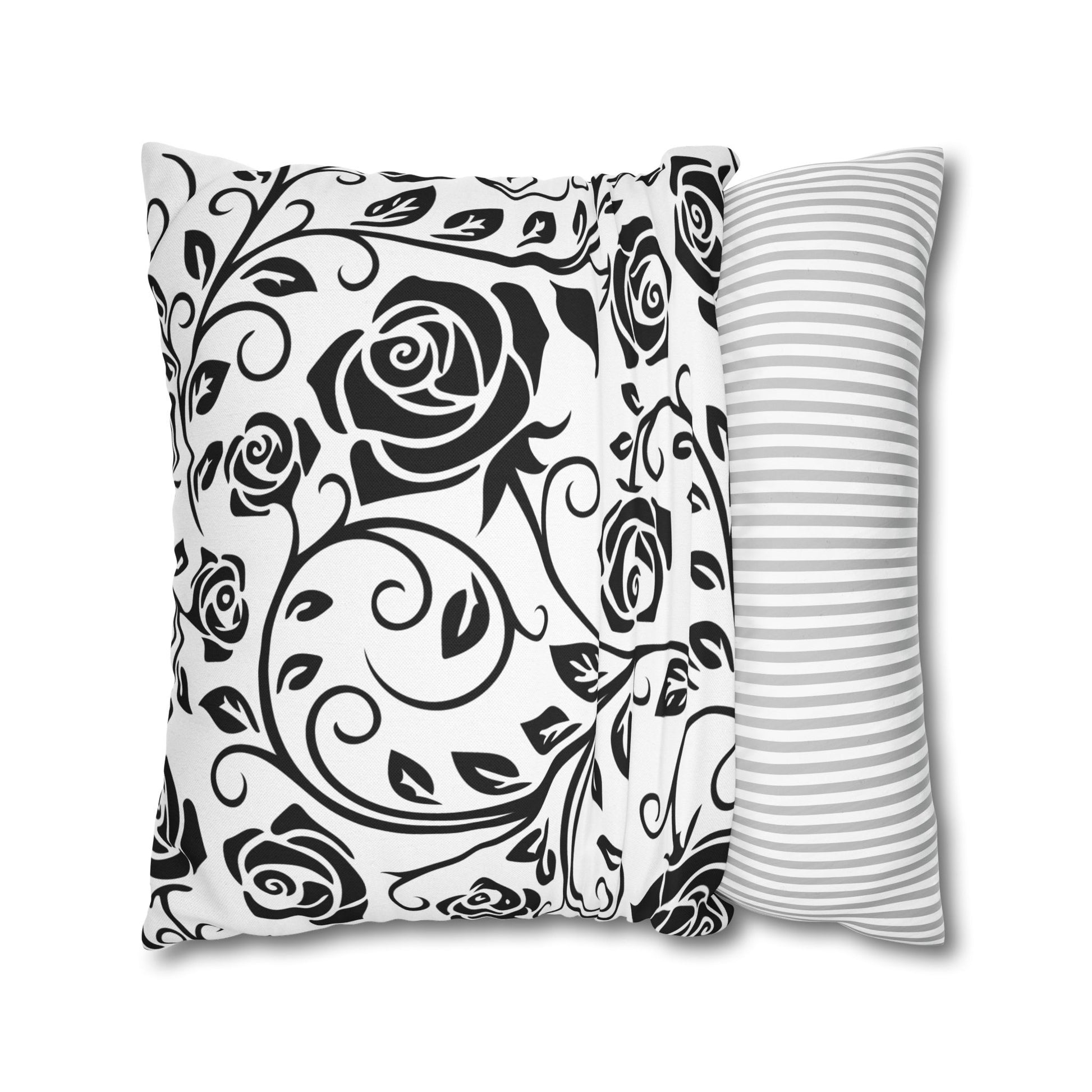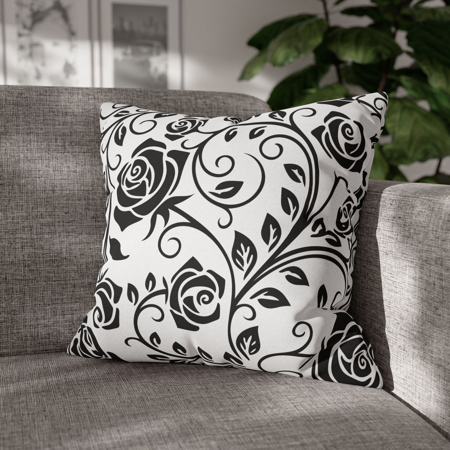 ROSEN MUSTER • Deko Kissenbezug mit Reißverschluss Quadratisch Schwarz Weiß