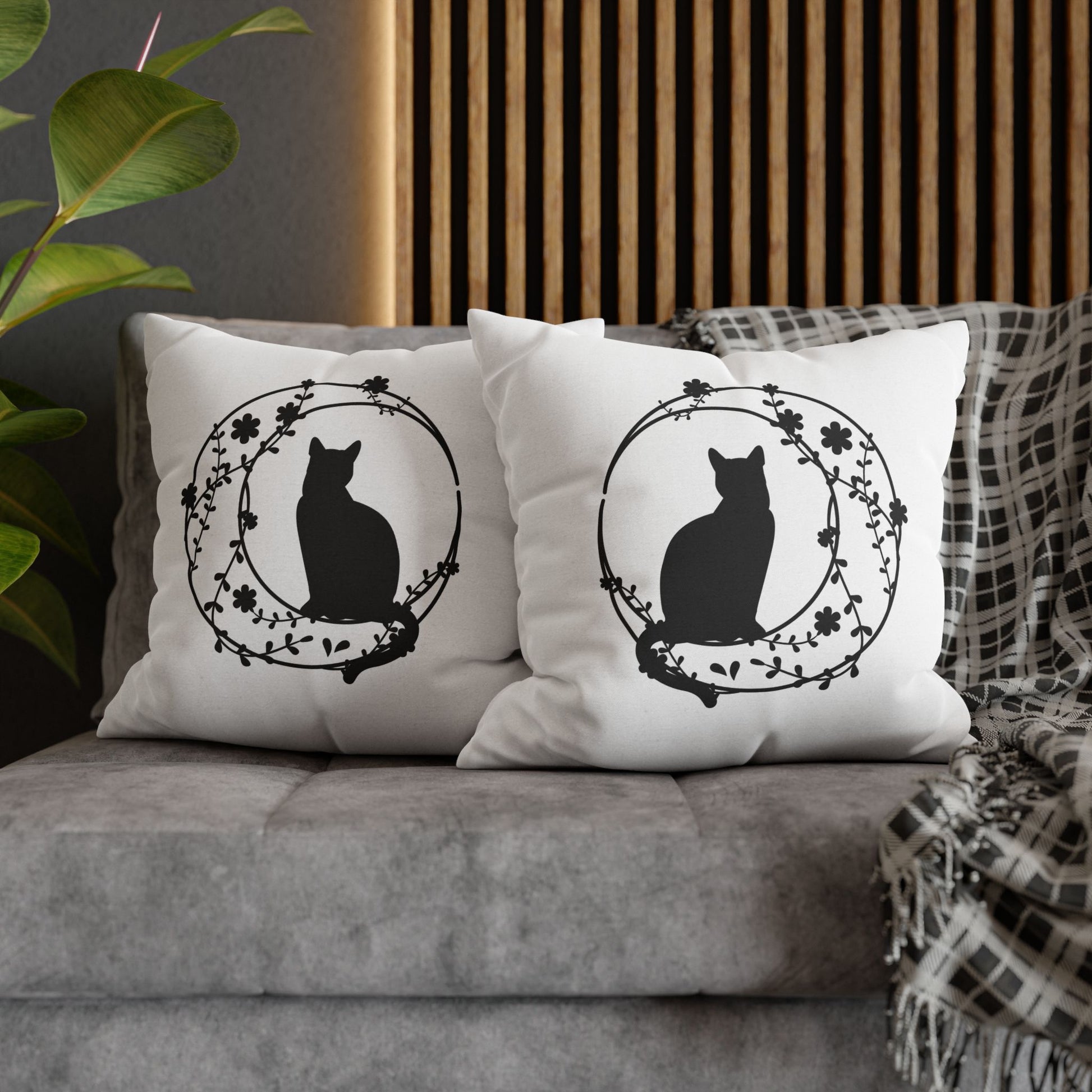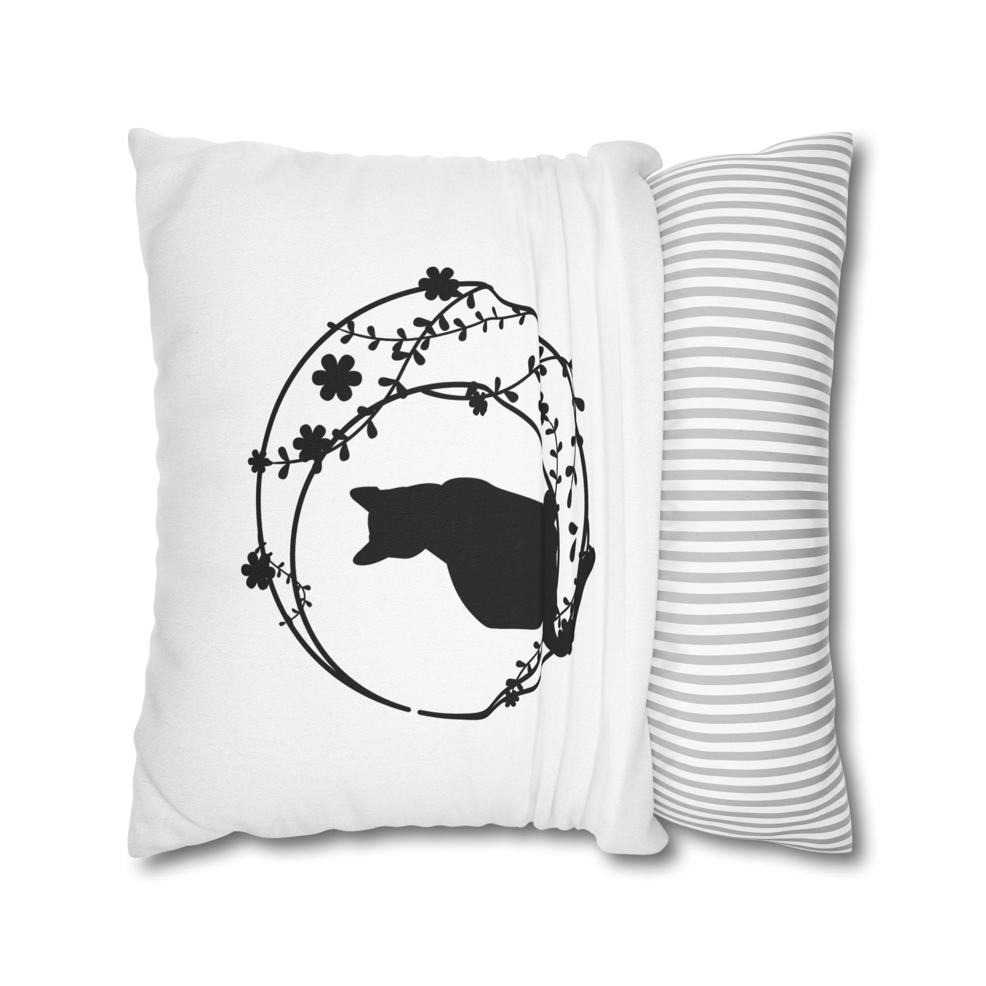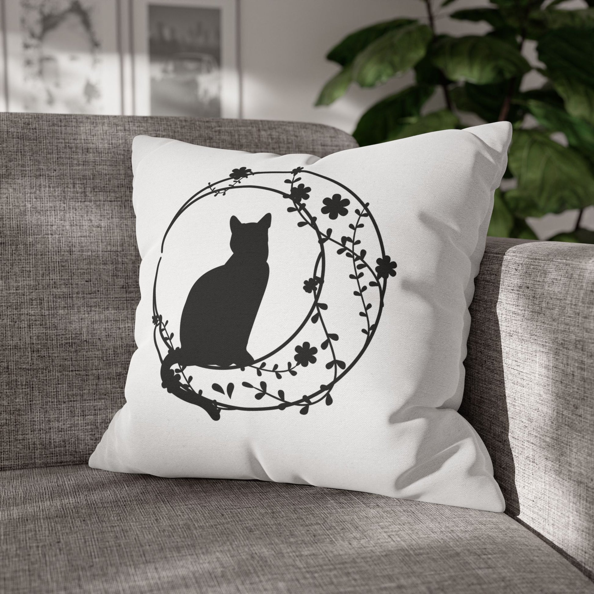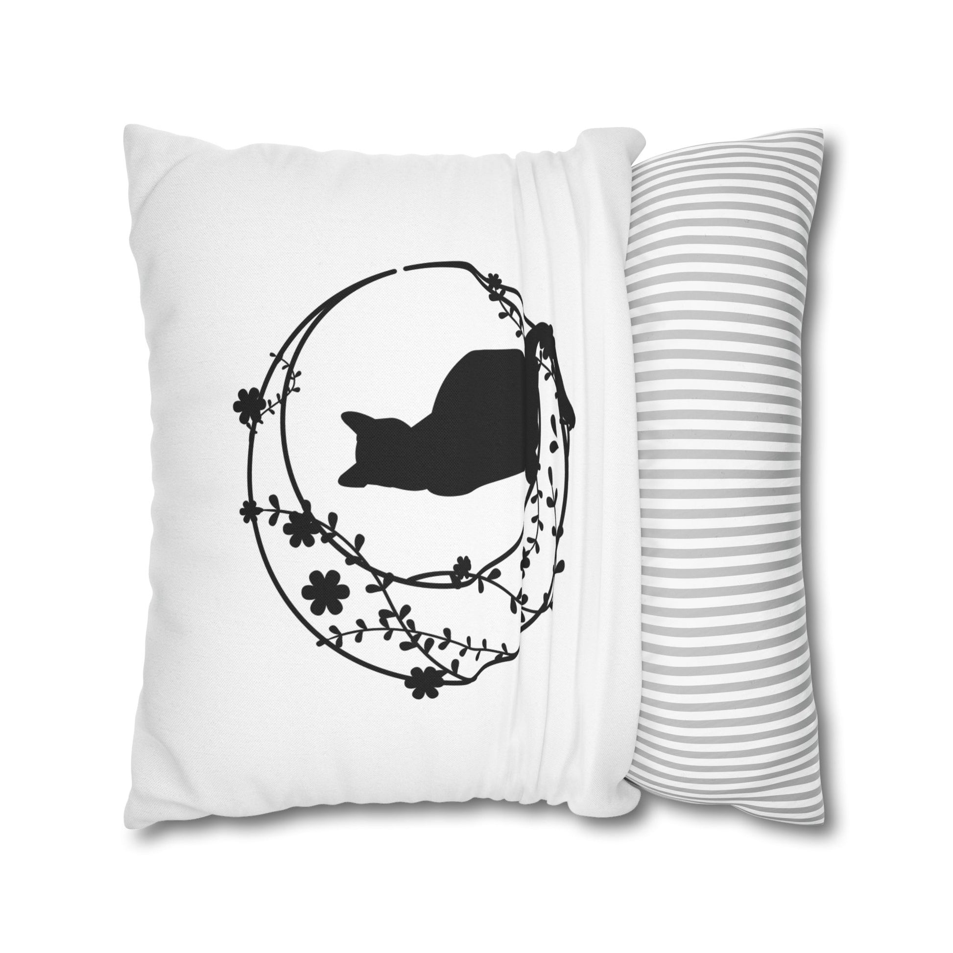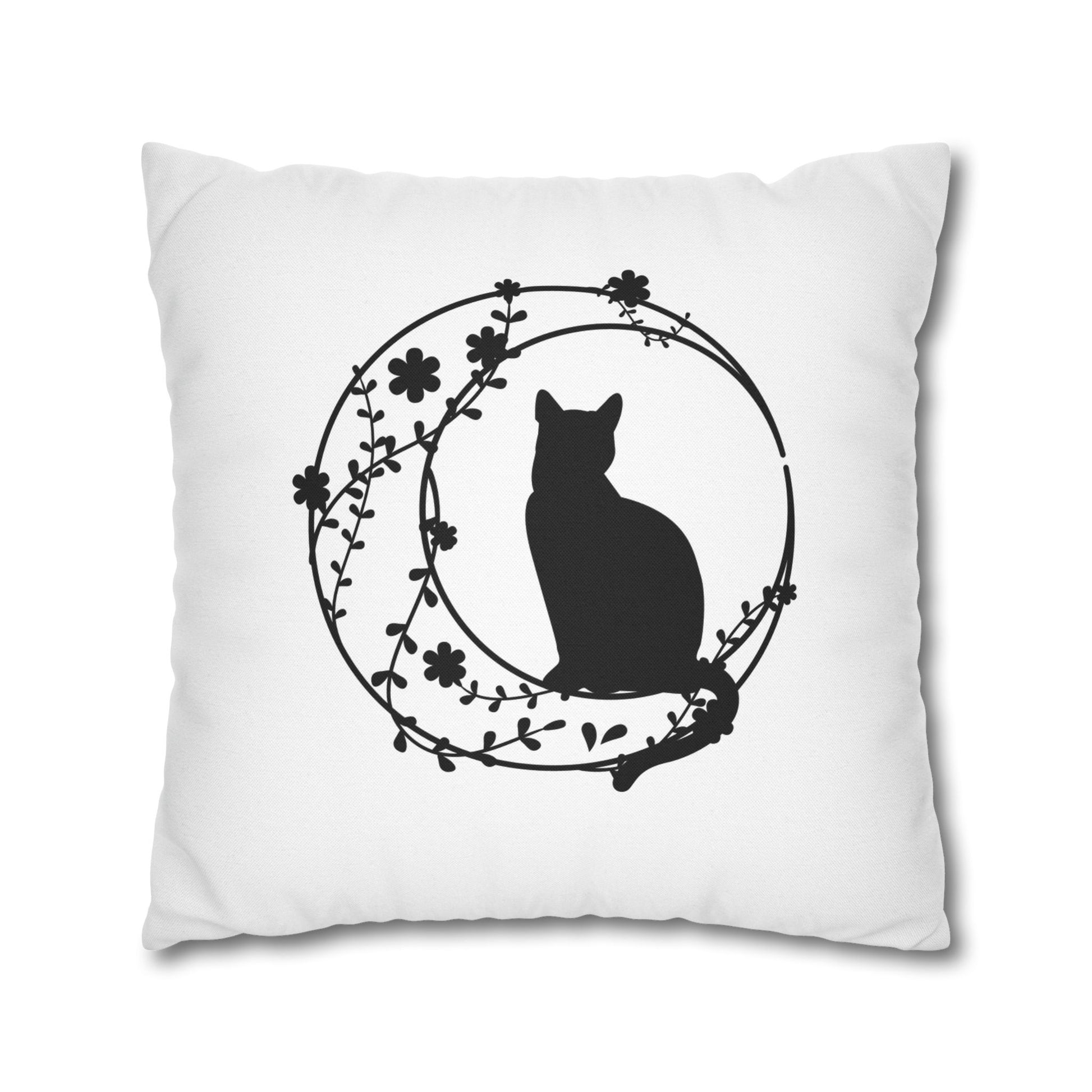 KATZE IM MOND BLUMEN • Deko Kissenbezug mit Reißverschluss Quadratisch Weiß