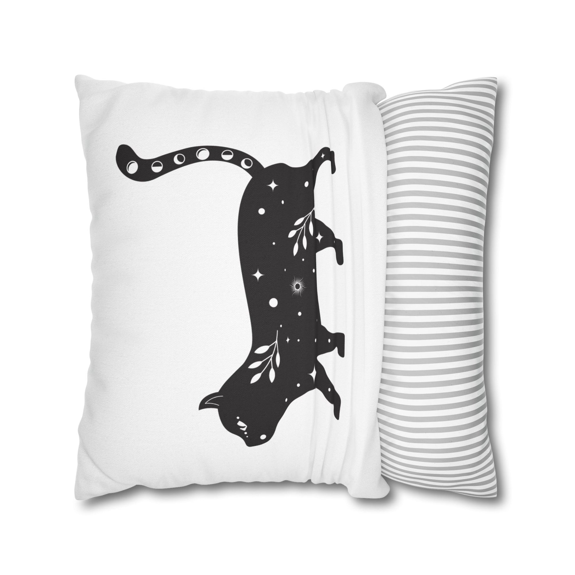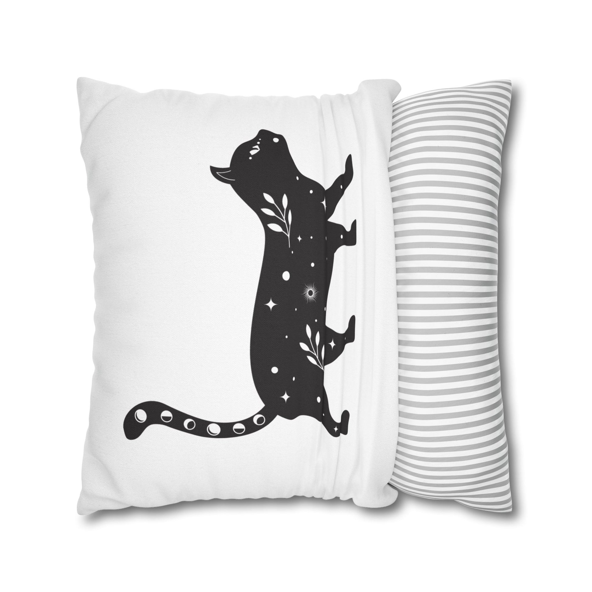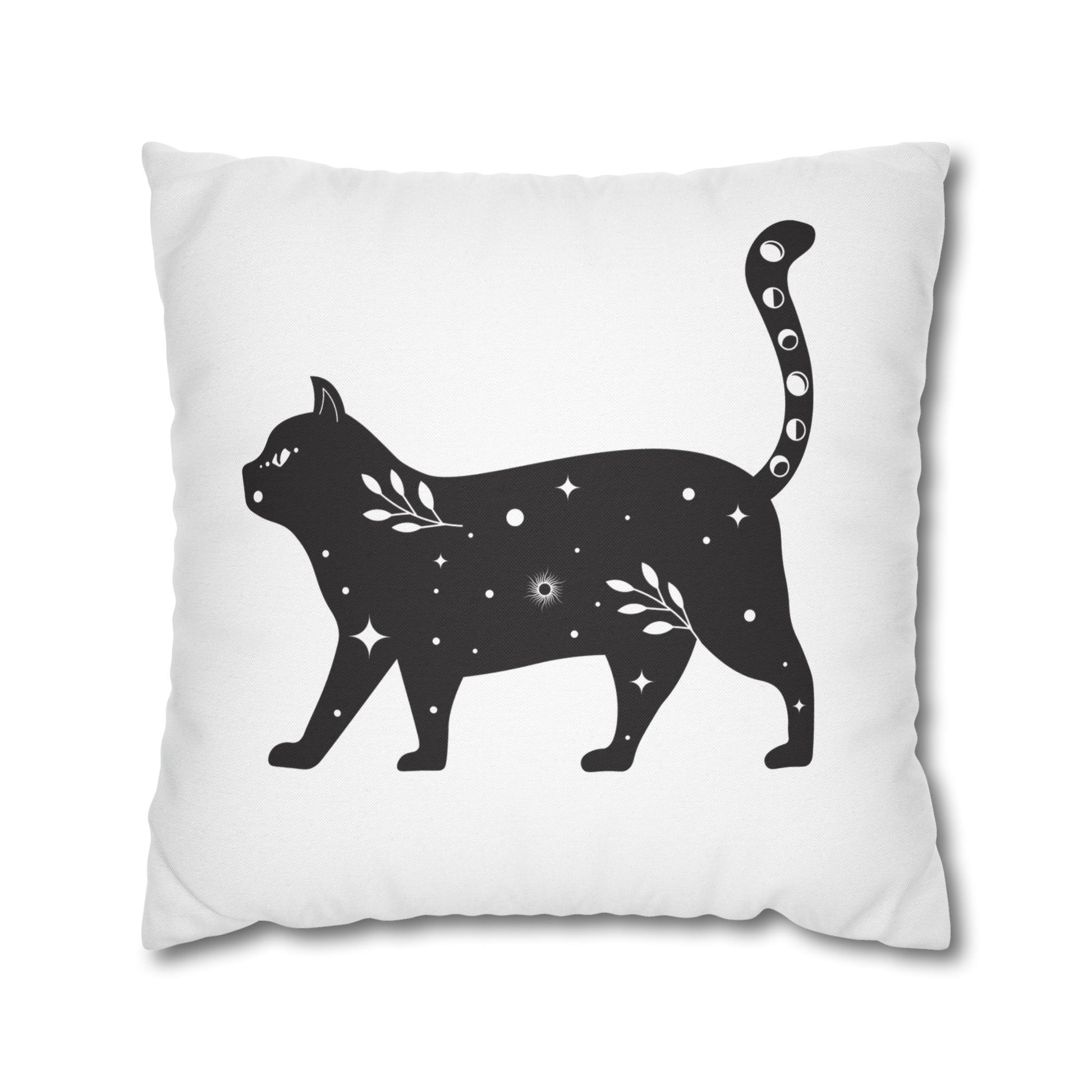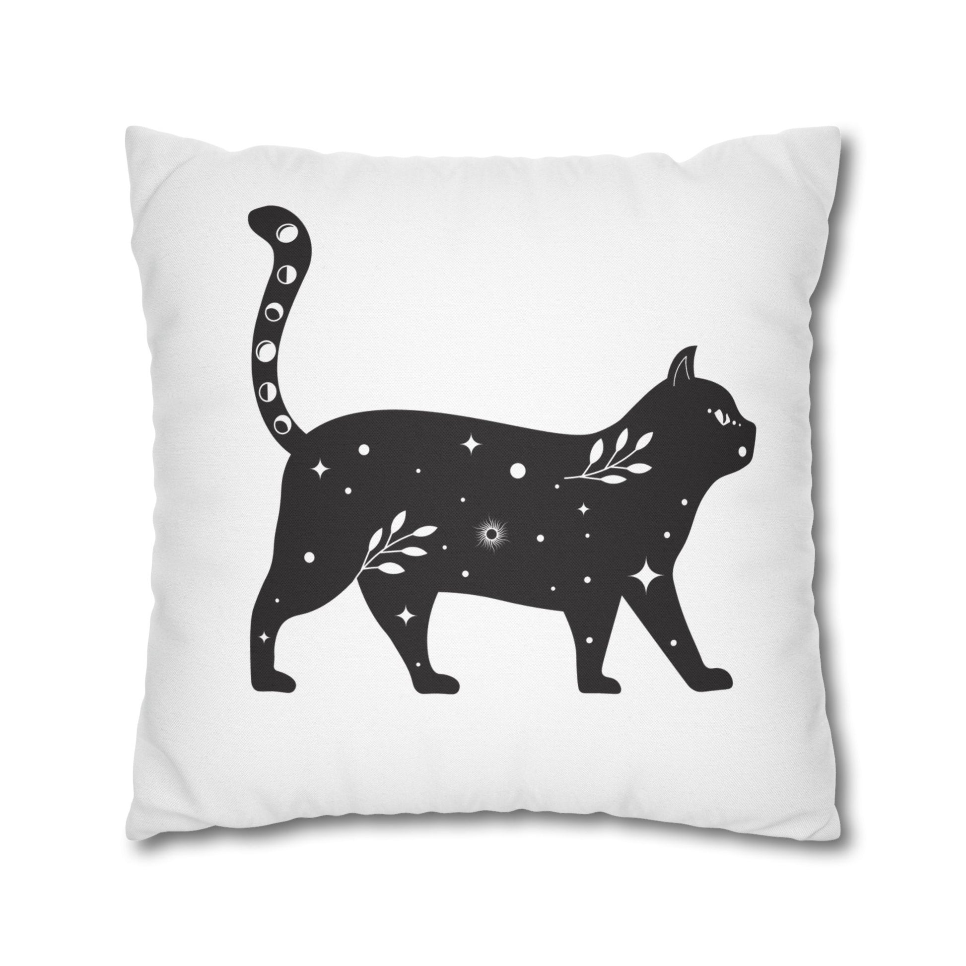 KATZE BLUMEN STERNENHIMMEL • Deko Kissenbezug mit Reißverschluss Quadratisch Weiß