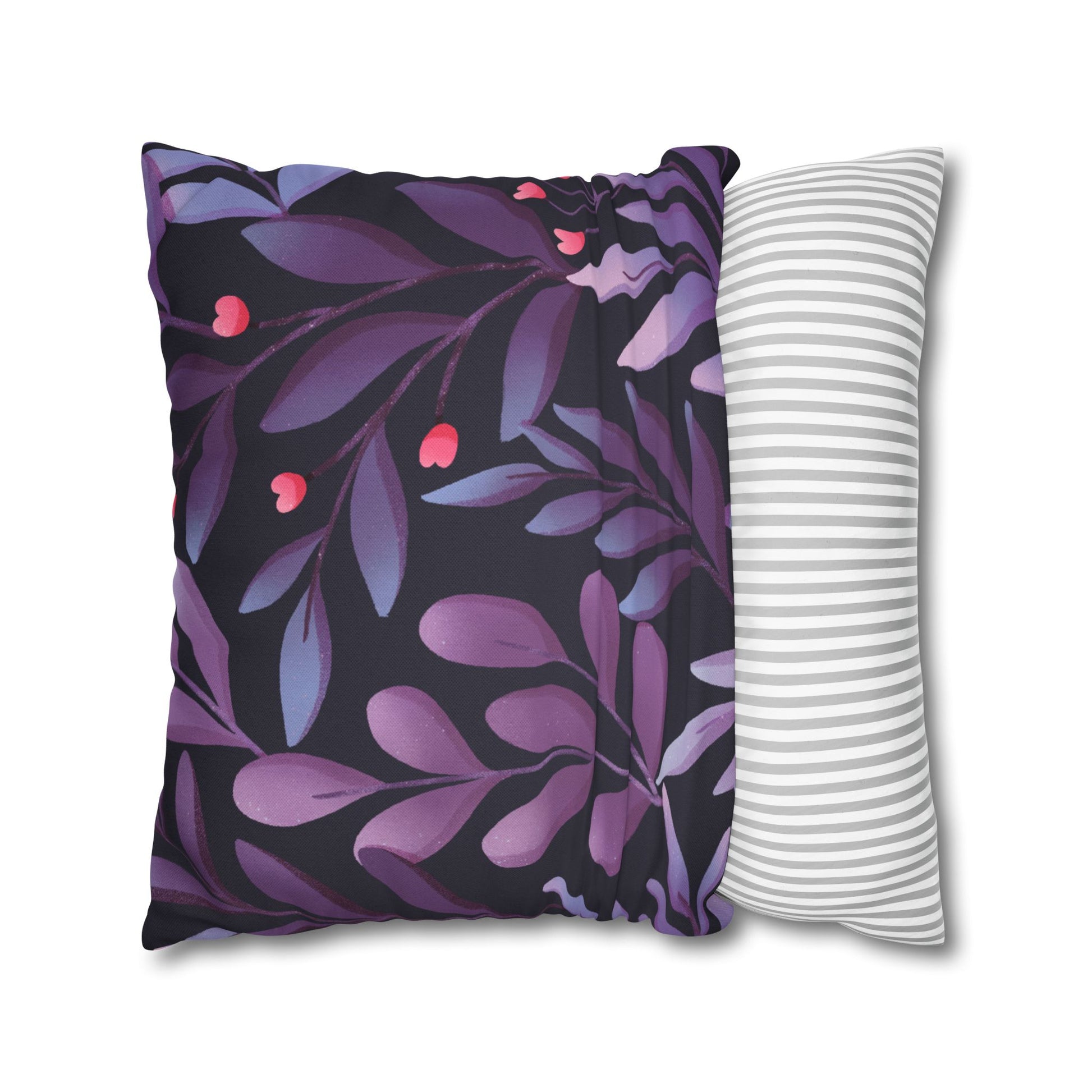 BLÄTTER FLORAL LILA VIOLET • Deko Kissenbezug mit Reißverschluss Quadratisch Schwarz