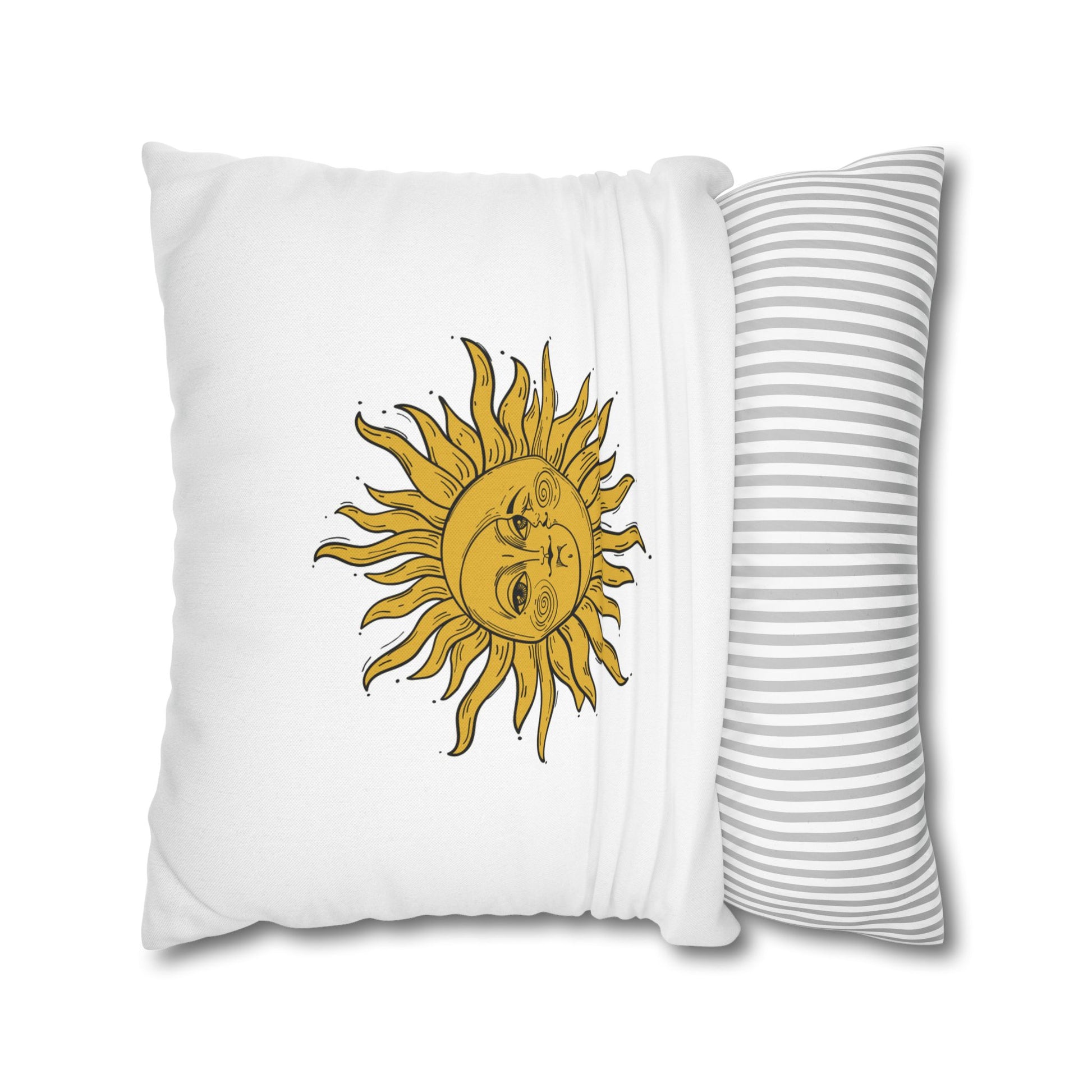 SONNE MOND VINTAGE ZEICHNUNG • Deko Kissenbezug mit Reißverschluss Quadratisch Weiß