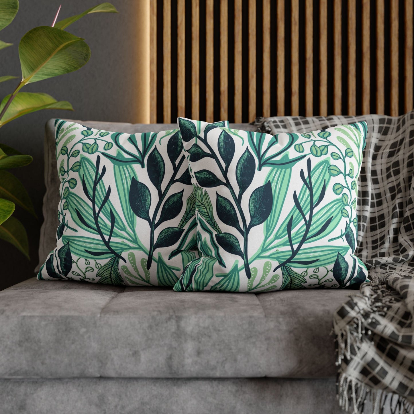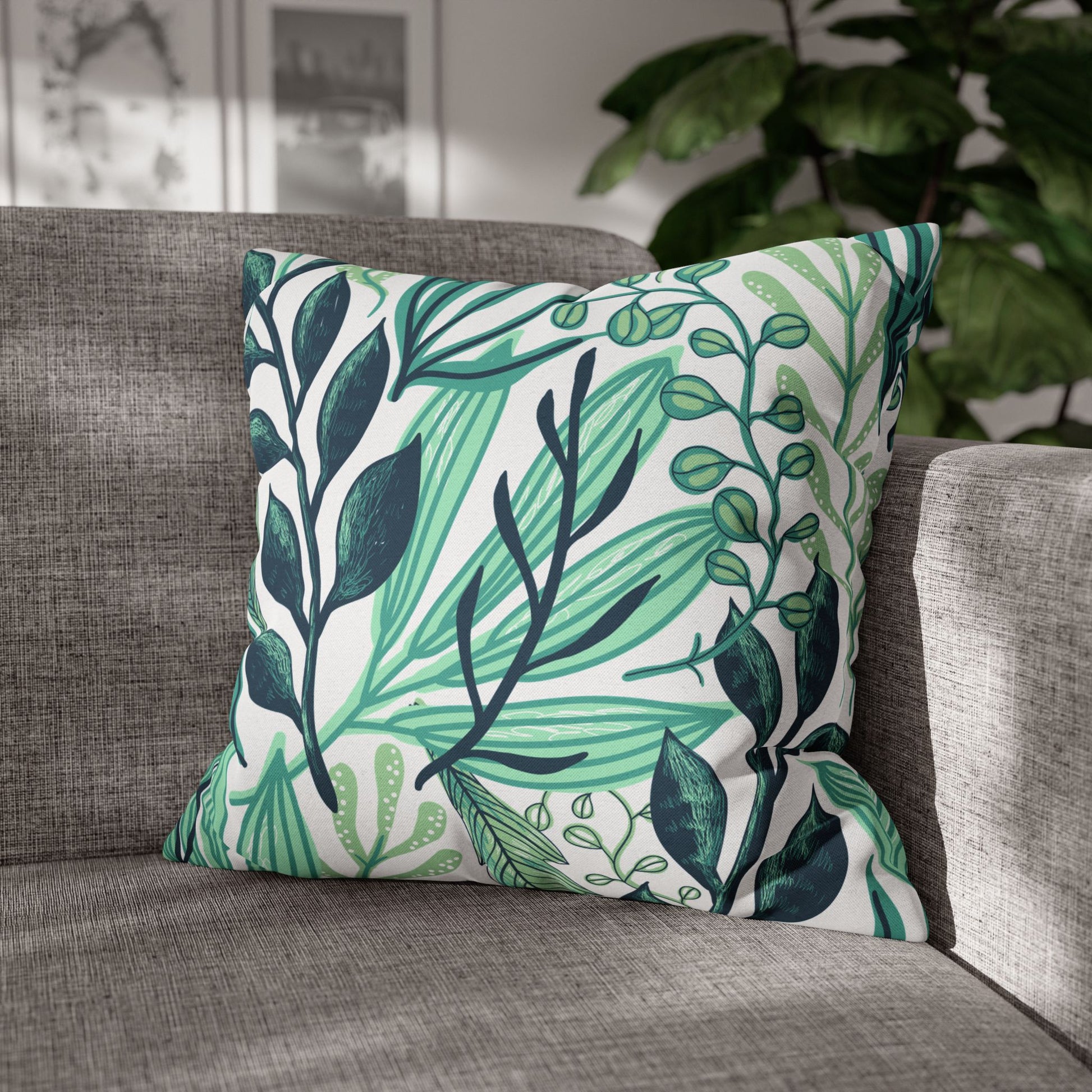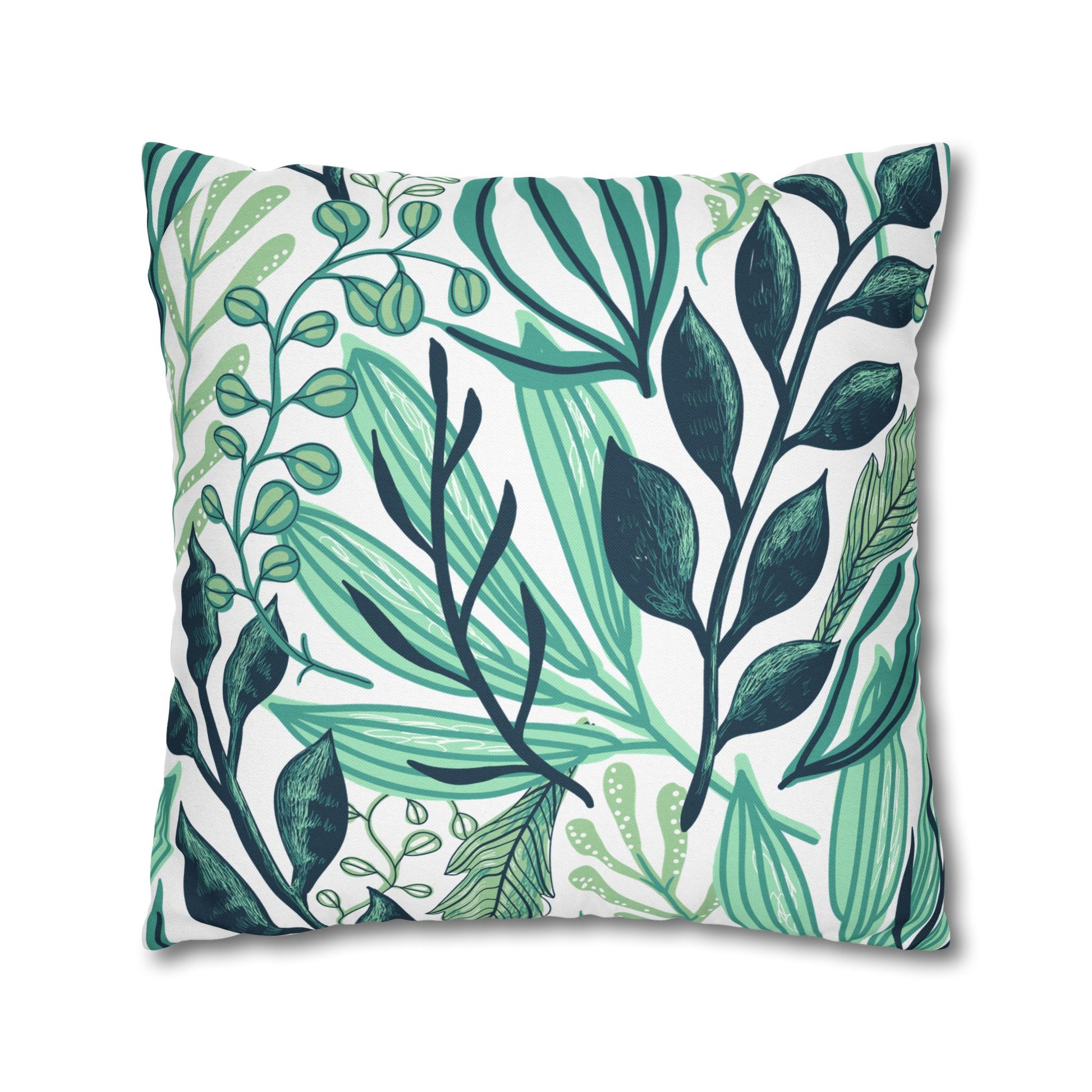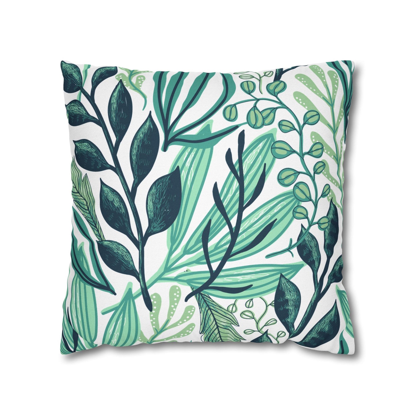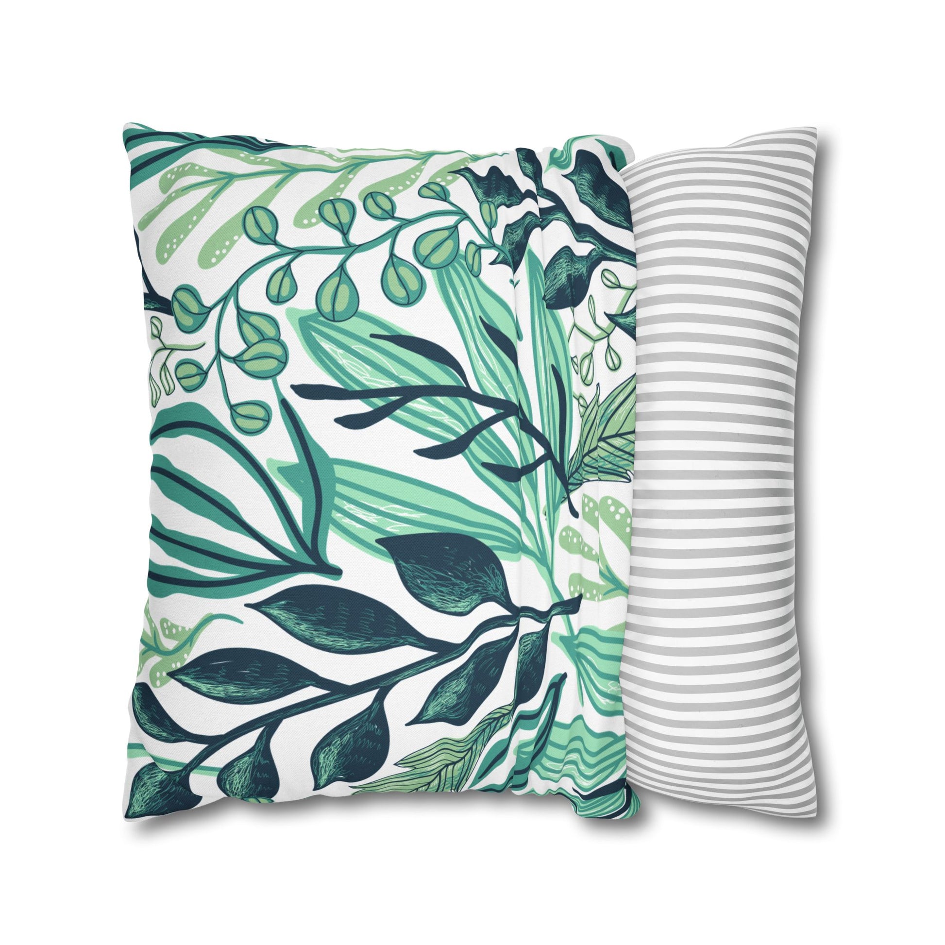 GRÜNE BLÄTTER ÄSTHETISCH • Deko Kissenbezug mit Reißverschluss Quadratisch Weiß