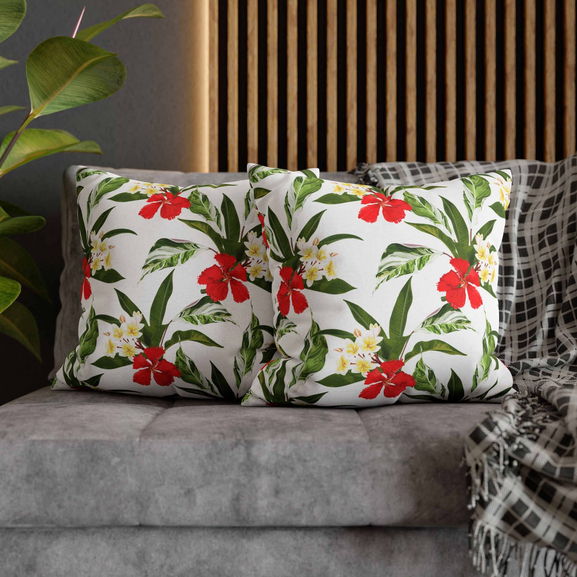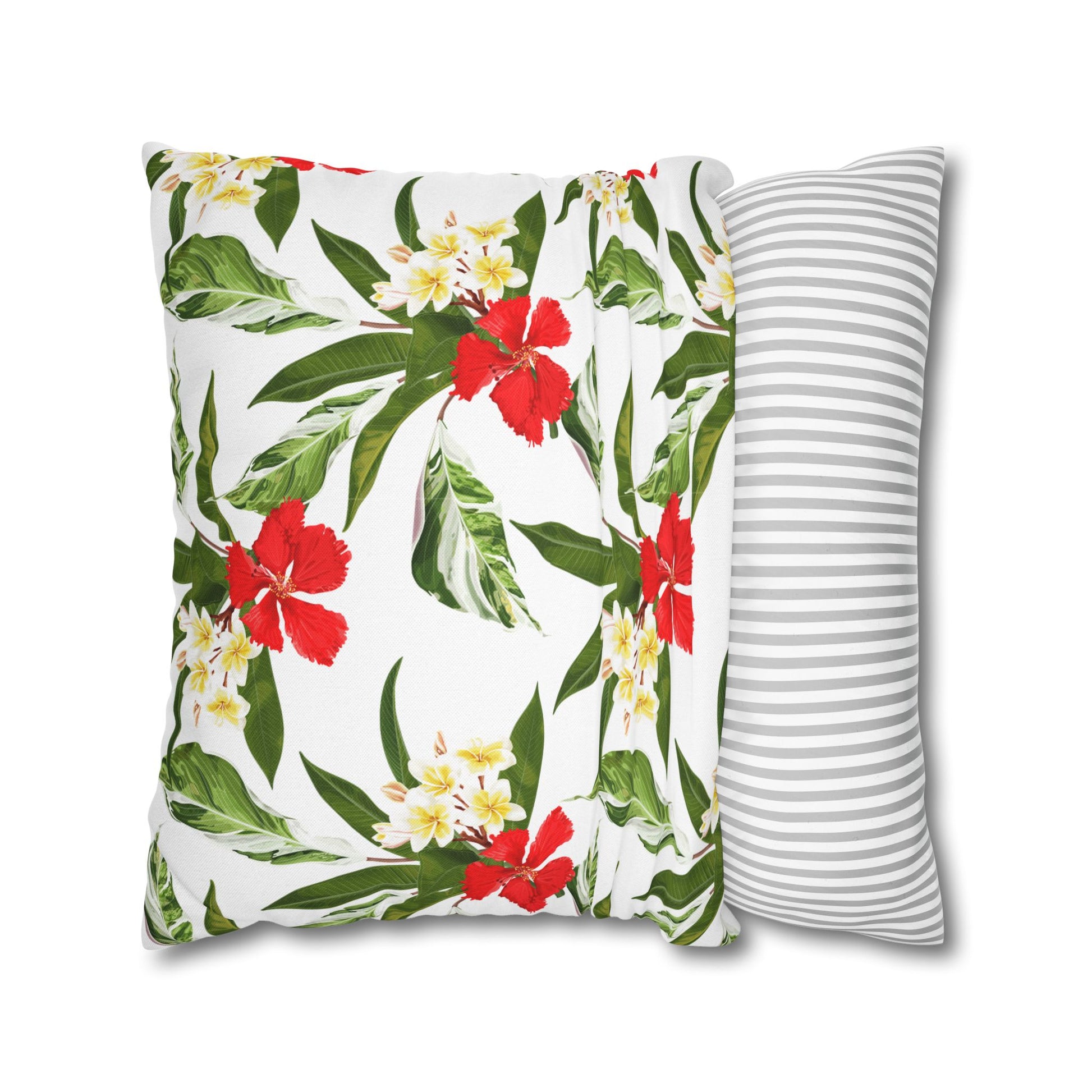 BLUMEN HAWAII EXOTISCH • Deko Kissenbezug mit Reißverschluss Quadratisch Weiß