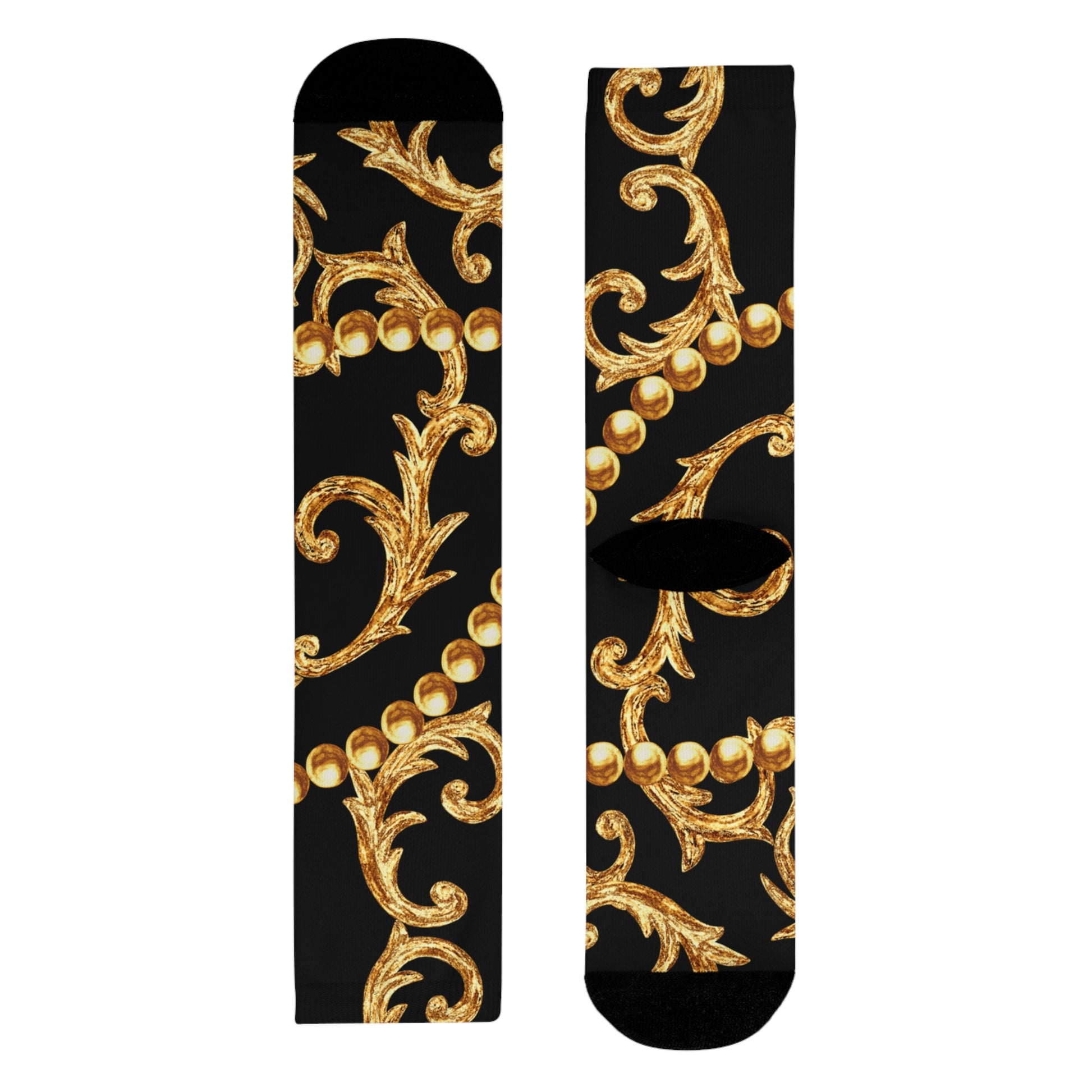 FLORALES BAROCK MUSTER EDEL LUXURIÖS • HAPPY SOCKS Crew Socken Goldoptik mit Motiv