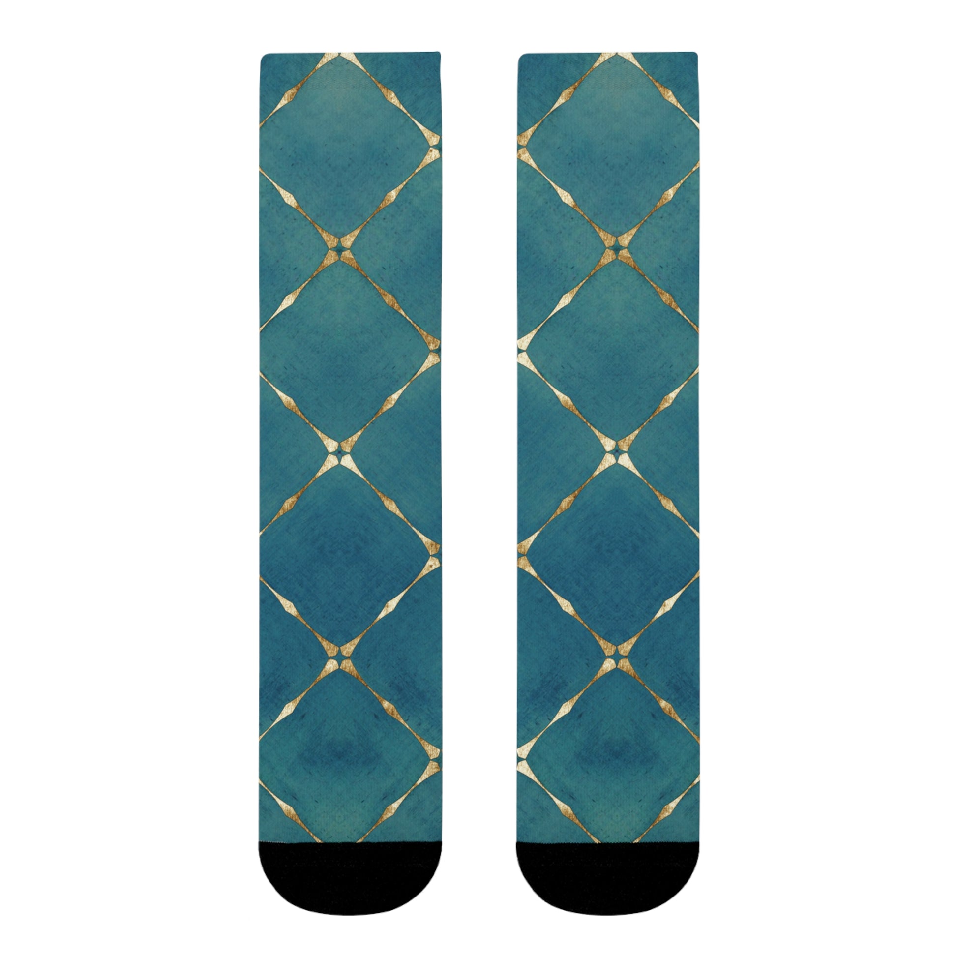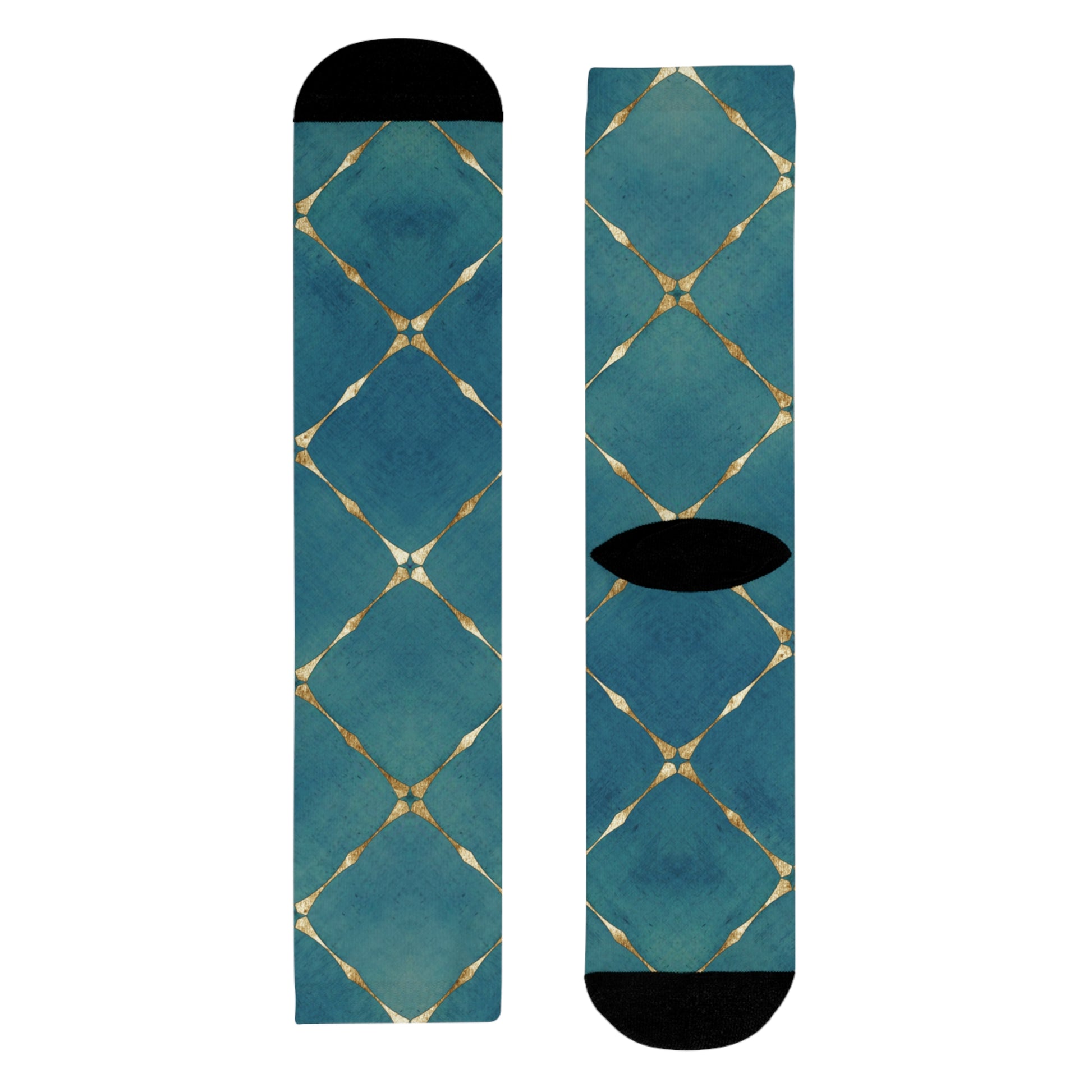 KARIERTE SOCKEN • HAPPY SOCKS Crew Socken Grün Türkis mit Motiv